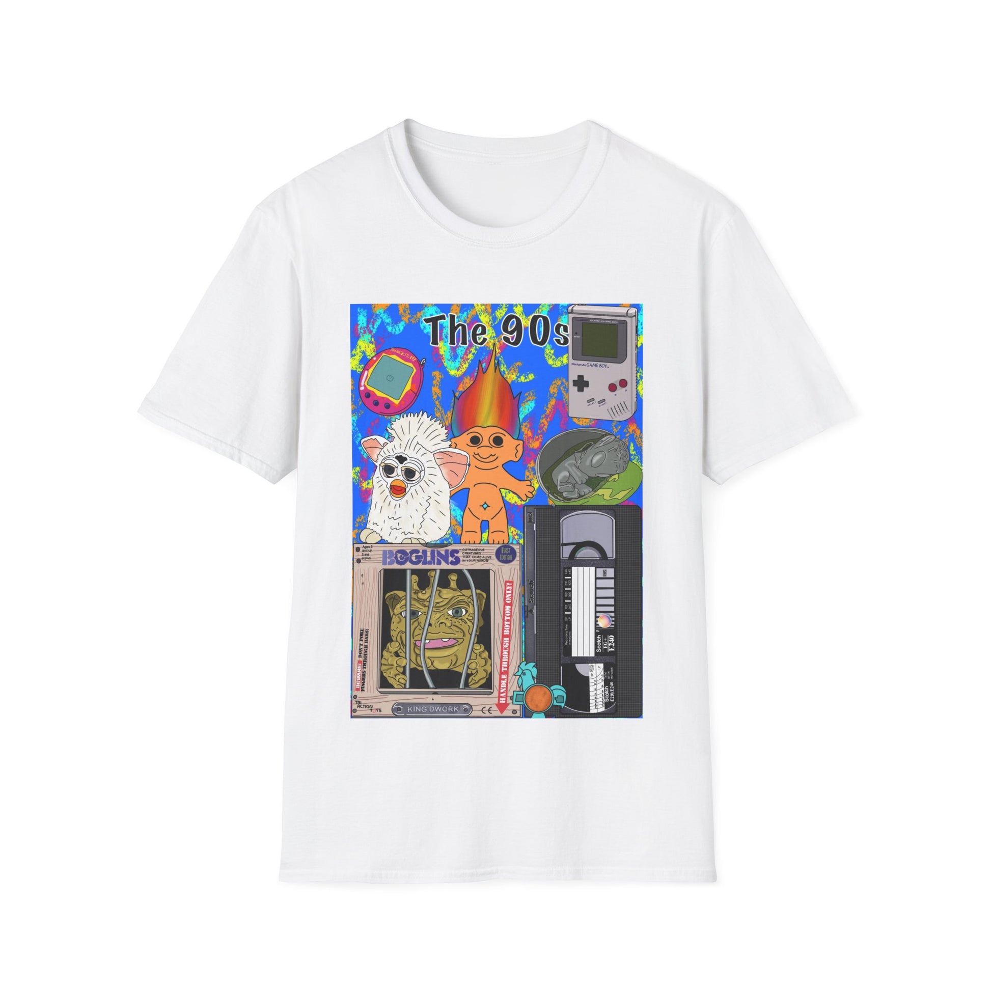 90s Nostalgia T-Shirt — Retro Toys & Pop Culture Collage