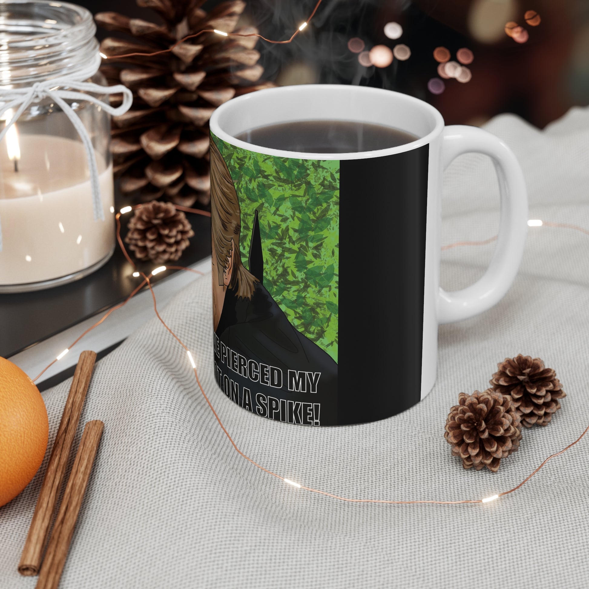 These glossy ceramic coffee cups carry bold, full-color artwork that brings a little laugh to mornings. Made from white ceramic with a smooth ORCA-coated surface, the print stays vivid wash after wash. The comfortable C-shaped handle fits most hands and the two size options let you choose a smaller everyday cup or a larger one for long mornings. Built to be used — microwave- and dishwasher-safe, lead- and BPA-free, and compliant with US ceramic safety guidelines — they feel familiar in the hand and durable on the counter. A playful, illustrated design wraps around the mug, making each sip feel like a short, bright moment.