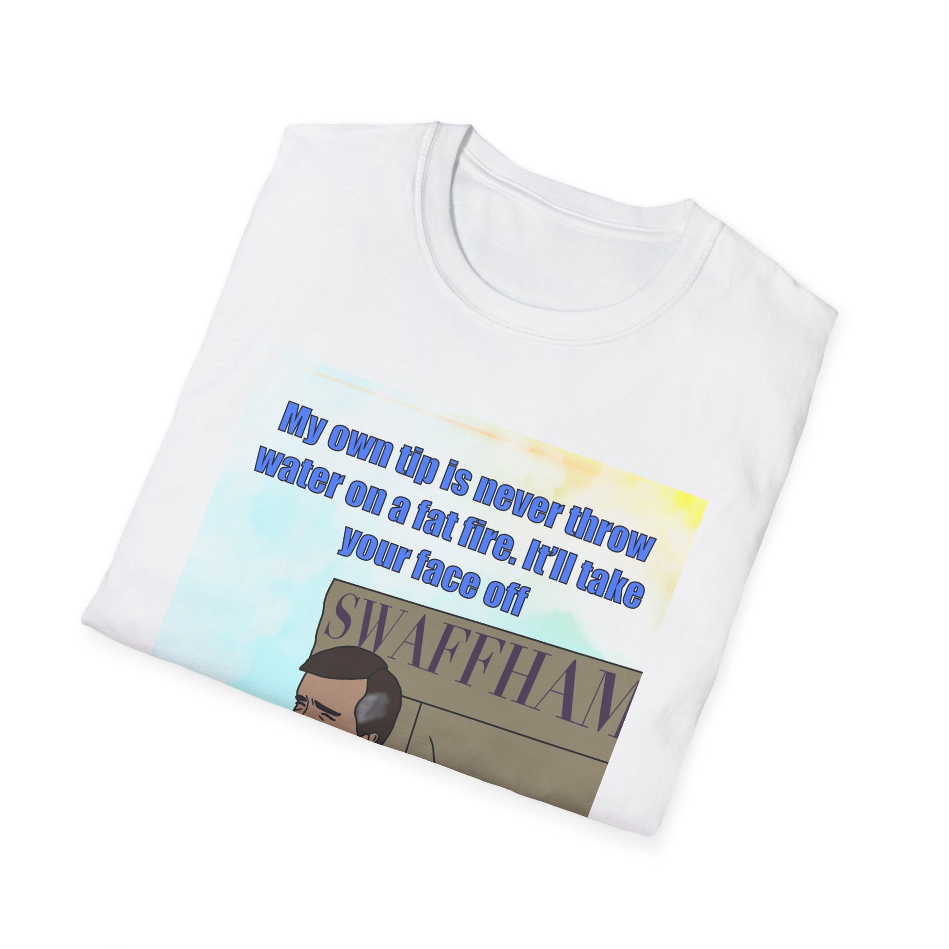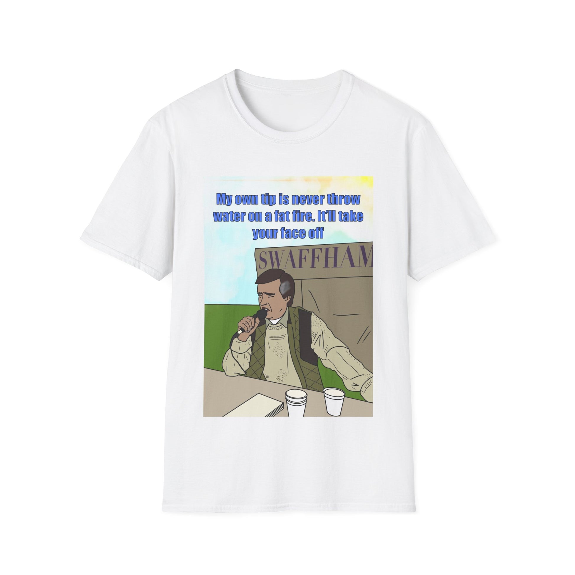 Alan PartridgeFunny Swaffham T-Shirt — "My own tip is never throw water on a hot fire, I'll take your face off" Graphic Tee