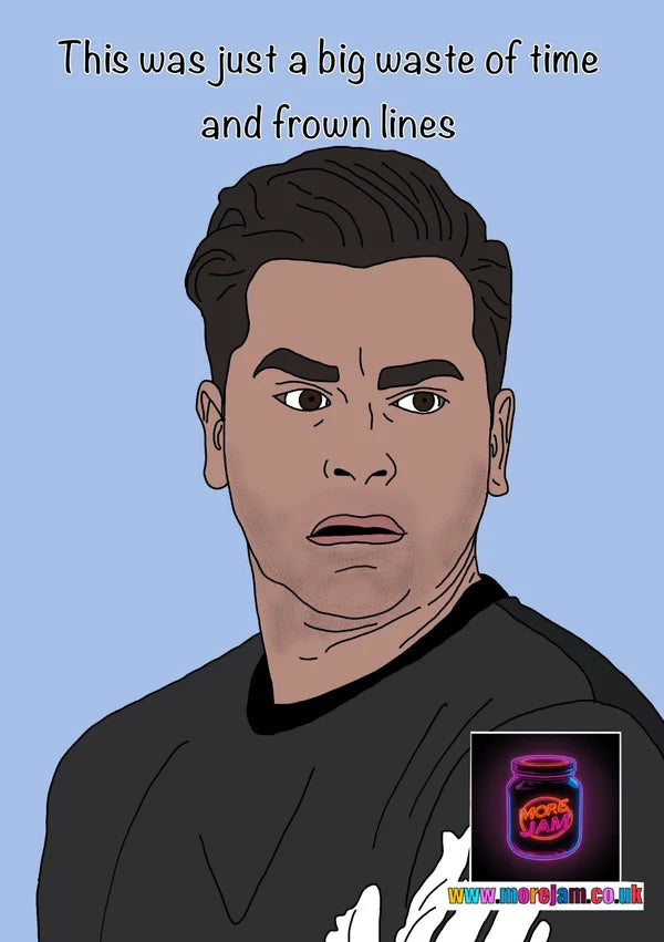 Waste of Time and Frown Lines | Funny David Schitts Creek Card | More Jam