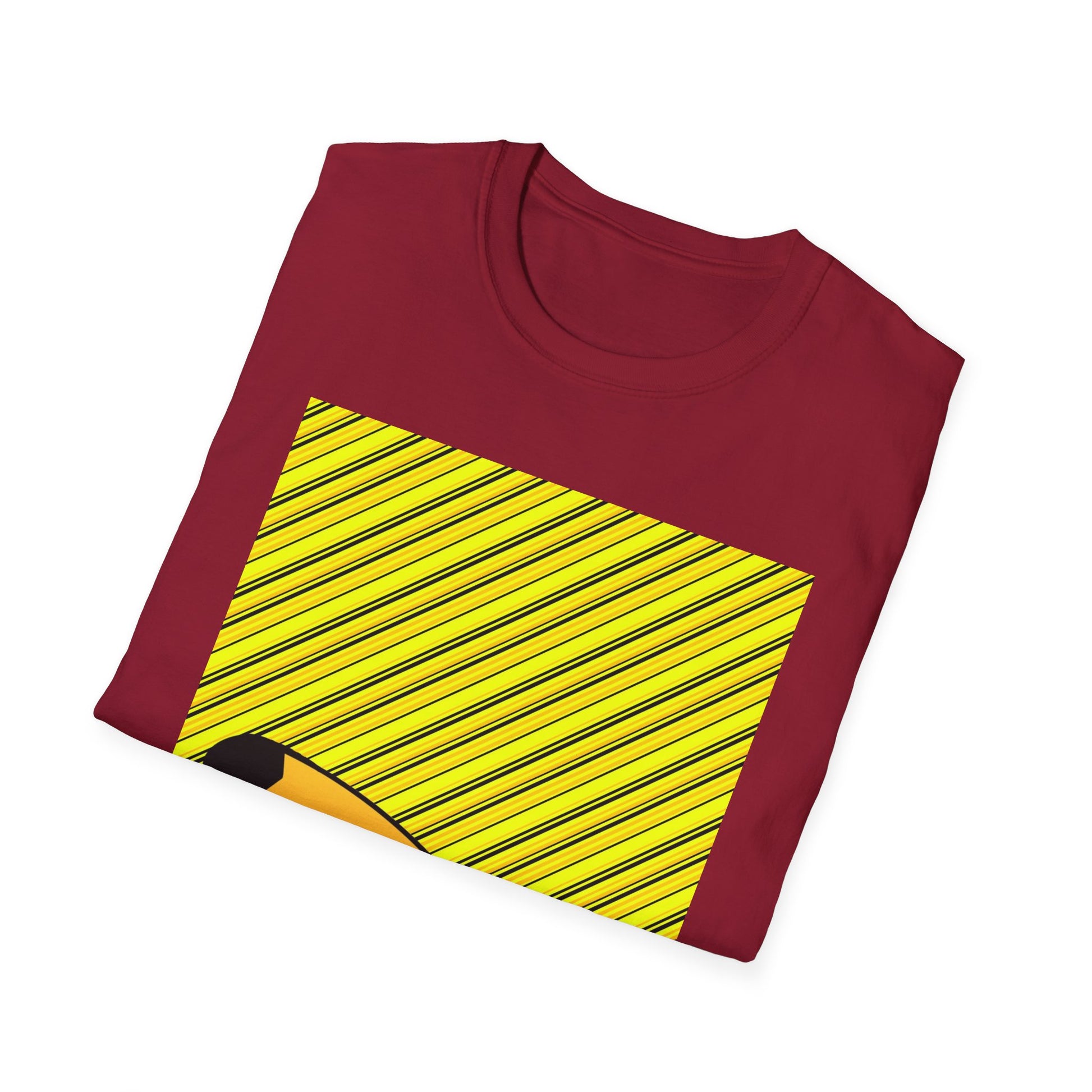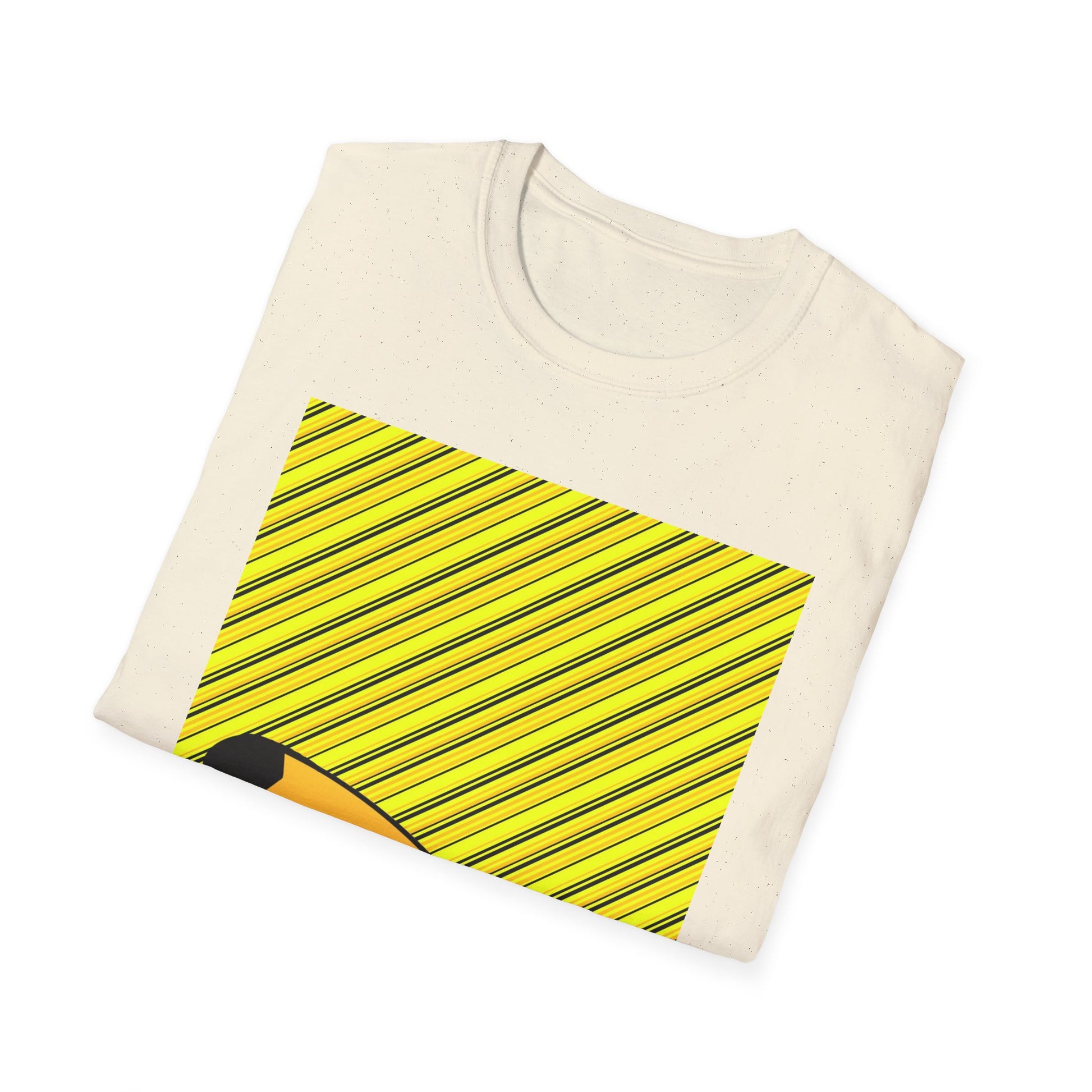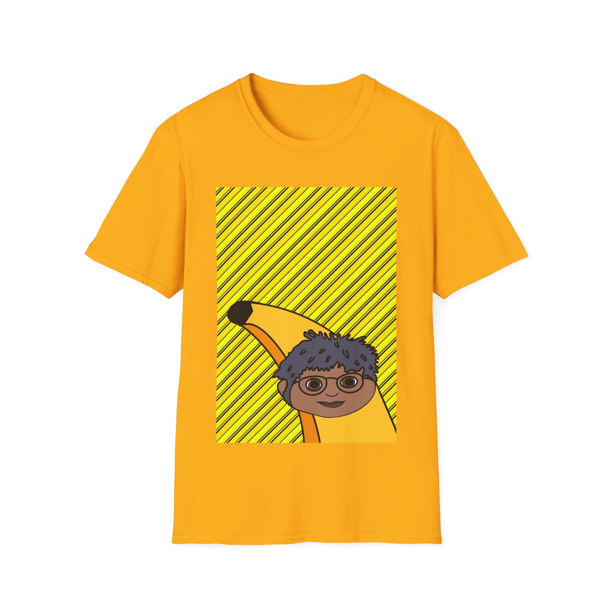 This lightweight tee carries a playful, upbeat energy — a cheerful character peeking out from a vivid banana-yellow, diagonal-striped background. Soft ring-spun cotton and a classic crew neck make it feel easy and familiar from the first wear. The design feels casual and confident, the kind of shirt someone reaches for when they want to brighten a commute, class, or weekend hangout. It layers well under a jacket or stands alone as a statement of lighthearted style for everyday life.