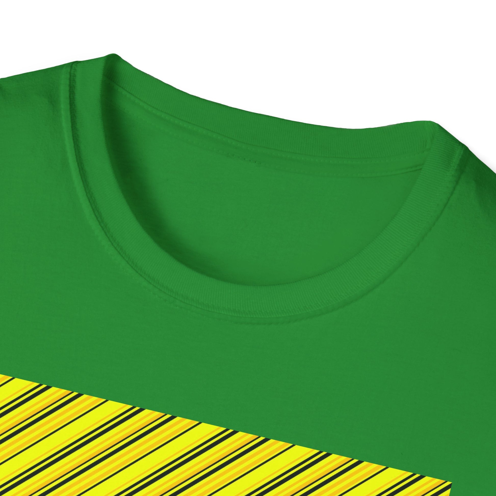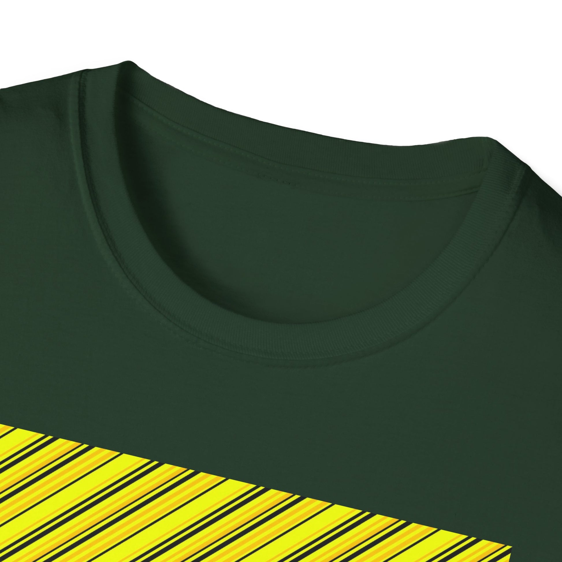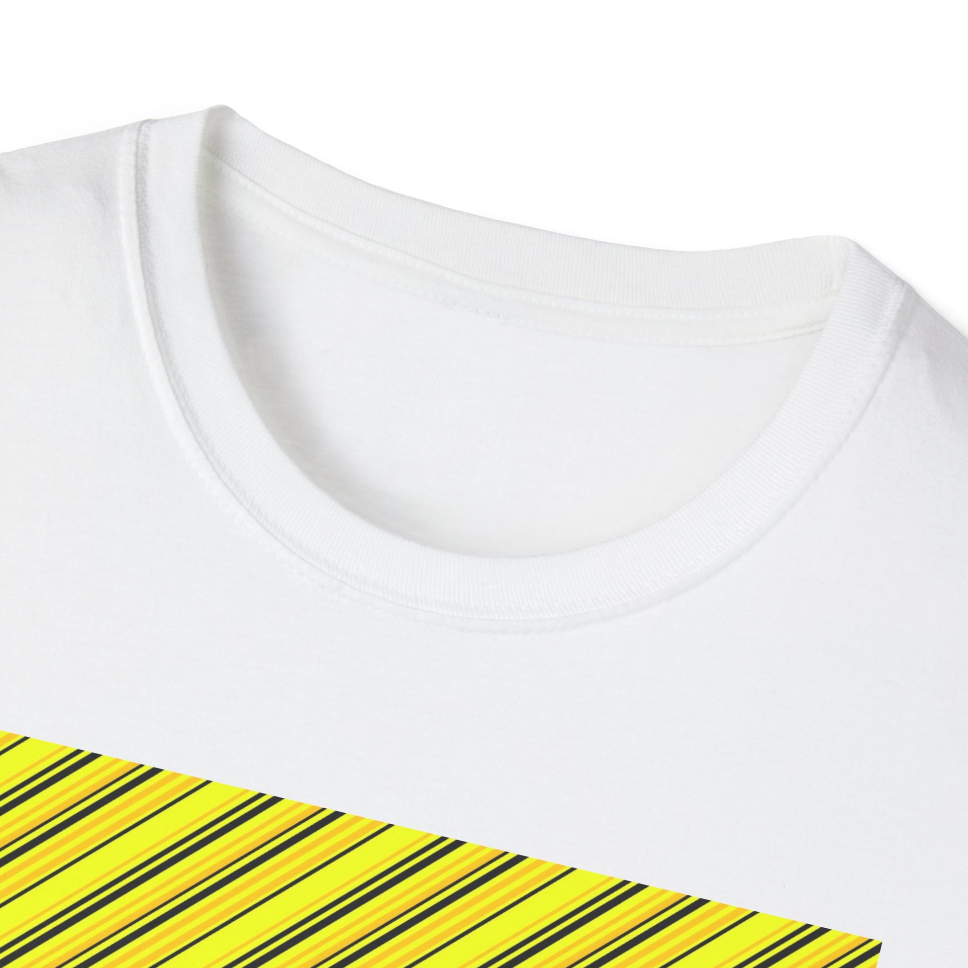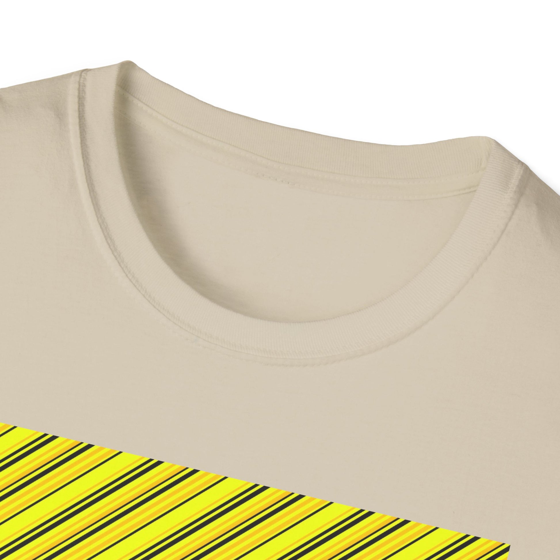 This lightweight tee carries a playful, upbeat energy — a cheerful character peeking out from a vivid banana-yellow, diagonal-striped background. Soft ring-spun cotton and a classic crew neck make it feel easy and familiar from the first wear. The design feels casual and confident, the kind of shirt someone reaches for when they want to brighten a commute, class, or weekend hangout. It layers well under a jacket or stands alone as a statement of lighthearted style for everyday life.