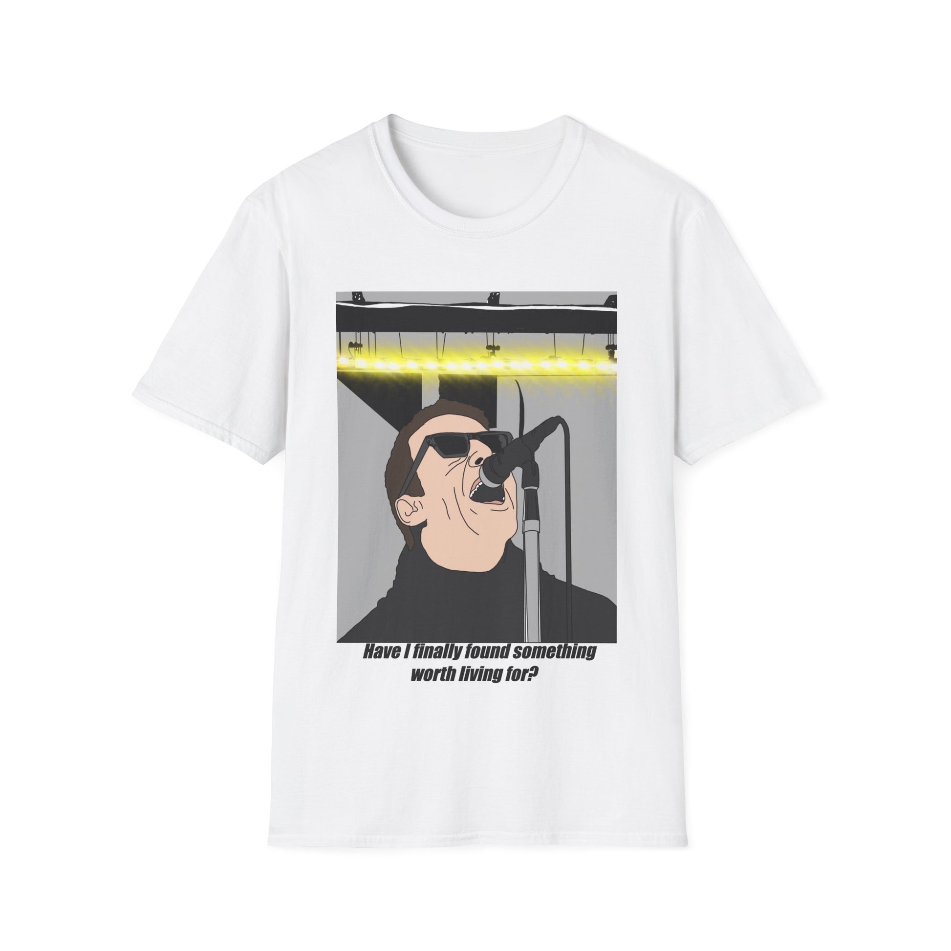 Wear the rush of the stage and the crackle of late-night rehearsals. This lightweight tee carries a bold, minimalist portrait of a singer mid-verse — shades pulled down, microphone close, a strip of neon lighting above. The soft ring-spun cotton feels breathable and lived-in from the first wear, so it slides under a leather jacket or stands alone with ripped jeans. Short lines of lyrics sit beneath the image, quiet and direct, like something you’d whisper backstage before the lights go up. This shirt settles into your rotation: for soundchecks, vinyl-hunting afternoons, and nights when you need to feel connected to the music.