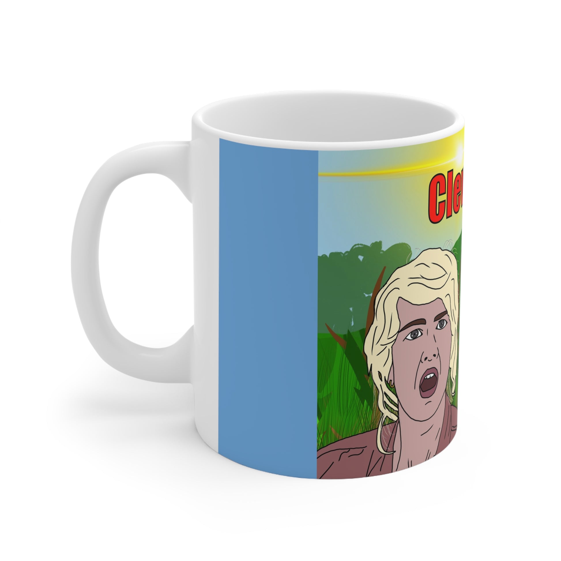 Wake up to a laugh every morning with this glossy ceramic coffee cup. Bold, cartoon-style artwork wraps the mug in bright colors—sunny sky, wild greenery, and expressive faces—that catch the eye and start conversations. The comfortable C-shaped handle and two size options mean you can choose a quick 11oz pour or settle in with a generous 15oz cuppa. Durable ORCA coating keeps the print vivid through daily use, while microwave and dishwasher safety make it an easy part of your routine. Safe, lead- and BPA-free ceramic with a smooth glossy finish that feels good in hand and looks great on the counter.