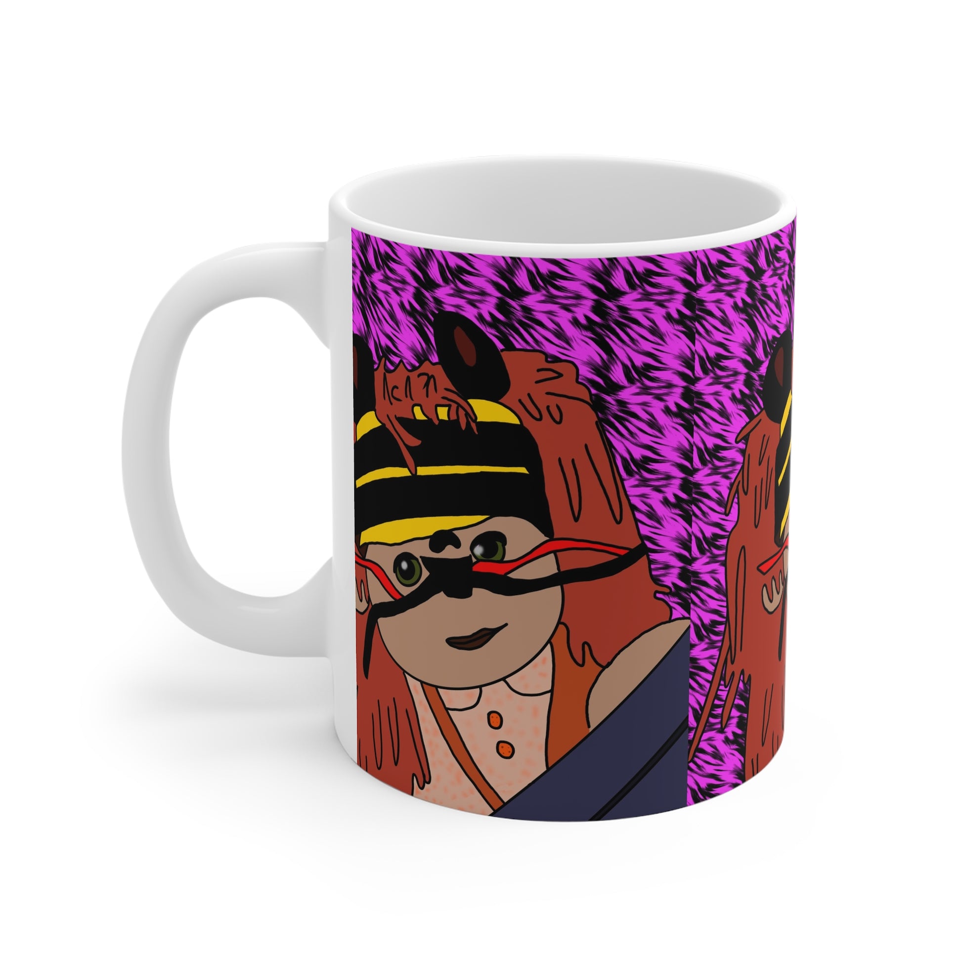 A vibrant 11 oz ceramic mug that brings playful energy to your morning ritual. Bold, hand-drawn character art wraps around a bright purple textured background, turning a simple coffee break into a moment of delight. The smooth white ceramic and C-handle make it easy to hold while the AAA+ ORCA coating keeps colors radiant through repeated use. Dishwasher- and microwave-safe, this mug is built for everyday life and the small, joyful pauses that punctuate it.