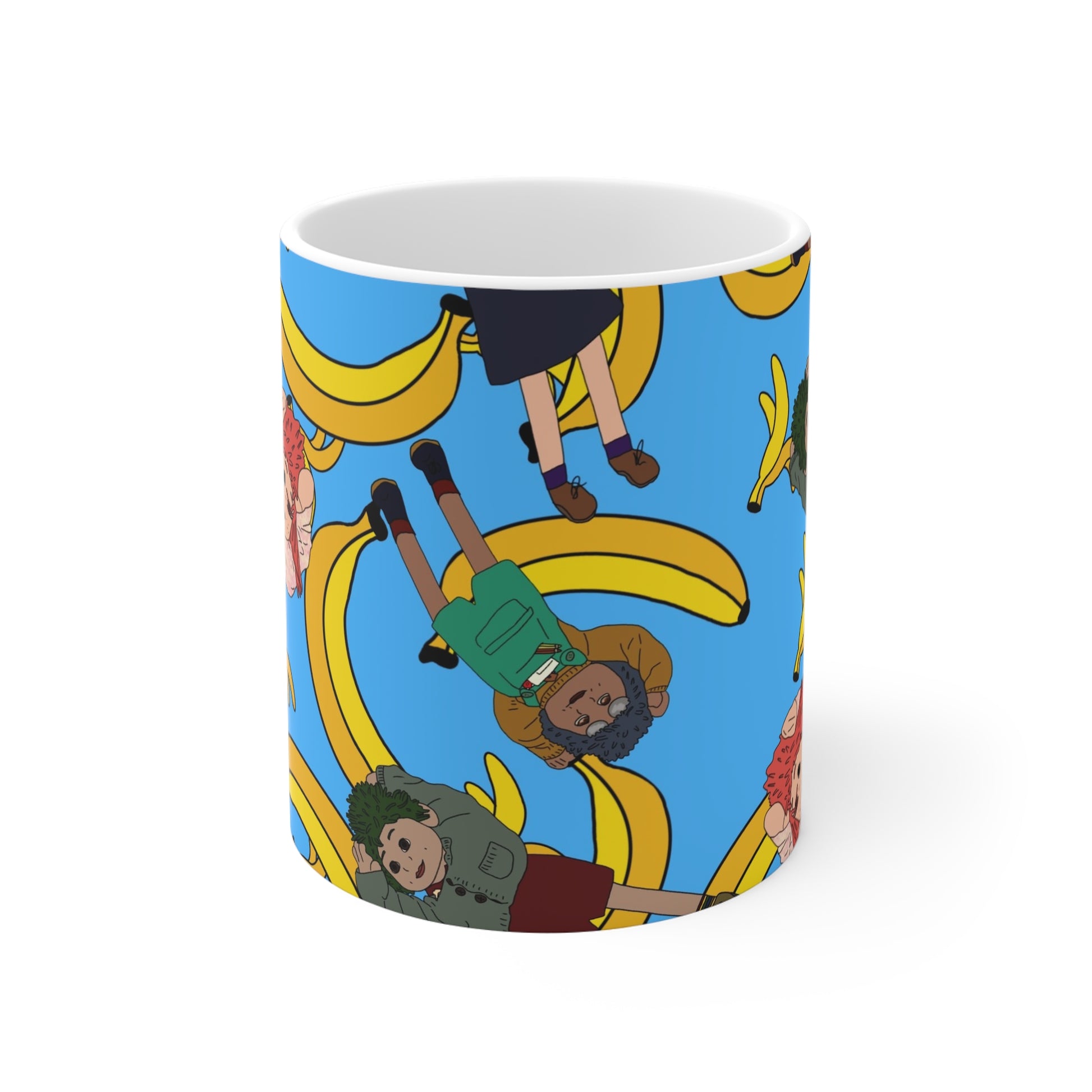 Bright, playful, and full of character — this 11 oz ceramic mug brings a slice of joy to morning routines. A lively pattern of smiling kids and oversized bananas dances across a sky-blue background, turning a simple coffee break into a small celebration. The rounded C-handle sits comfortably in hand while the ORCA-coated surface keeps colors vivid through repeated use. It’s the kind of mug that sparks a grin mid-sip and fits right into cozy kitchens, classroom desks, or work-from-home setups where a little whimsy is welcome.
