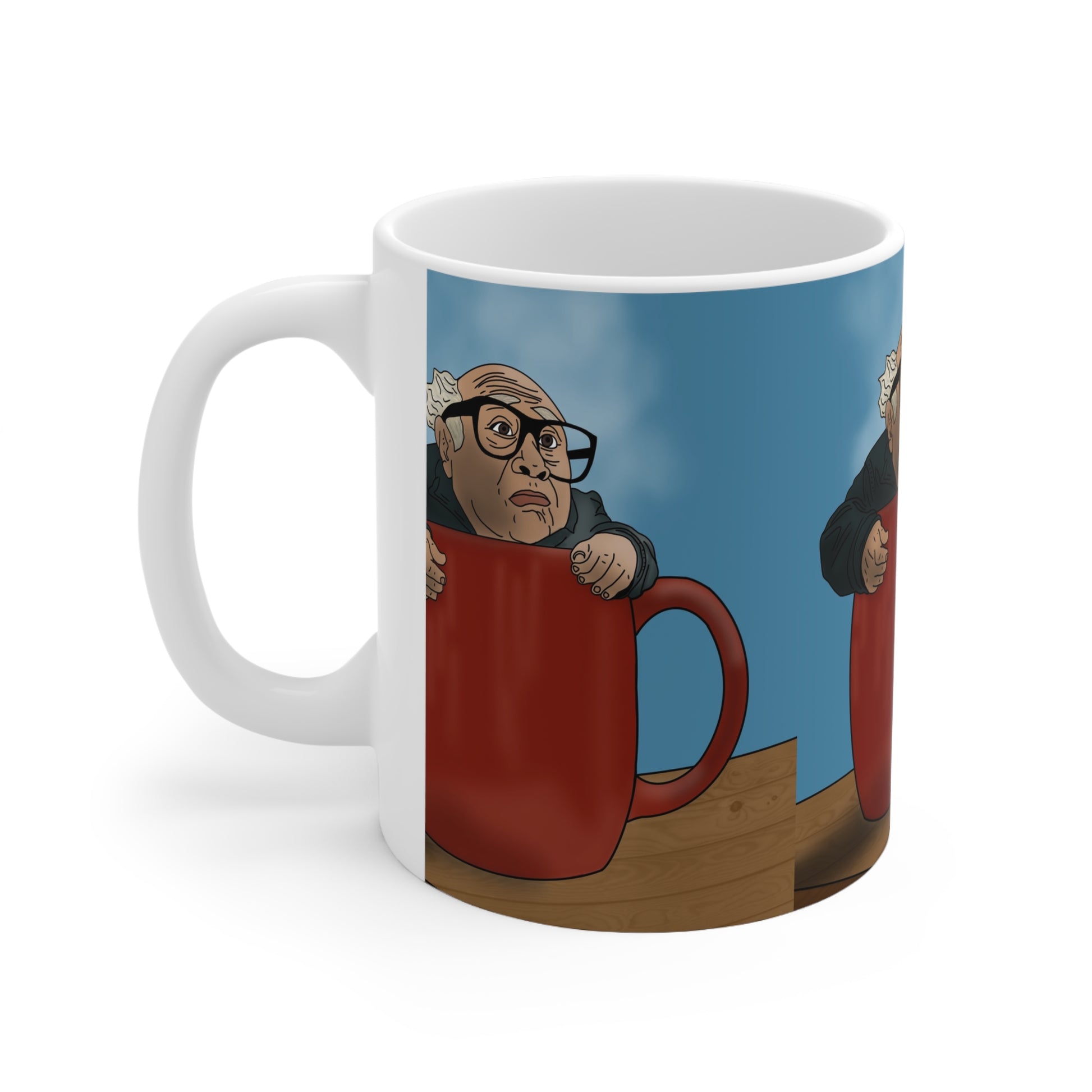 Danny Divito Ceramic Coffee Mug — Funny Man-in-Cup Illustration