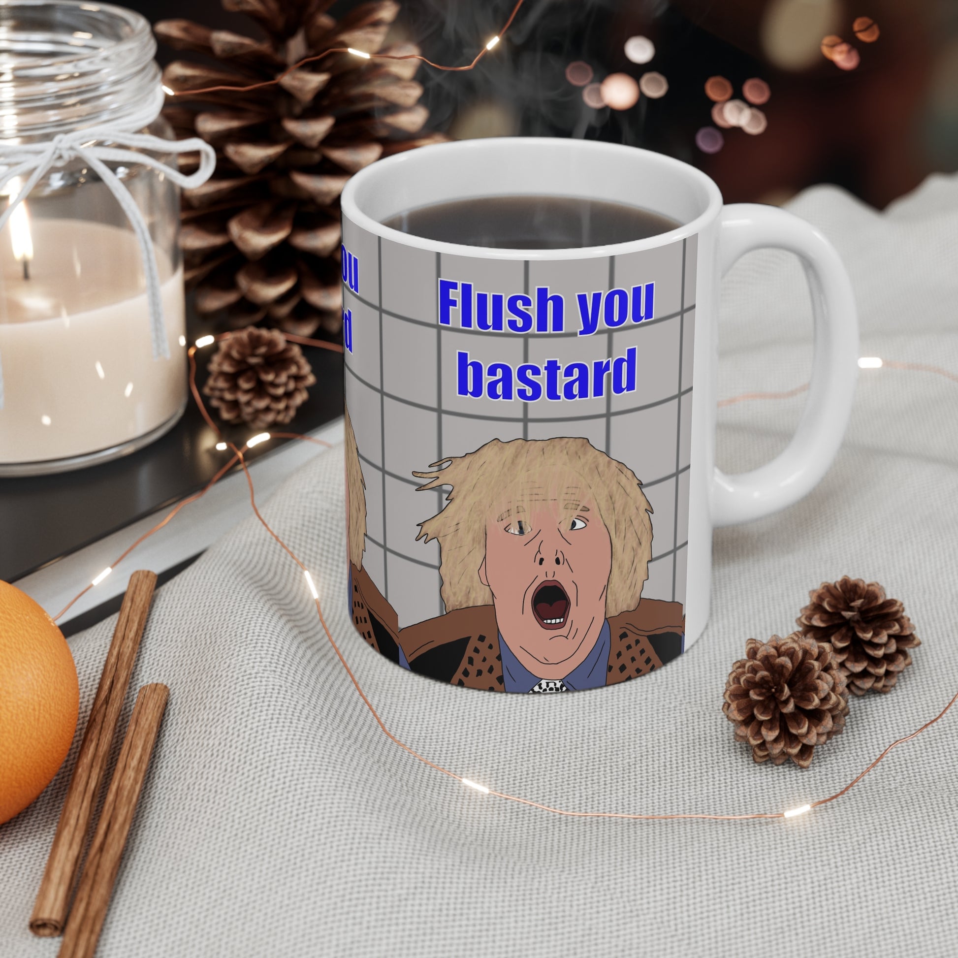 Dumb & Dumber Funny 'Flush You Bastard' Ceramic Coffee Mug — Novelty Cup