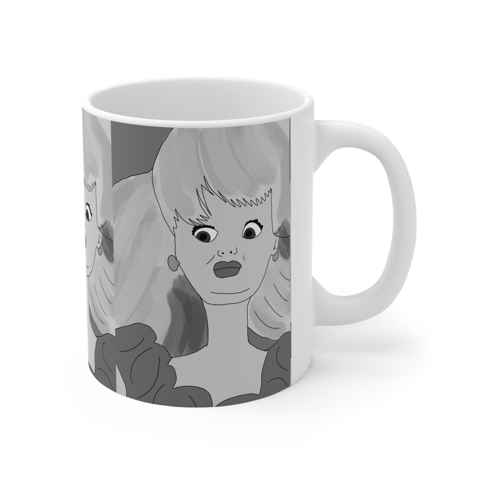 A glossy white ceramic mug that brings a playful, retro-pop illustration to your morning ritual. The wraparound artwork features a stylized, wide-eyed character with vintage flair — think bold lines, dramatic expression, and a touch of tongue-in-cheek charm. Lightweight yet sturdy, this mug holds a generous pour (choose 11oz or 15oz) and wears its bright print with a durable ORCA coating that keeps colors crisp through daily use. It’s microwave- and dishwasher-safe, lead- and BPA-free, and built to brighten routines from slow weekend coffee to quick workday refuels.