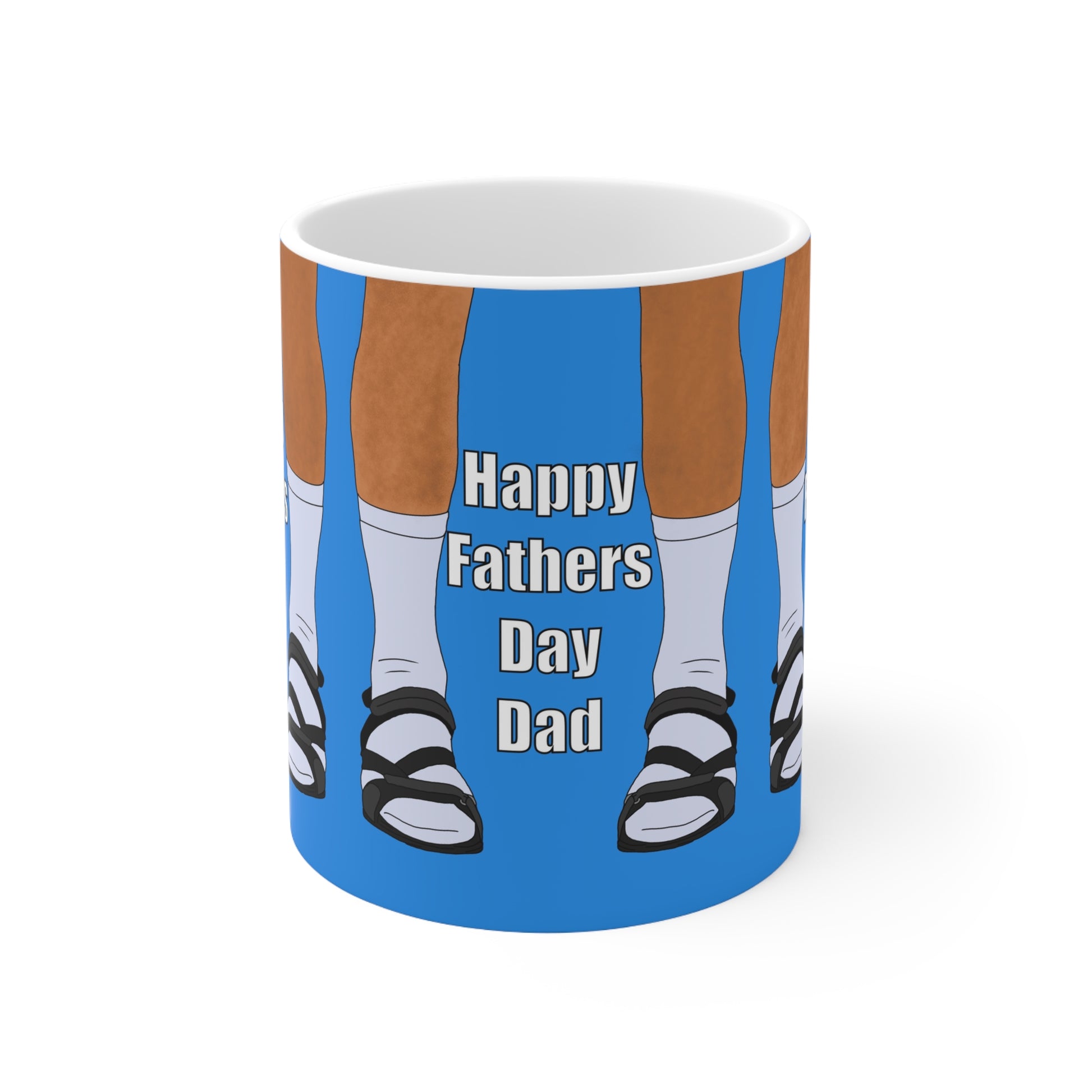 Father's Day Coffee Mug — "Happy Fathers Day Dad" Funny Sandals & Socks Ceramic Mug (11oz/15oz)