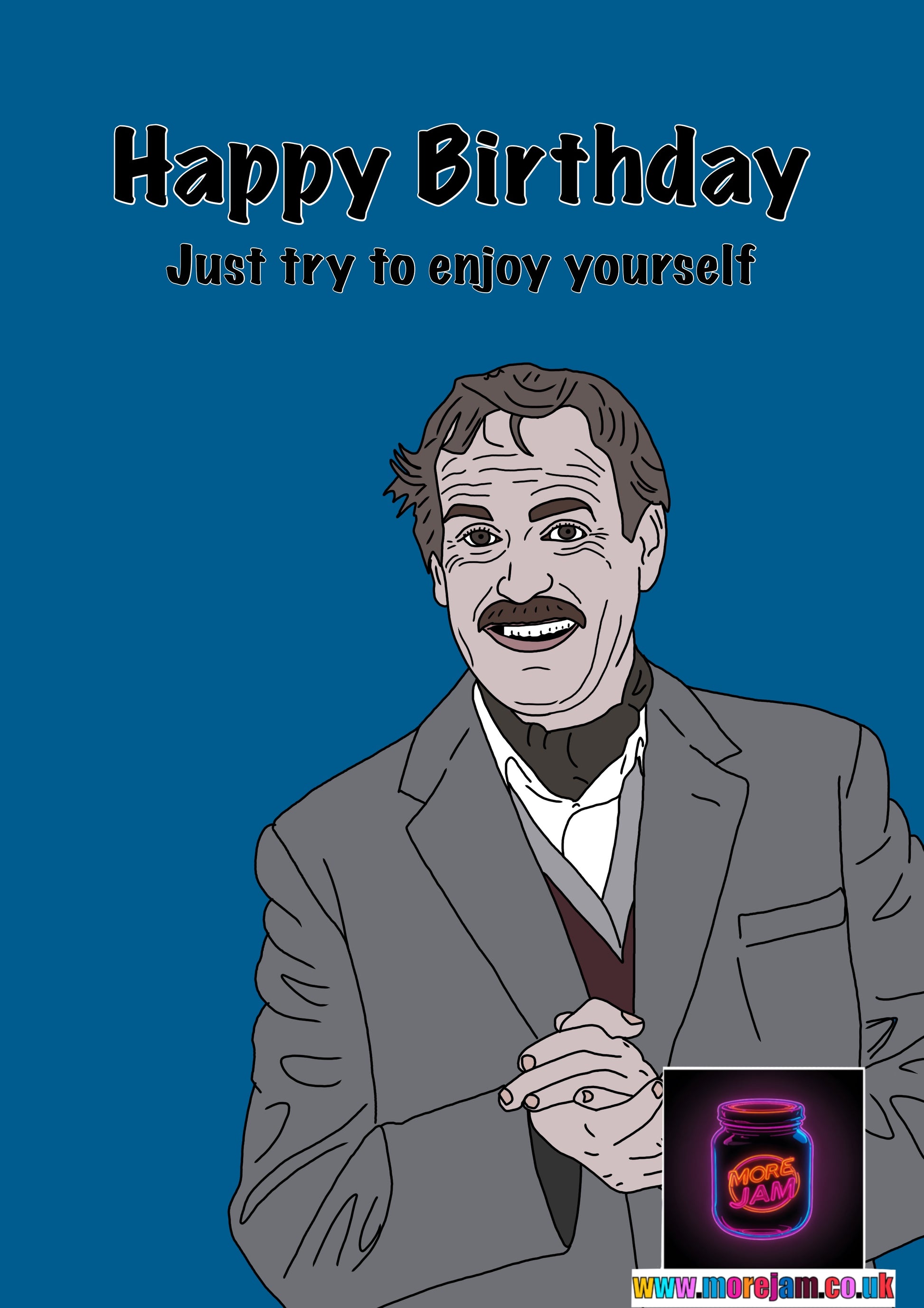 Fawlty Towers Basil Fawlty Birthday Card Try To Enjoy Yourself Funny BBC Comedy | More Jam