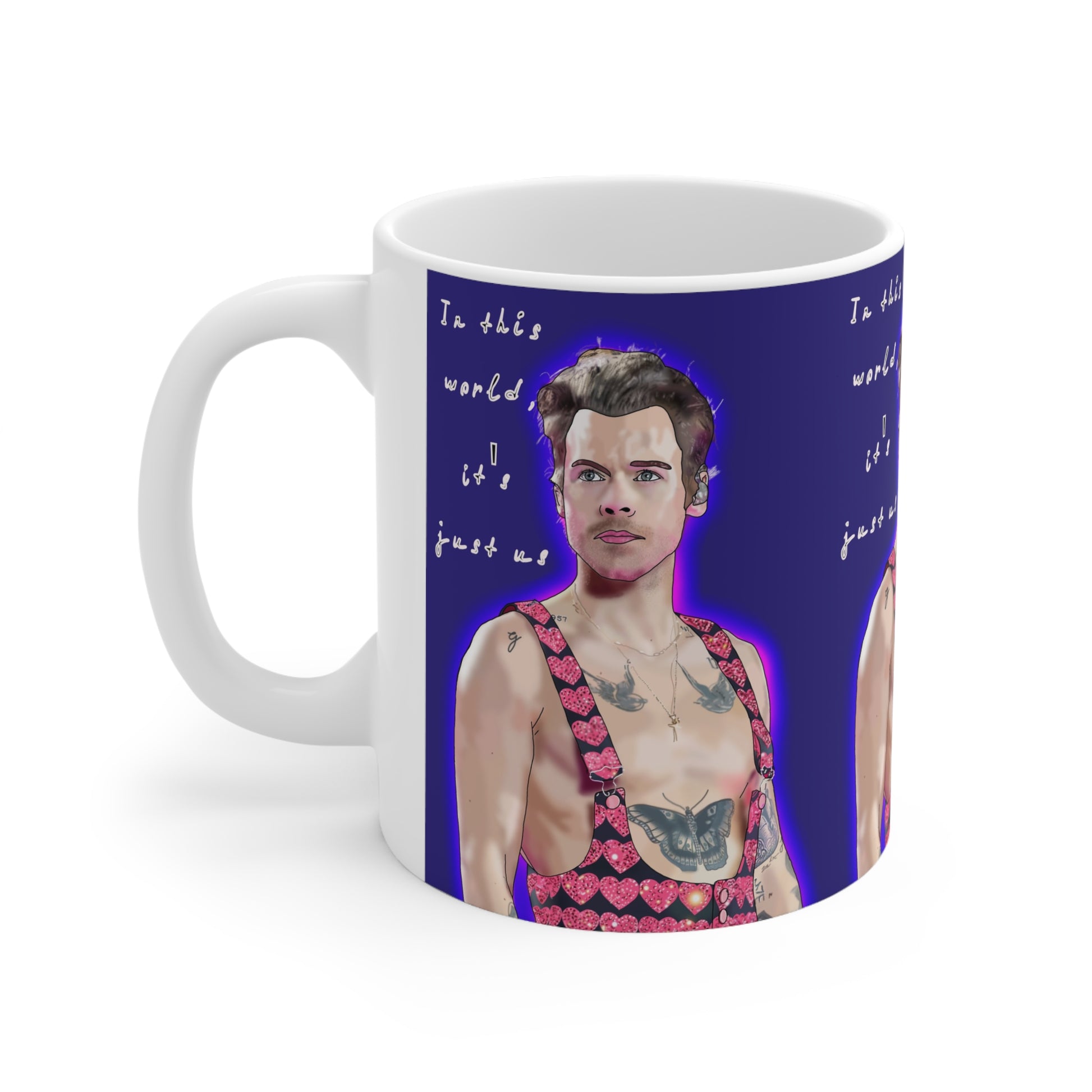 A glossy ceramic mug designed to brighten mornings with bold color and cheeky charm. The vivid, high-definition print wraps around the mug, contrasting a deep, electric background with a playful, portrait-style figure and handwritten script. The 11oz and 15oz sizes suit a quiet solo coffee ritual or a longer, slow-sip tea break. Durable ORCA coating keeps colors striking wash after wash, while microwave and dishwasher safety make this an easy everyday piece. Lightweight but sturdy, the C-shaped handle feels natural in hand. This mug brings a little theatrical energy to everyday counters, desks, and cozy corners—great for someone who enjoys expressive, slightly rebellious art alongside their morning brew.