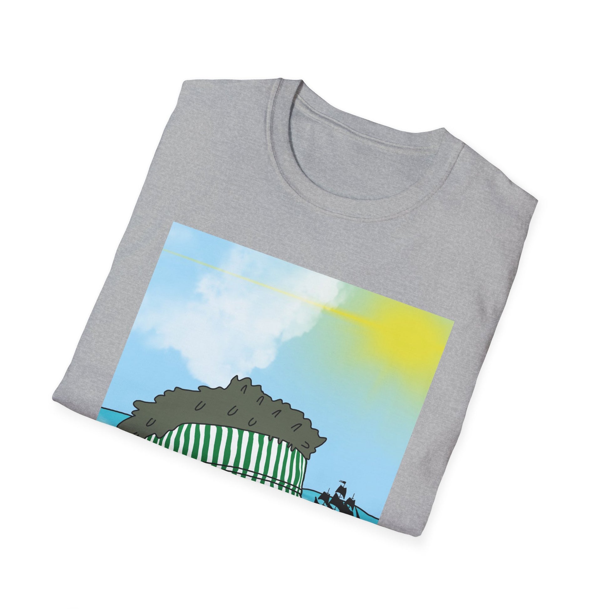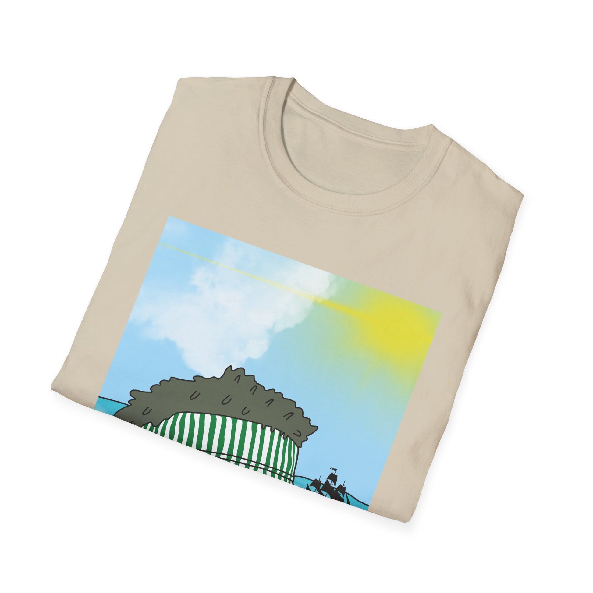 This lightweight cotton tee brings a quiet, sun-warmed island moment to your everyday wardrobe. A friendly character wearing a striped headband and a lei stands against a breezy ocean backdrop — a gentle scene that feels like walking barefoot on hot sand after a long week. The soft crew neck and classic fit let the artwork sit front-and-center while the breathable ring-spun cotton keeps you comfortable from morning coffee to evening strolls. Wear it when you want a little calm, nostalgia, and island energy woven into an otherwise ordinary day.