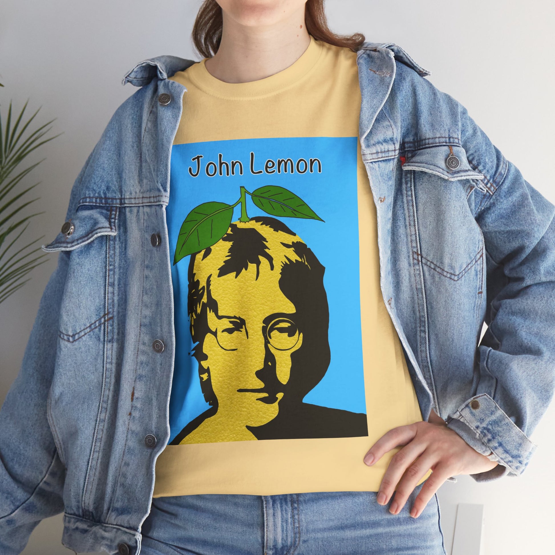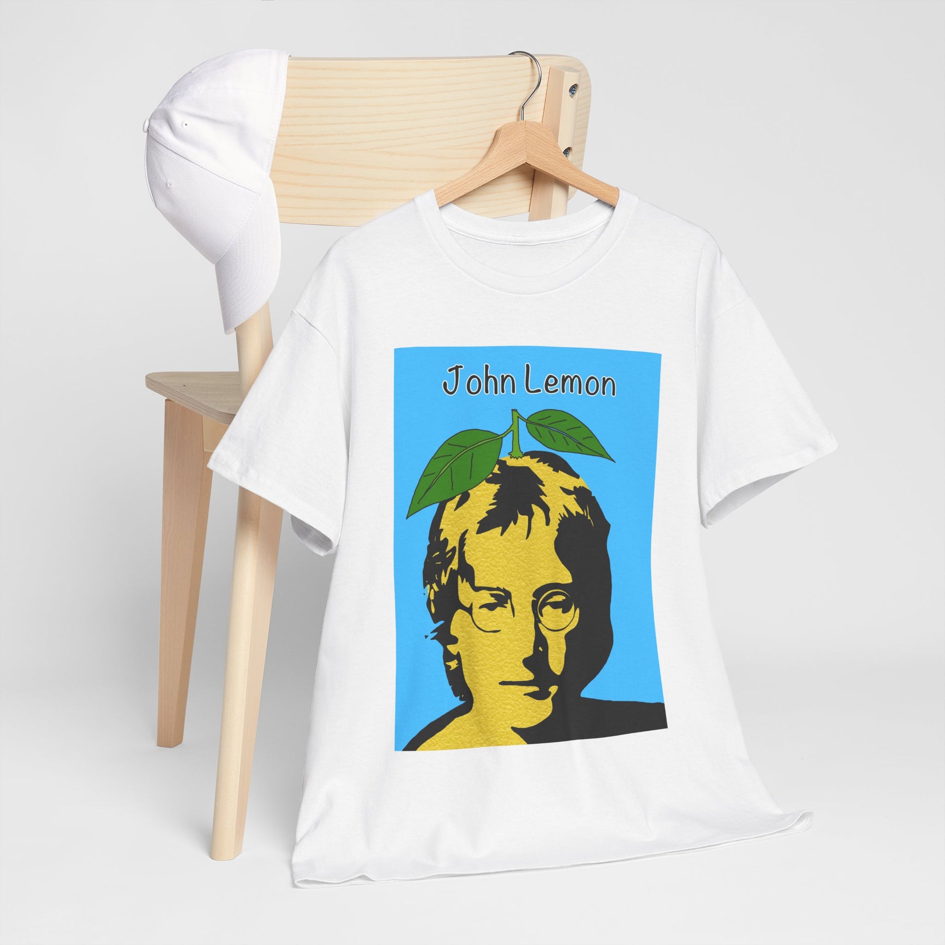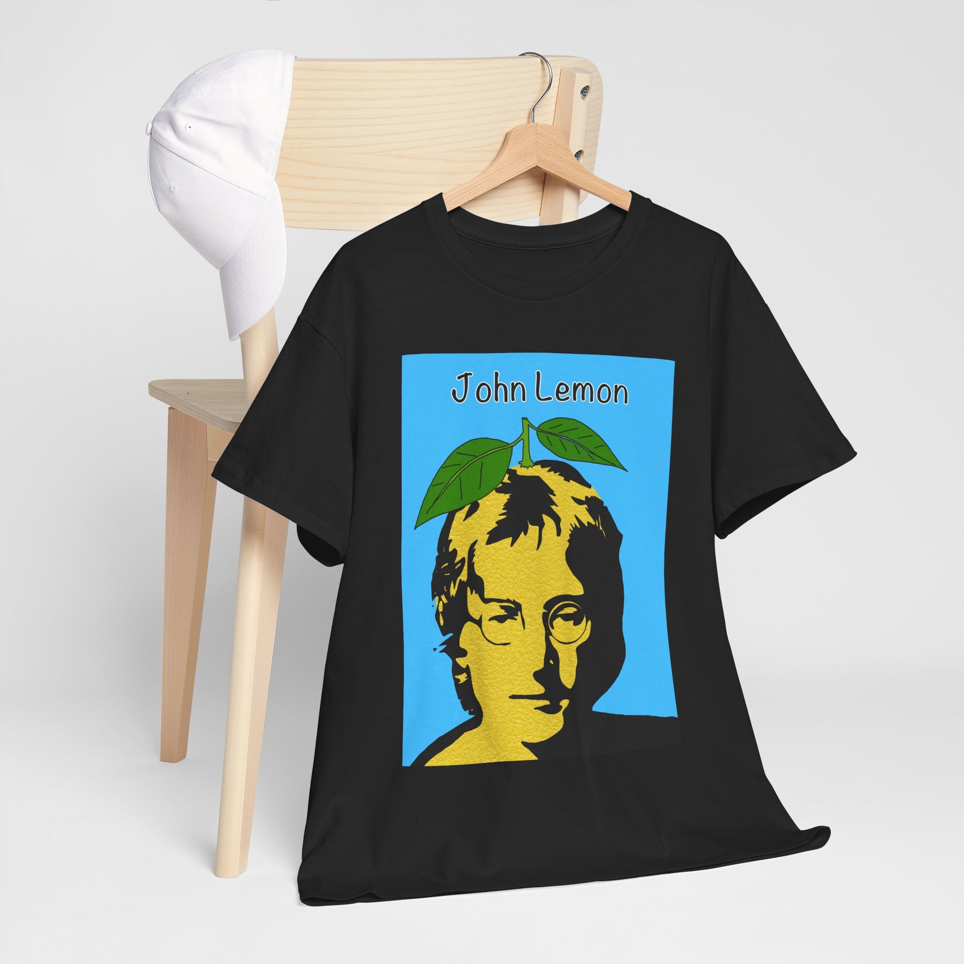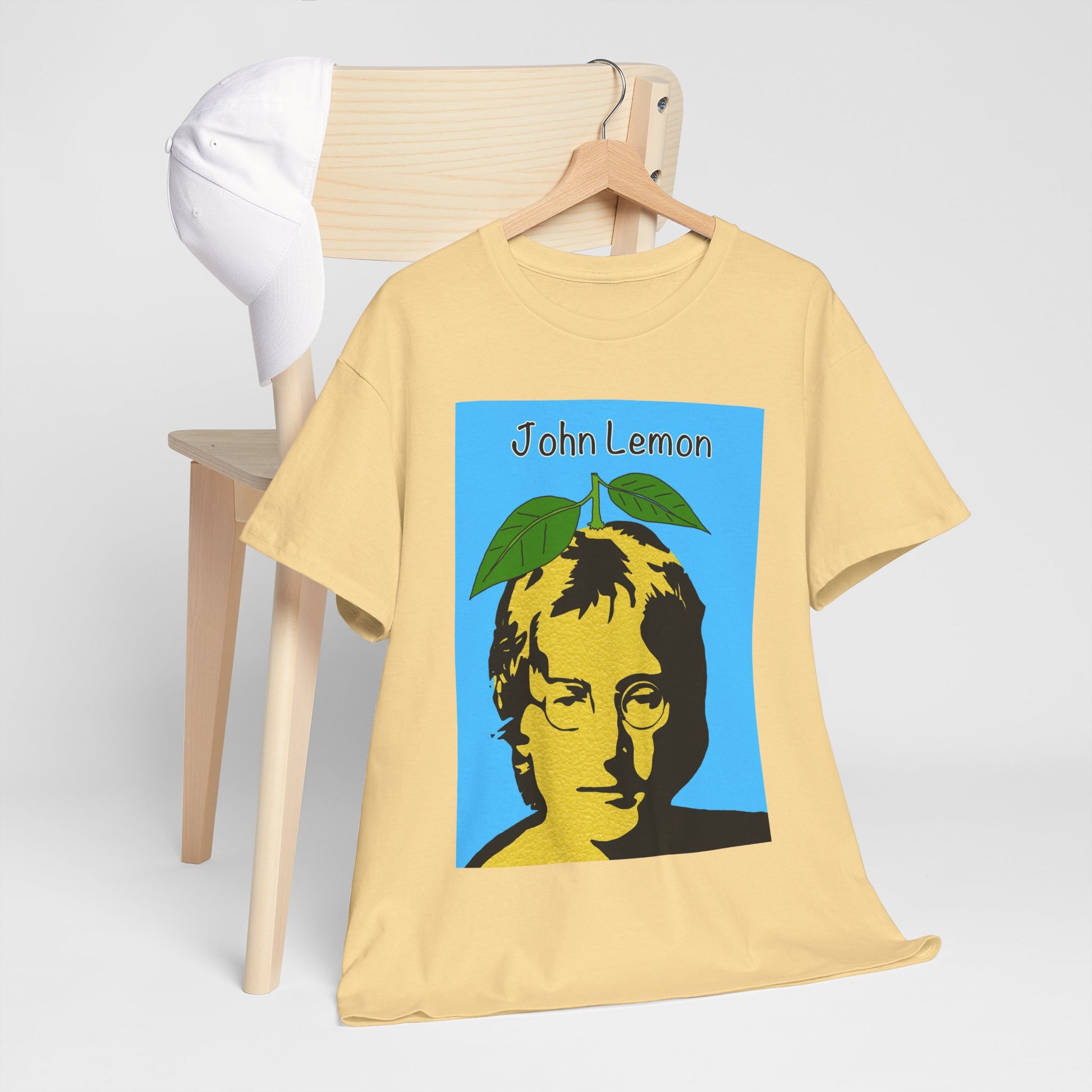 Wear a wink of music and a splash of pop-art with this soft, sturdy tee. The front features a bright, poster-style portrait titled “John Lemon” — a playful riff on classic rock imagery with bold yellow and black halftone tones, leafy accents, and a sky-blue backdrop. The shirt’s relaxed crew cut and medium-weight cotton feel familiar and lived-in from the first wear, while the smooth print methods keep the artwork crisp and vibrant. Layer it under a denim jacket, throw it on for open-mic nights, or let it lead your weekend vintage-market look. It’s an easy way to add humor and personality to everyday outfits while keeping comfort front and center.
