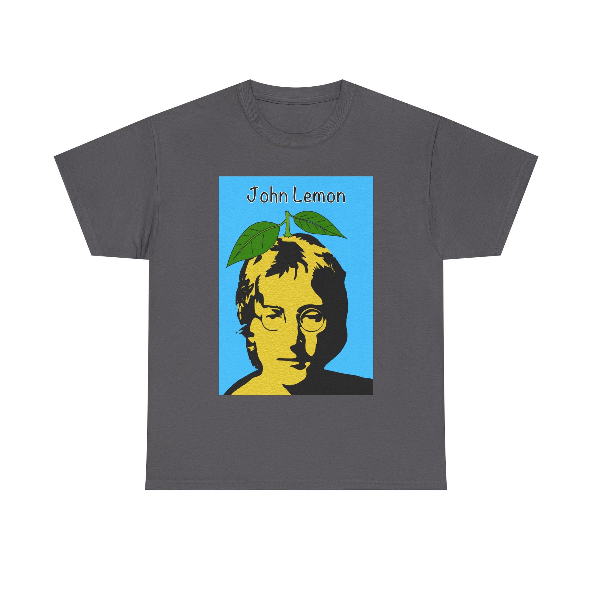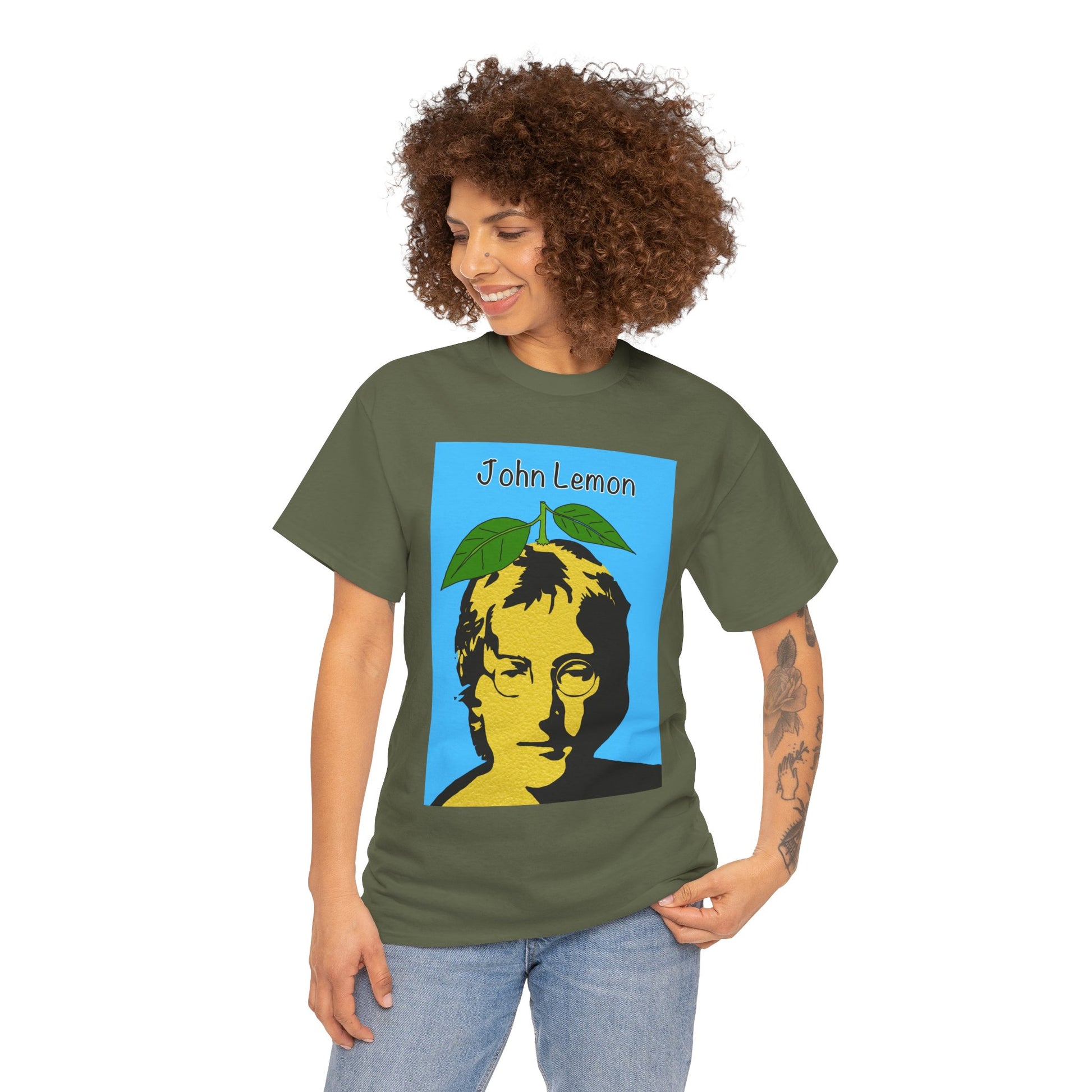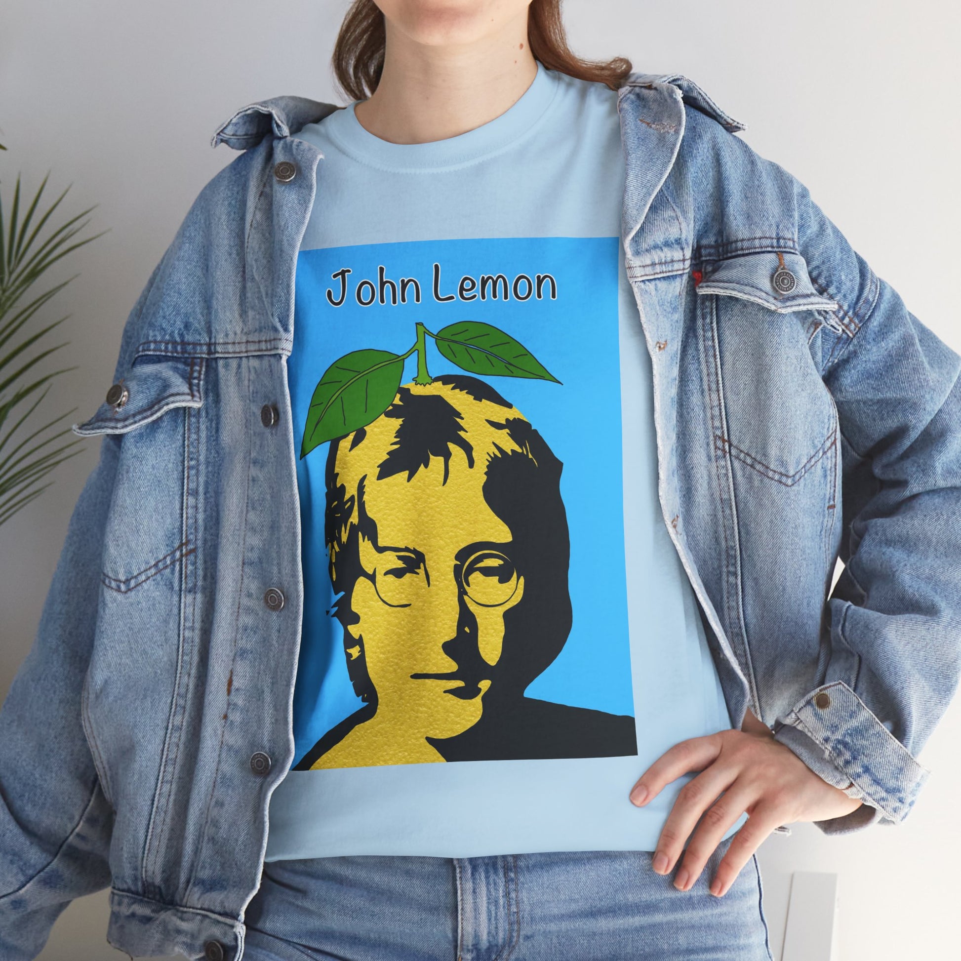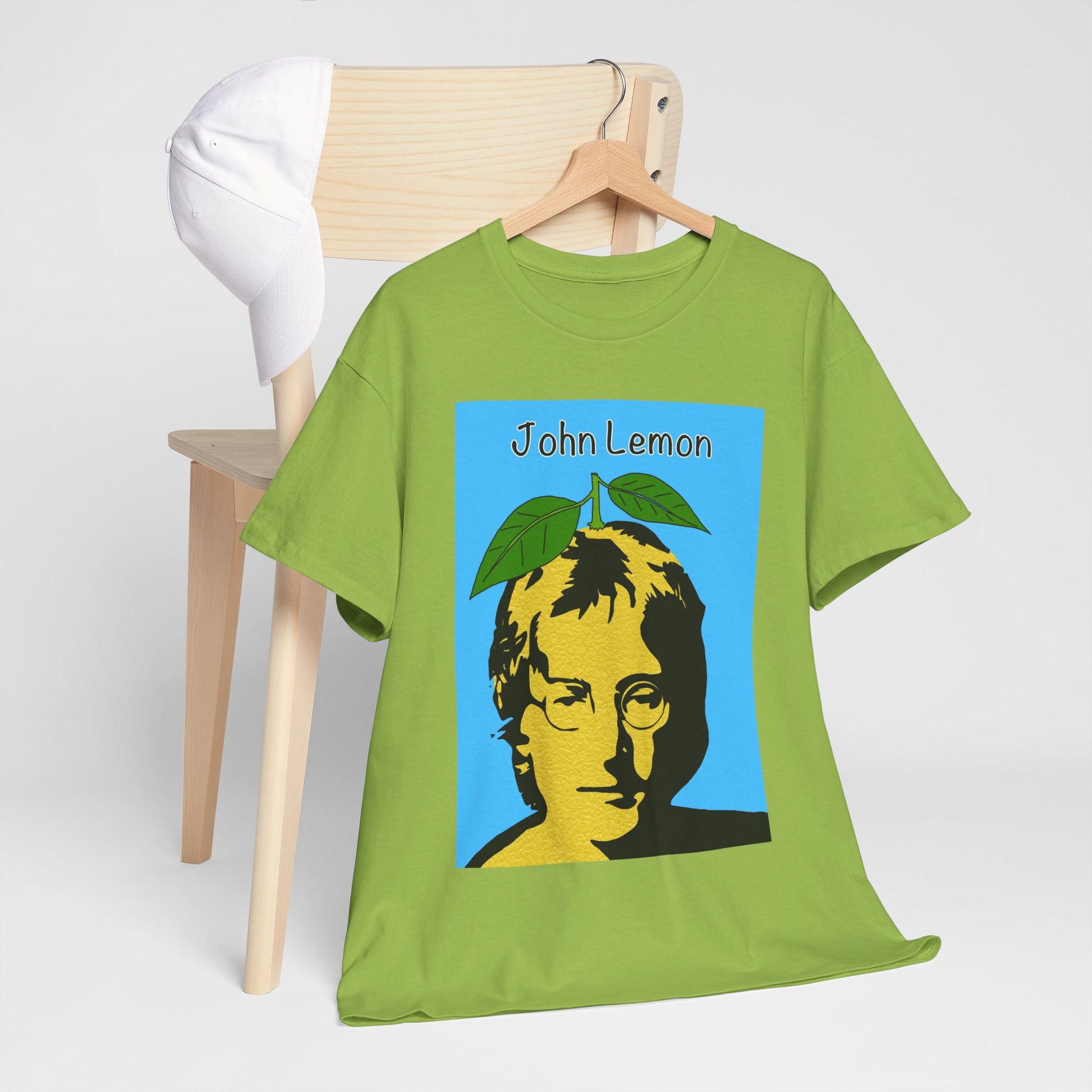 Wear a wink of music and a splash of pop-art with this soft, sturdy tee. The front features a bright, poster-style portrait titled “John Lemon” — a playful riff on classic rock imagery with bold yellow and black halftone tones, leafy accents, and a sky-blue backdrop. The shirt’s relaxed crew cut and medium-weight cotton feel familiar and lived-in from the first wear, while the smooth print methods keep the artwork crisp and vibrant. Layer it under a denim jacket, throw it on for open-mic nights, or let it lead your weekend vintage-market look. It’s an easy way to add humor and personality to everyday outfits while keeping comfort front and center.