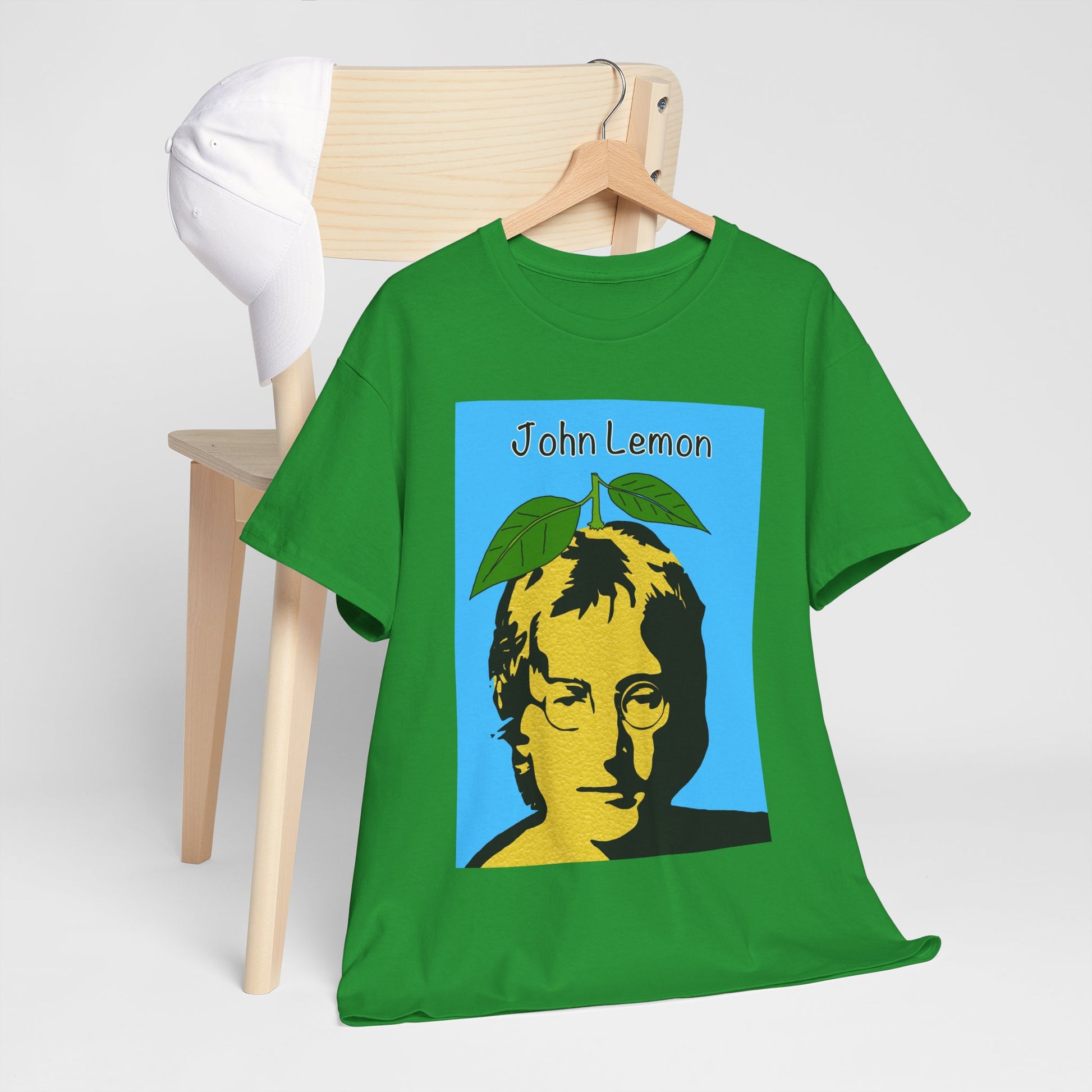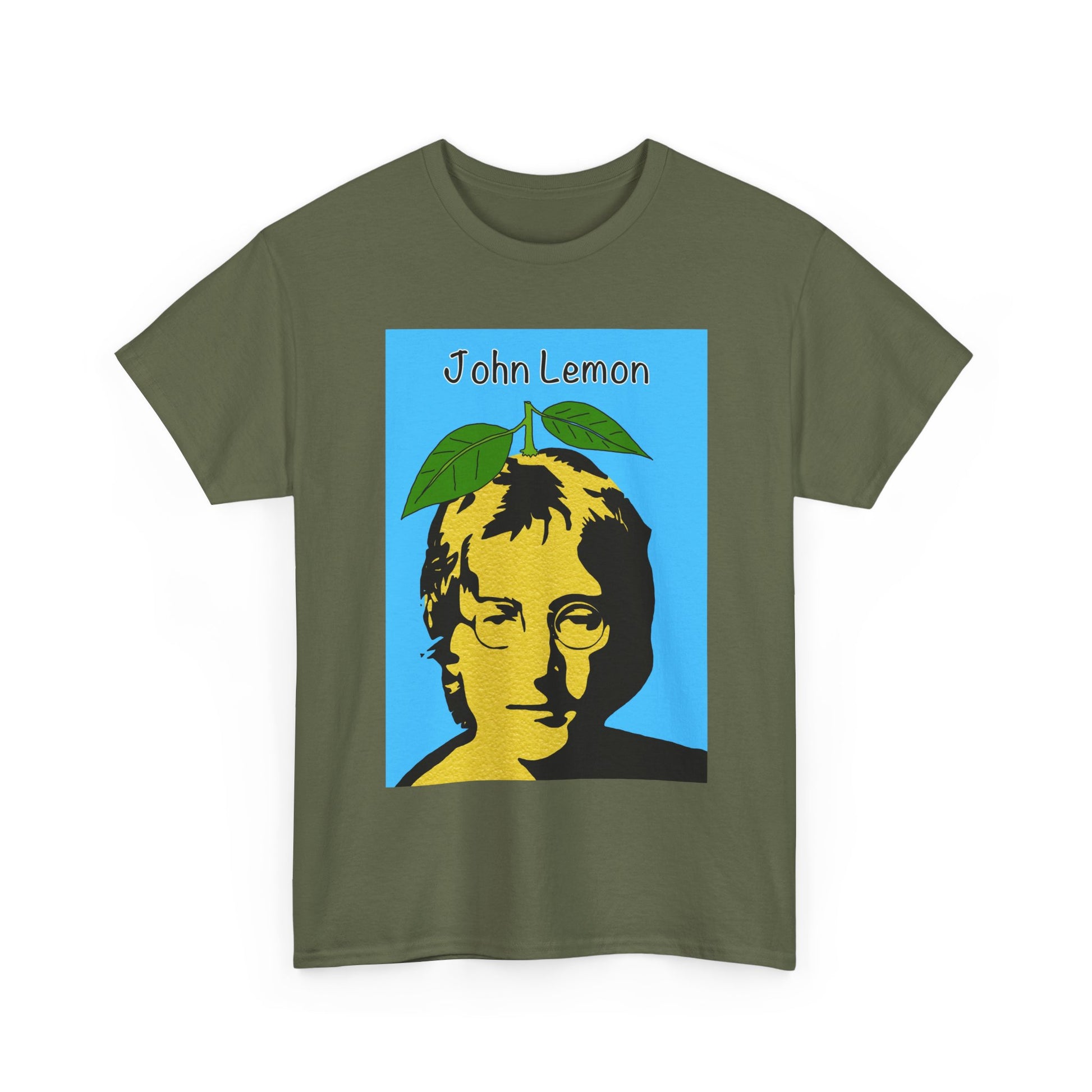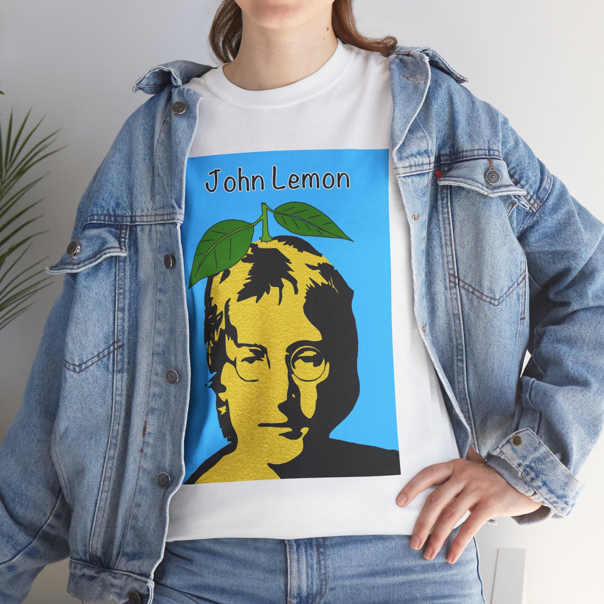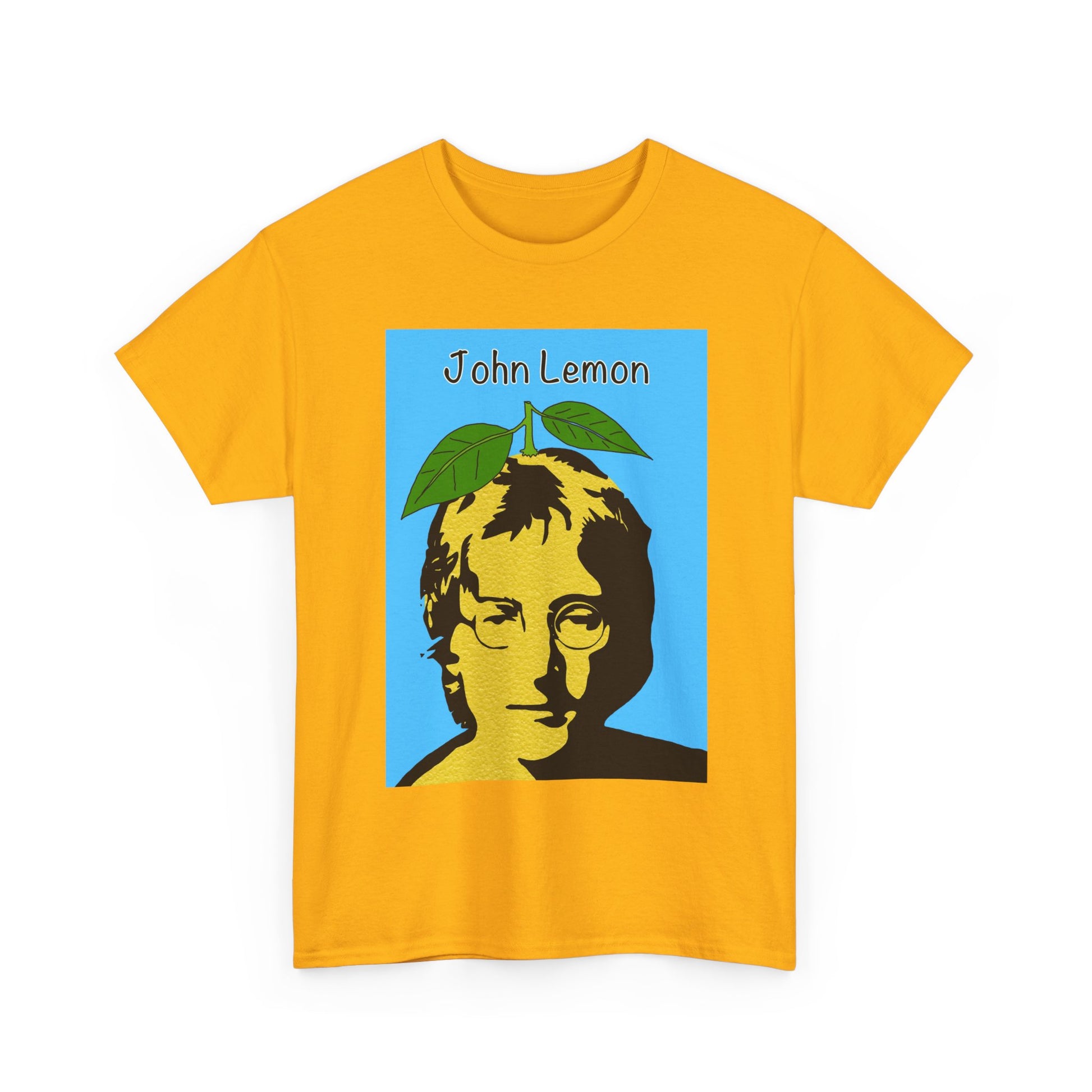 Wear a wink of music and a splash of pop-art with this soft, sturdy tee. The front features a bright, poster-style portrait titled “John Lemon” — a playful riff on classic rock imagery with bold yellow and black halftone tones, leafy accents, and a sky-blue backdrop. The shirt’s relaxed crew cut and medium-weight cotton feel familiar and lived-in from the first wear, while the smooth print methods keep the artwork crisp and vibrant. Layer it under a denim jacket, throw it on for open-mic nights, or let it lead your weekend vintage-market look. It’s an easy way to add humor and personality to everyday outfits while keeping comfort front and center.