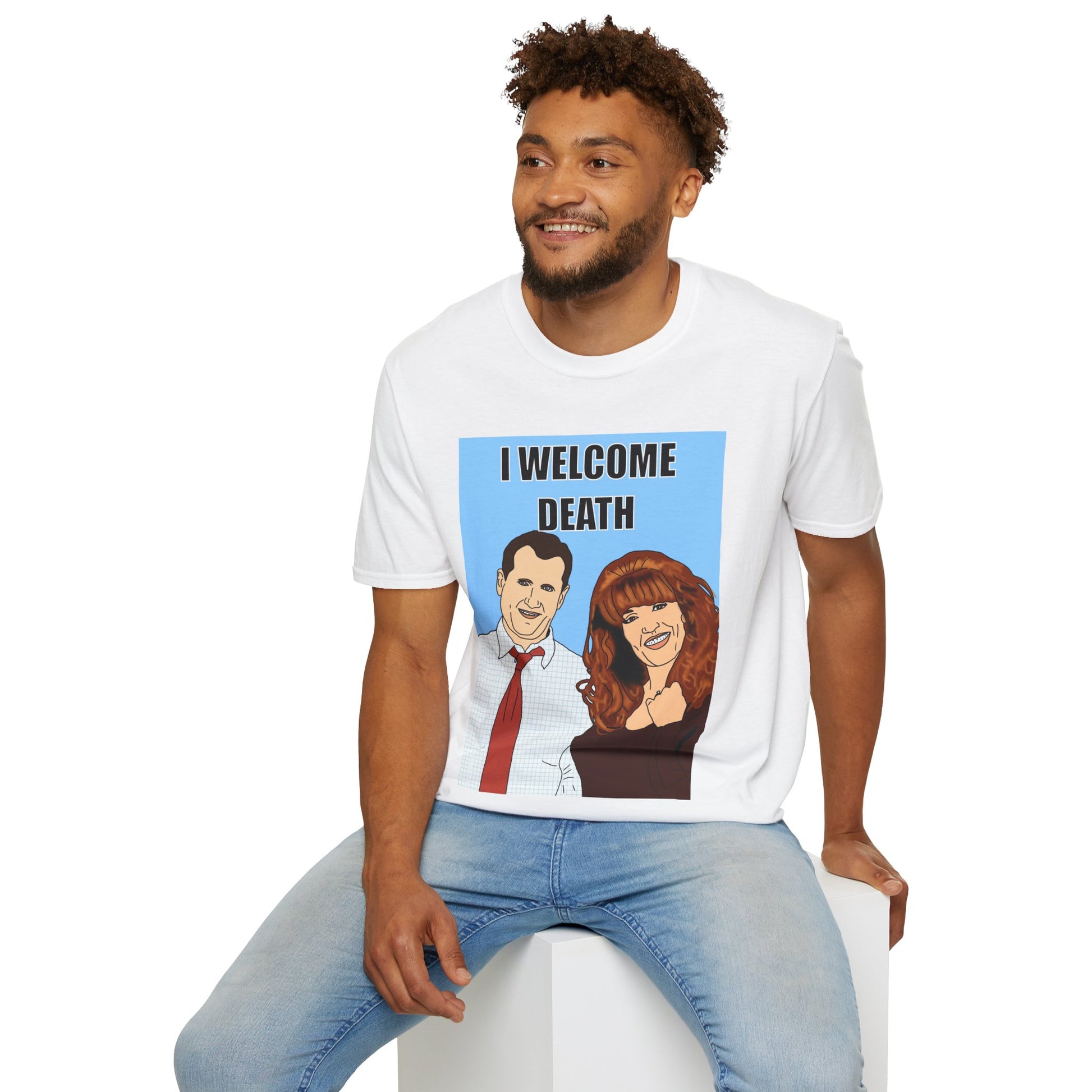 Married With Children I Welcome Death Graphic T-Shirt — Dark Humor Portrait Tee