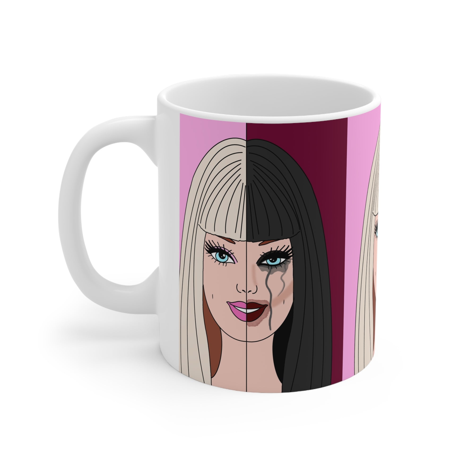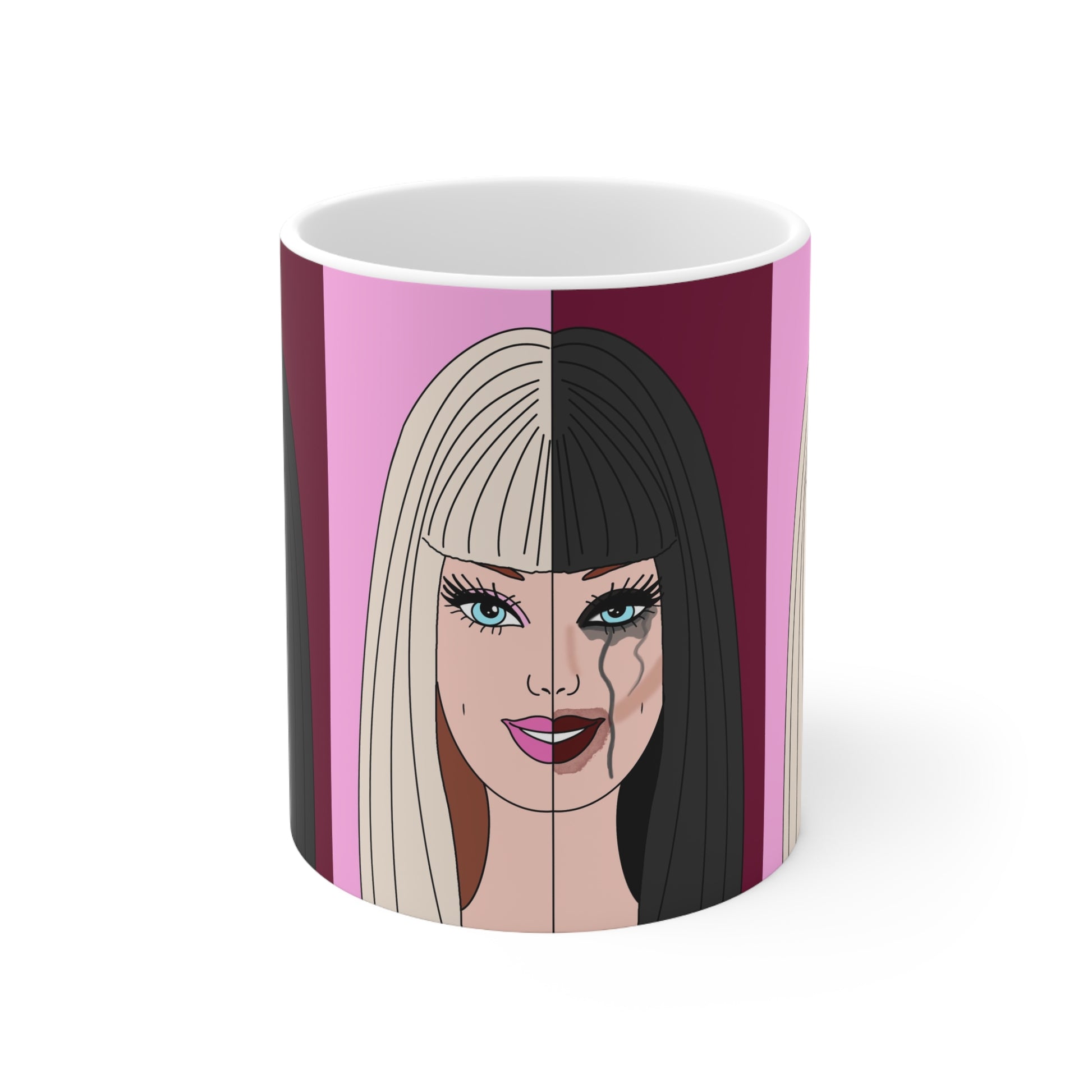Multiple Personalities Mug — Split Face Pop Art Woman Ceramic Coffee Cup