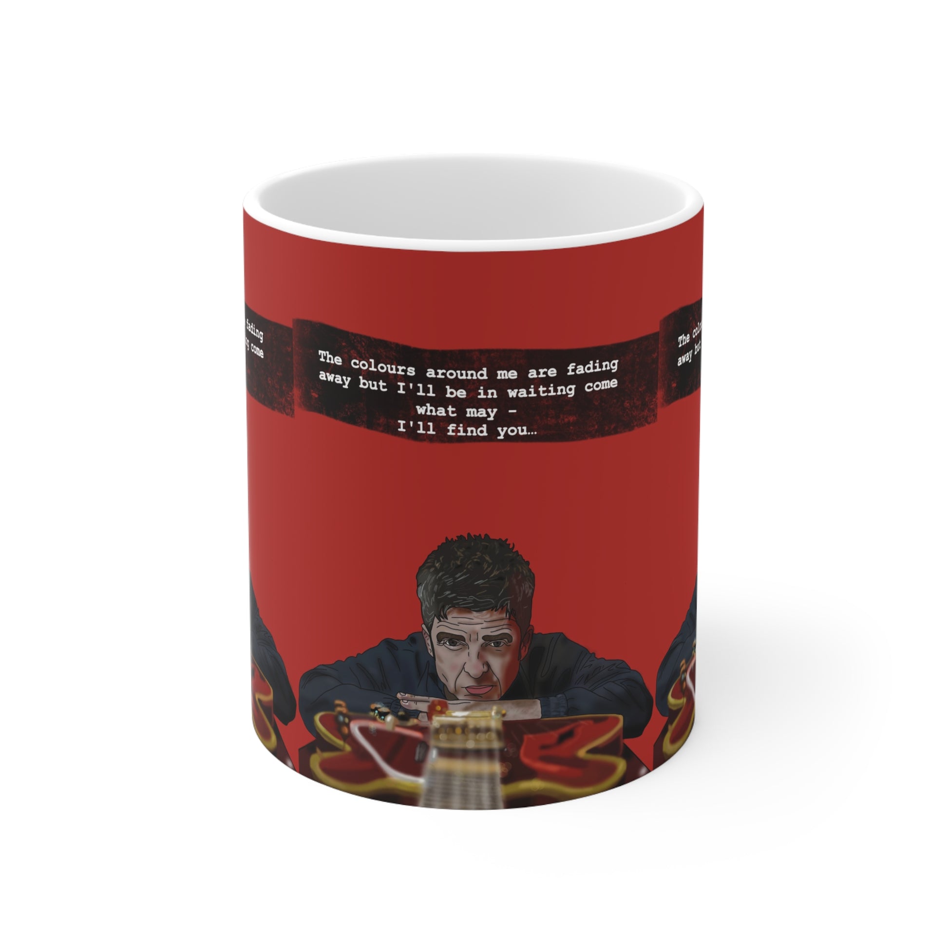 A rich, glossy ceramic mug that brings music and memory to your morning. Deep red wraparound artwork frames a focused portrait above a guitar’s neck, with a short, handwritten lyric floating across the top—quiet and insistent. The heavy color pop and crisp printing make the image feel alive, while the comfortable C-shaped handle and two size options let you choose how much ritual you want with your coffee or tea. Microwave- and dishwasher-safe, lead- and BPA-free, this mug is built for daily use and for quiet pauses between playlists or studio sessions.