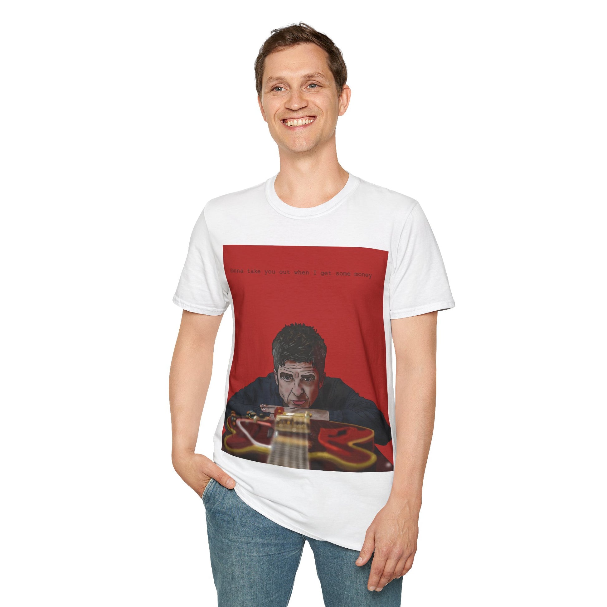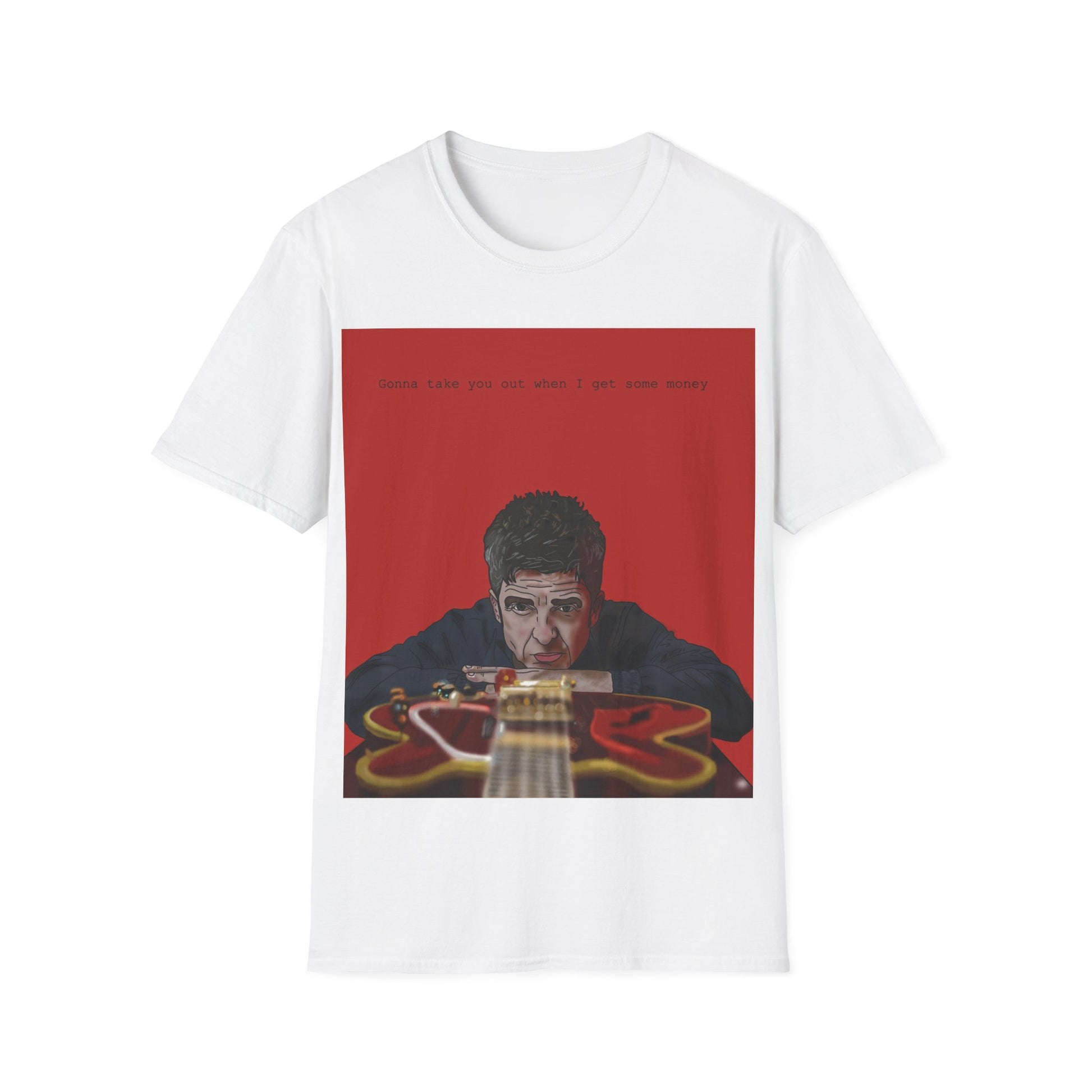 Noel Gallagher Rock Guitar Portrait T‑Shirt — Moody Musician Design