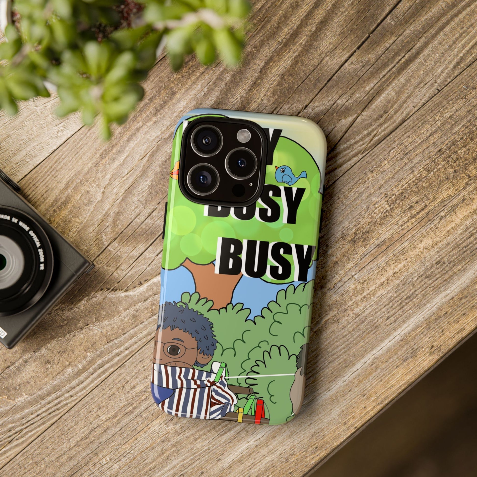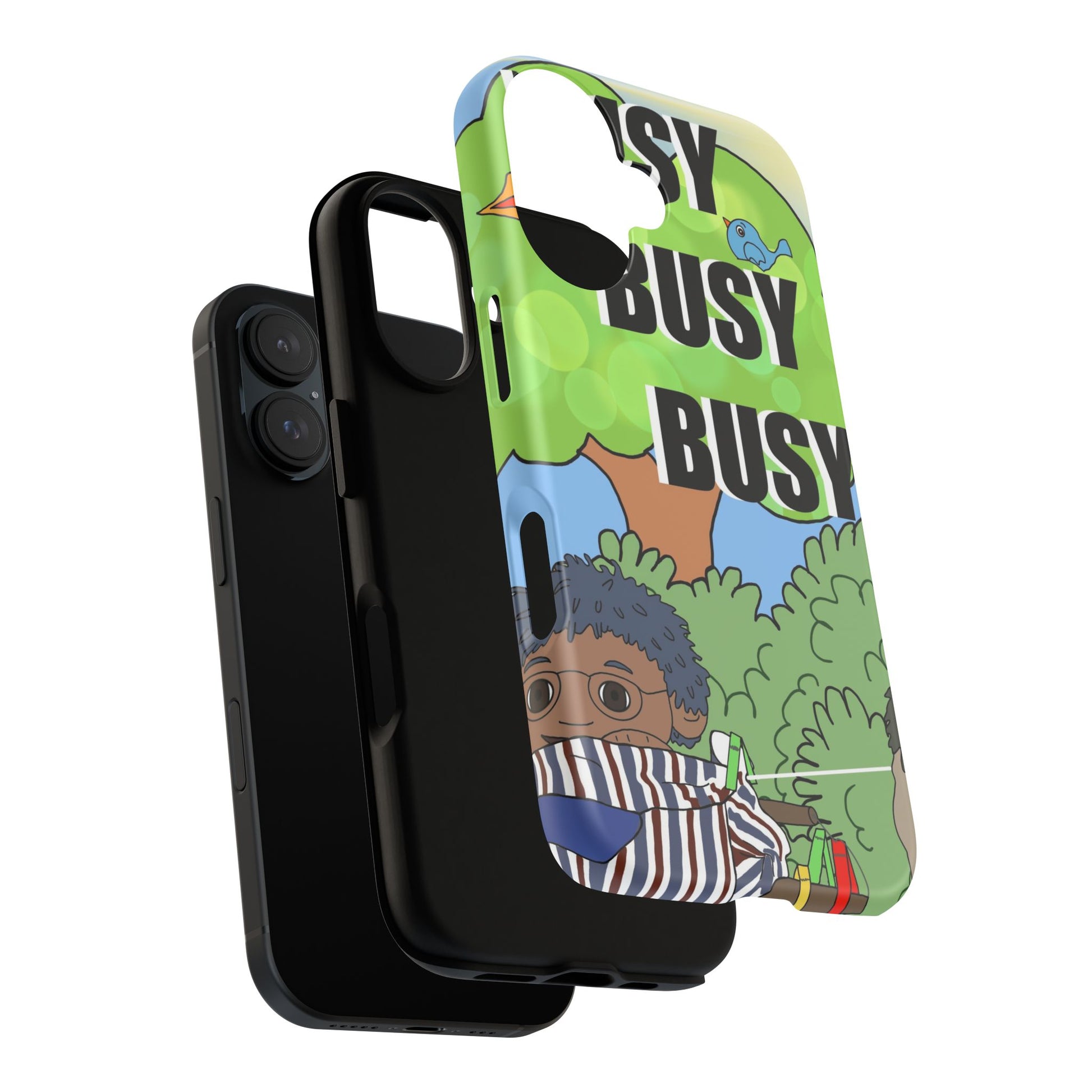 A sturdy, colorful phone case designed for people who keep moving. The artwork shows relaxed characters tucked into a green park scene with bold “BUSY” text—a playful contrast for anyone juggling tasks while carving out slow moments. The dual-layer shell and silicone liner deliver confident drop protection without adding bulky weight. Matte or glossy finishes keep the print vivid, and UV-resistant inks mean the scene holds up outdoors. Slip it on, let the imagery remind you to breathe between errands, and keep your phone protected during everyday commutes, park hangs, or coffee runs.