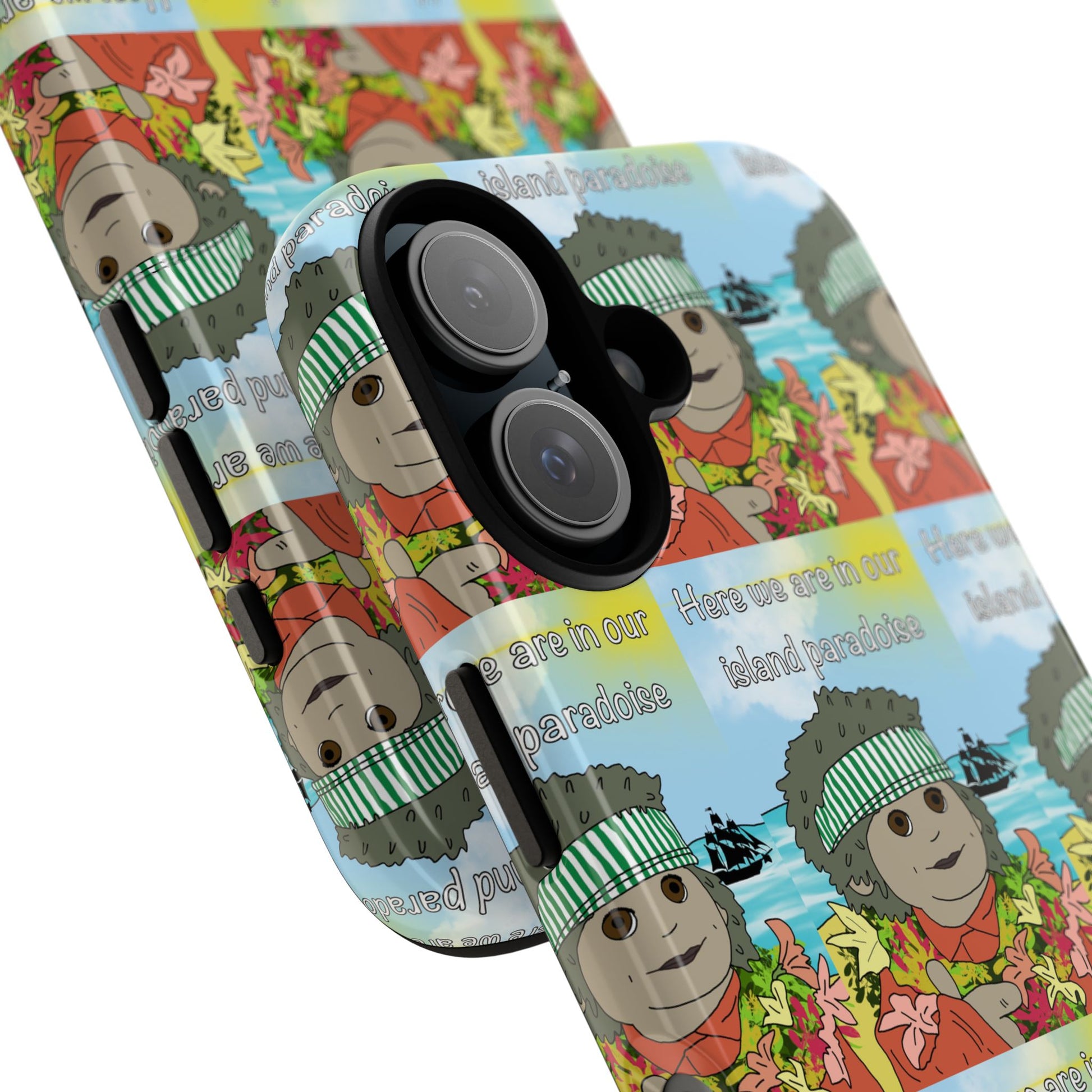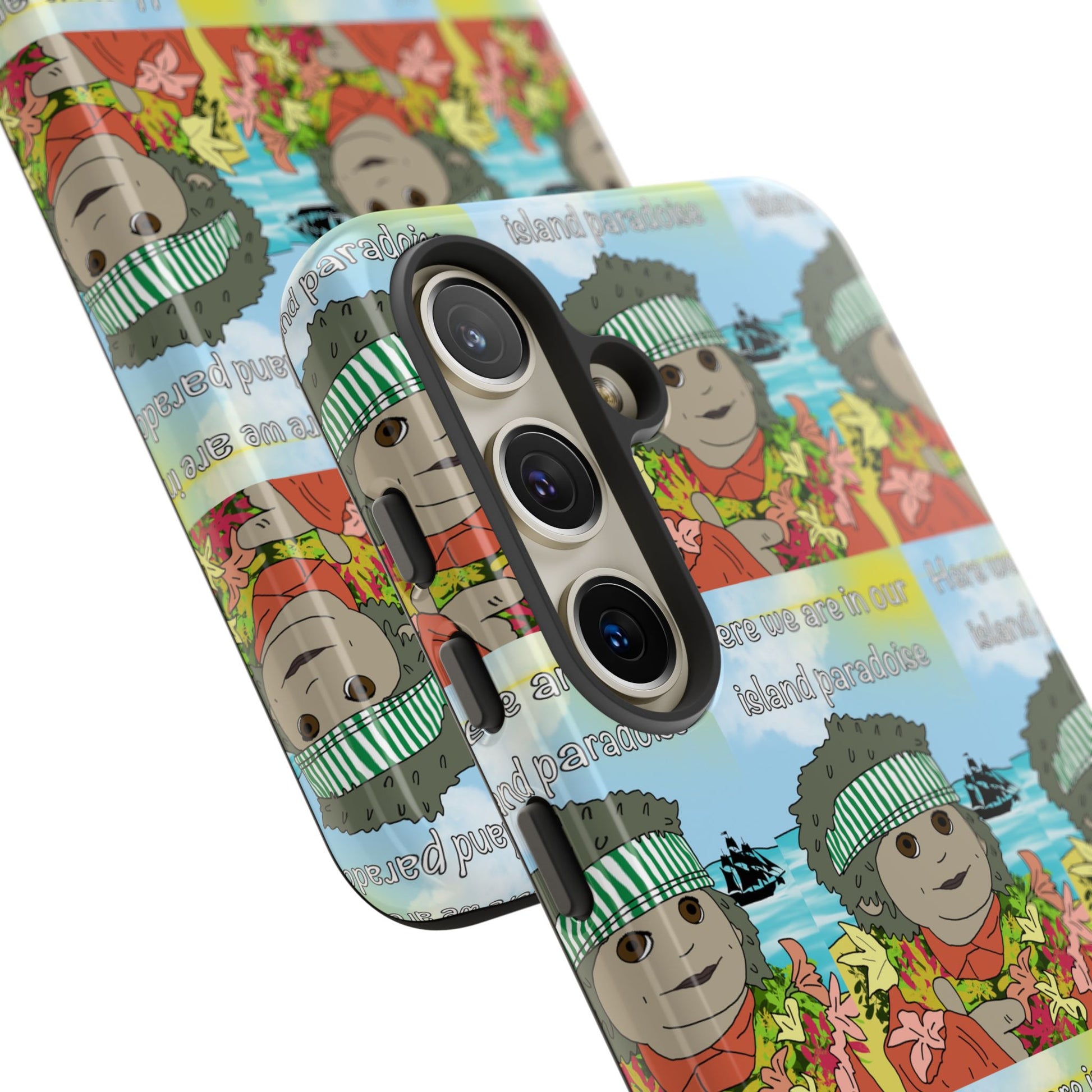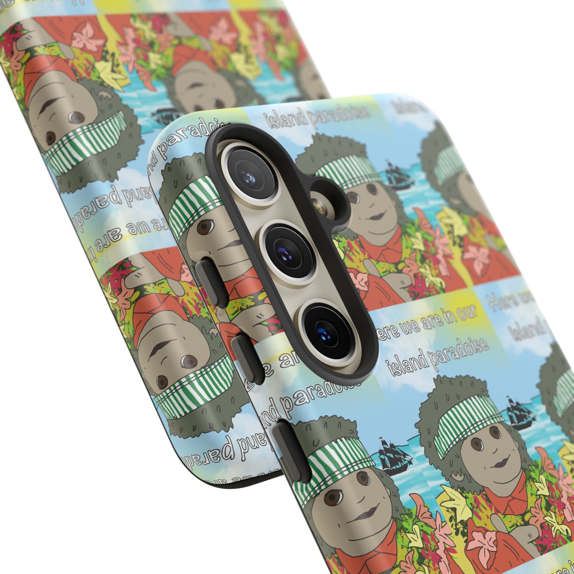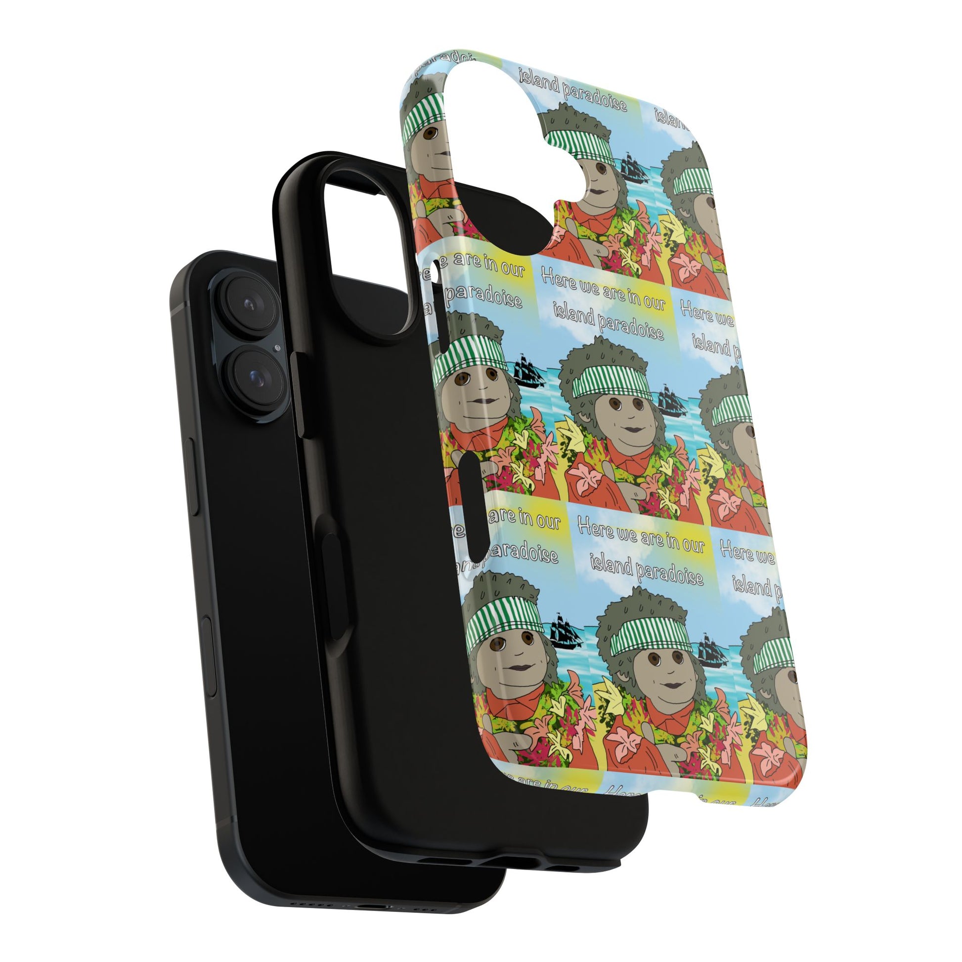 This rugged protective phone case brings playful island vibes to everyday carry. The full-wrap print shows a cheerful character in a knit cap among tropical flowers and ocean scenes — a little escape whenever you pull your phone from your pocket. Built as a dual-layer, impact-resistant shell with a soft TPU liner, the case absorbs shocks while keeping camera and ports accessible. UV-resistant inks keep colors bright outdoors and the glossy or matte finish options let you choose a subtle sheen or smooth, low-glare look. It fits into an active, travel-minded lifestyle: beach days, commutes, or quick weekend getaways feel lighter when your gear carries a sunny, nostalgic scene.