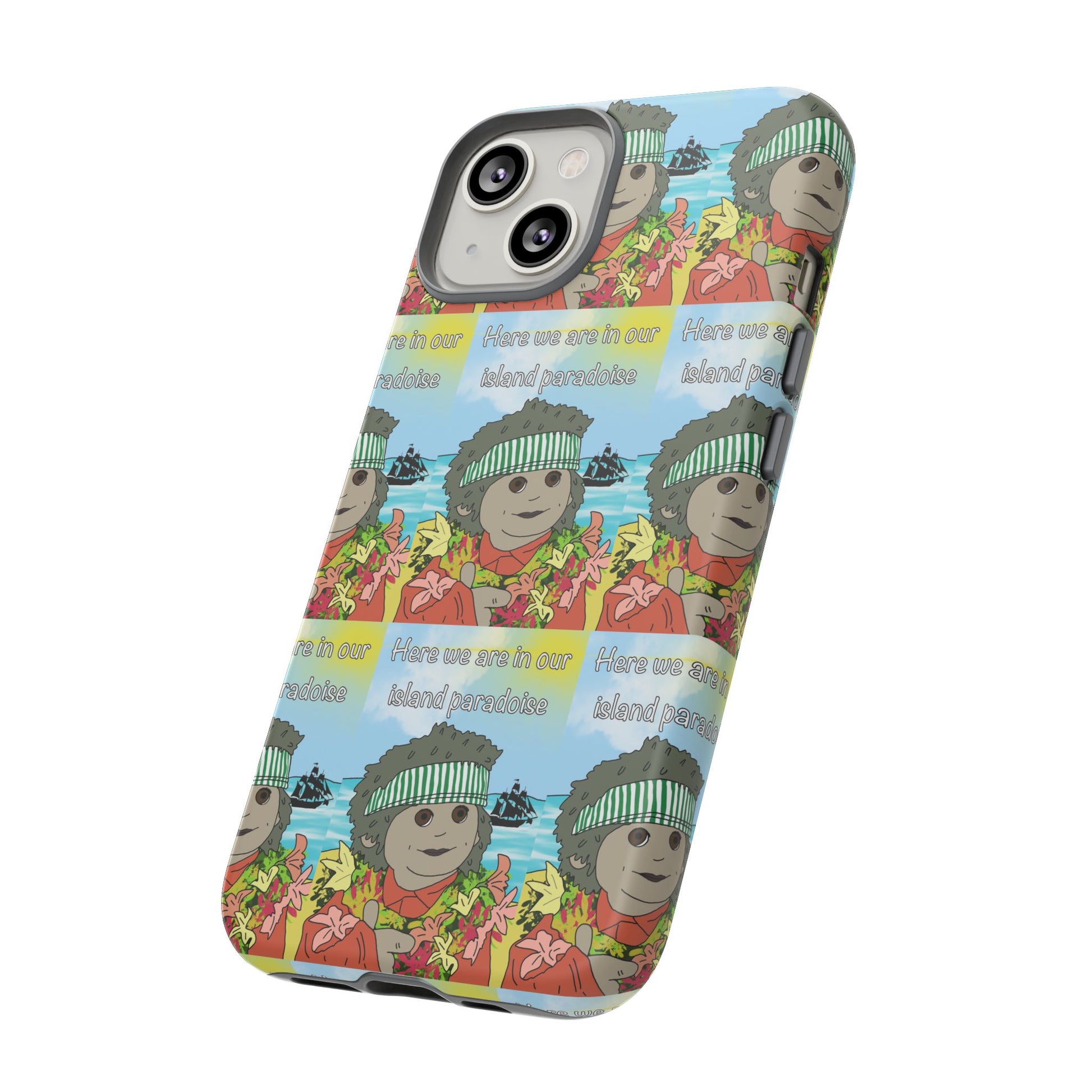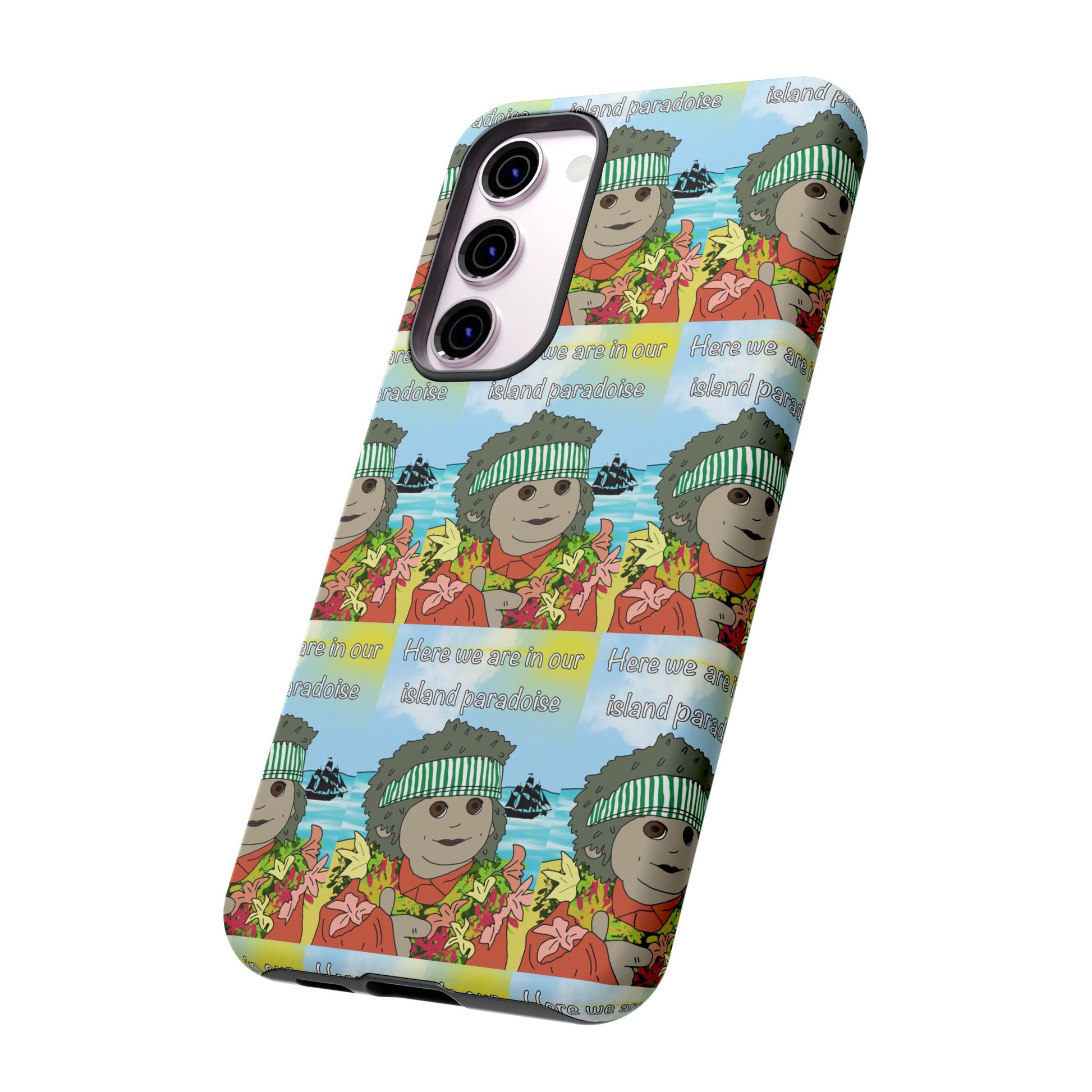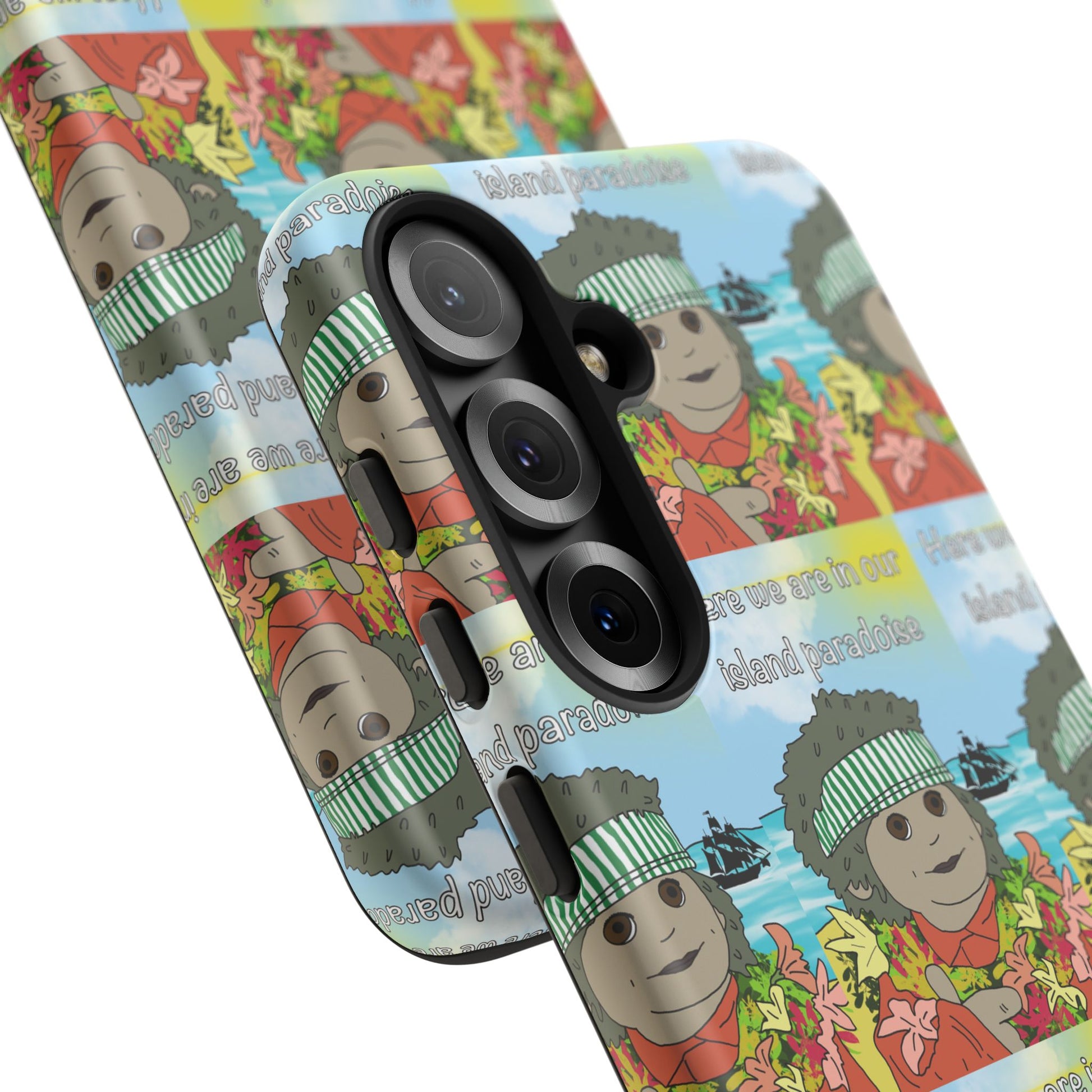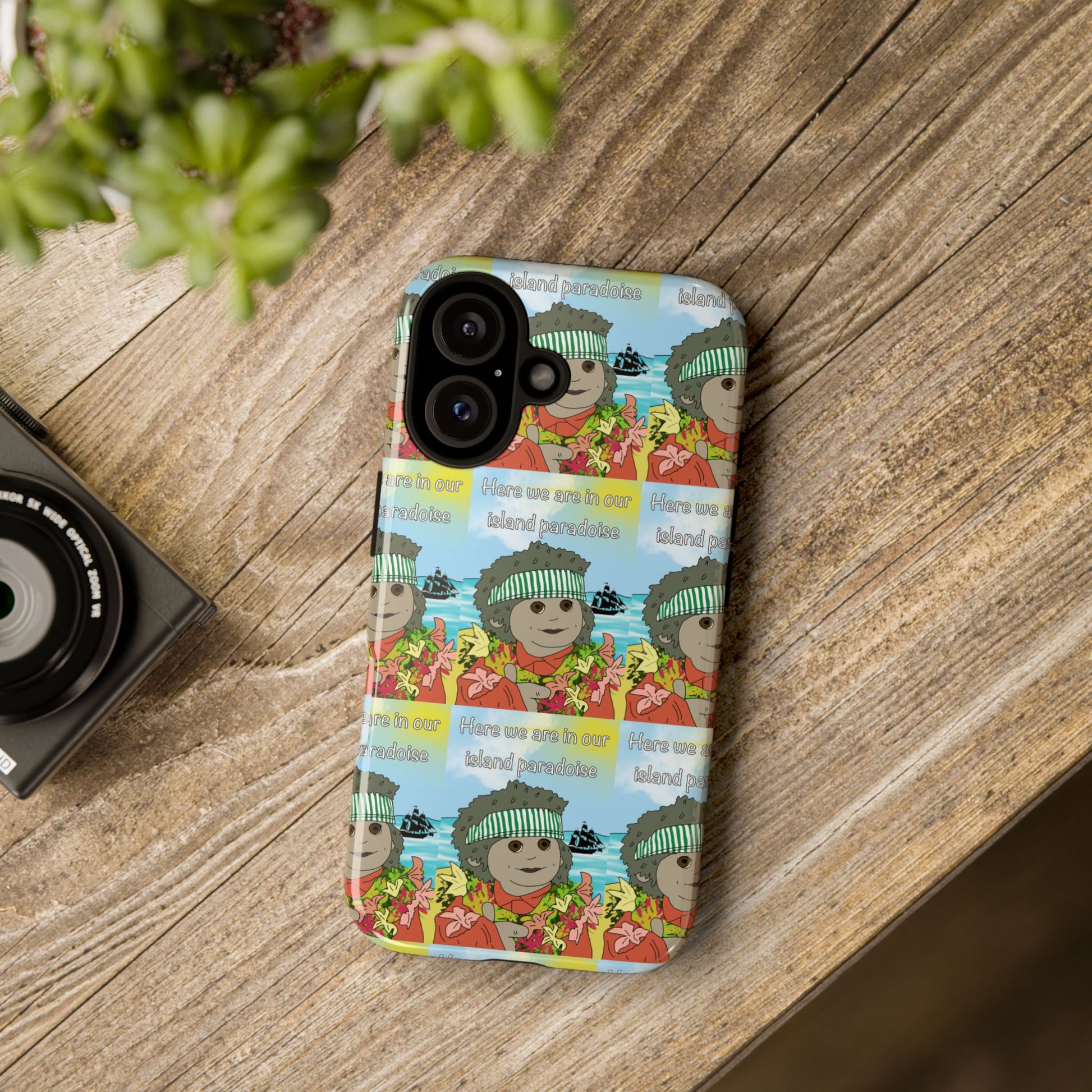This rugged protective phone case brings playful island vibes to everyday carry. The full-wrap print shows a cheerful character in a knit cap among tropical flowers and ocean scenes — a little escape whenever you pull your phone from your pocket. Built as a dual-layer, impact-resistant shell with a soft TPU liner, the case absorbs shocks while keeping camera and ports accessible. UV-resistant inks keep colors bright outdoors and the glossy or matte finish options let you choose a subtle sheen or smooth, low-glare look. It fits into an active, travel-minded lifestyle: beach days, commutes, or quick weekend getaways feel lighter when your gear carries a sunny, nostalgic scene.