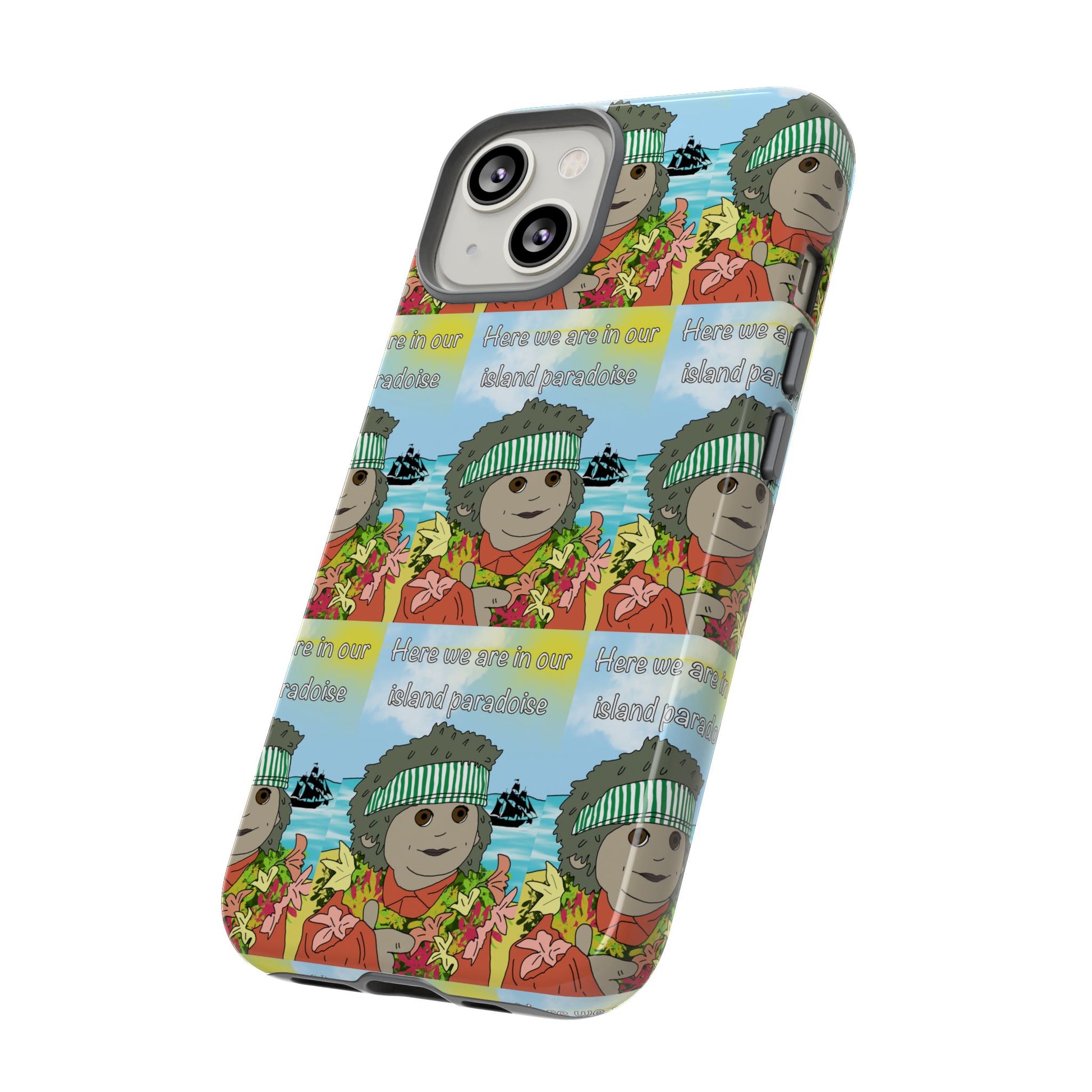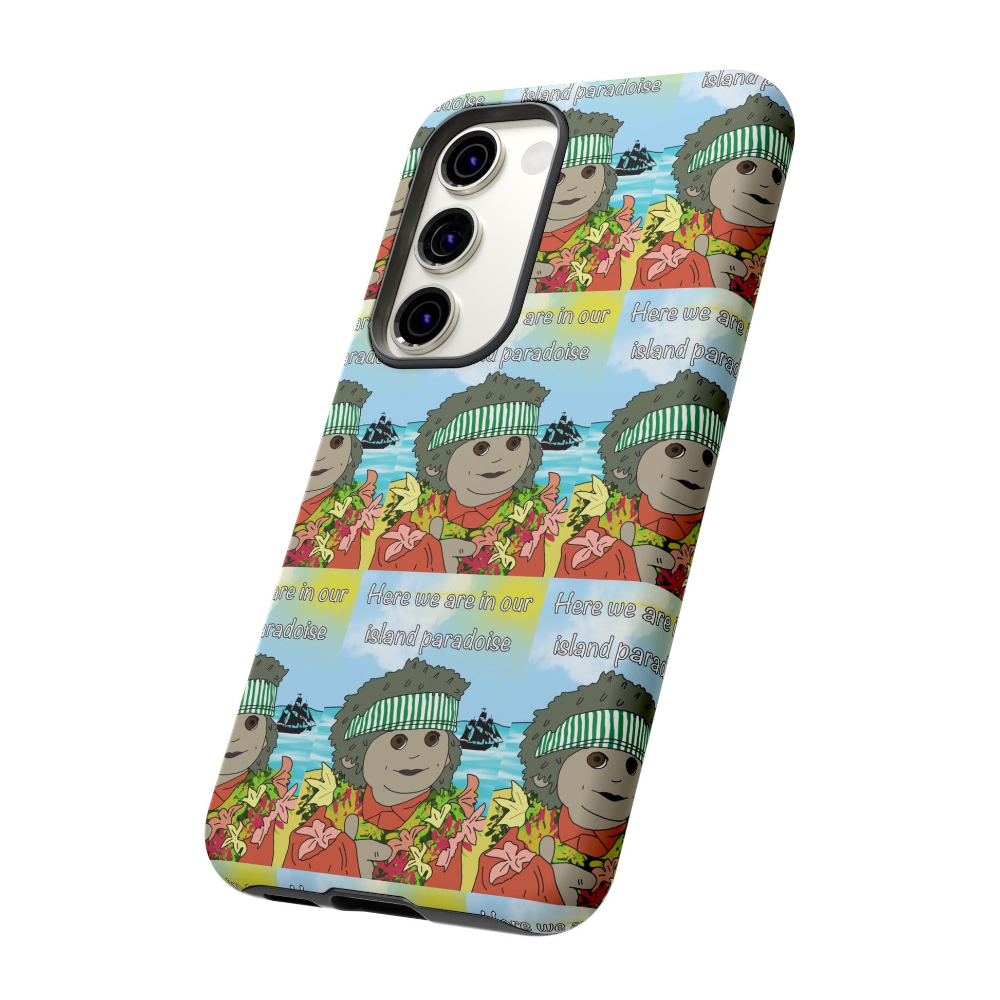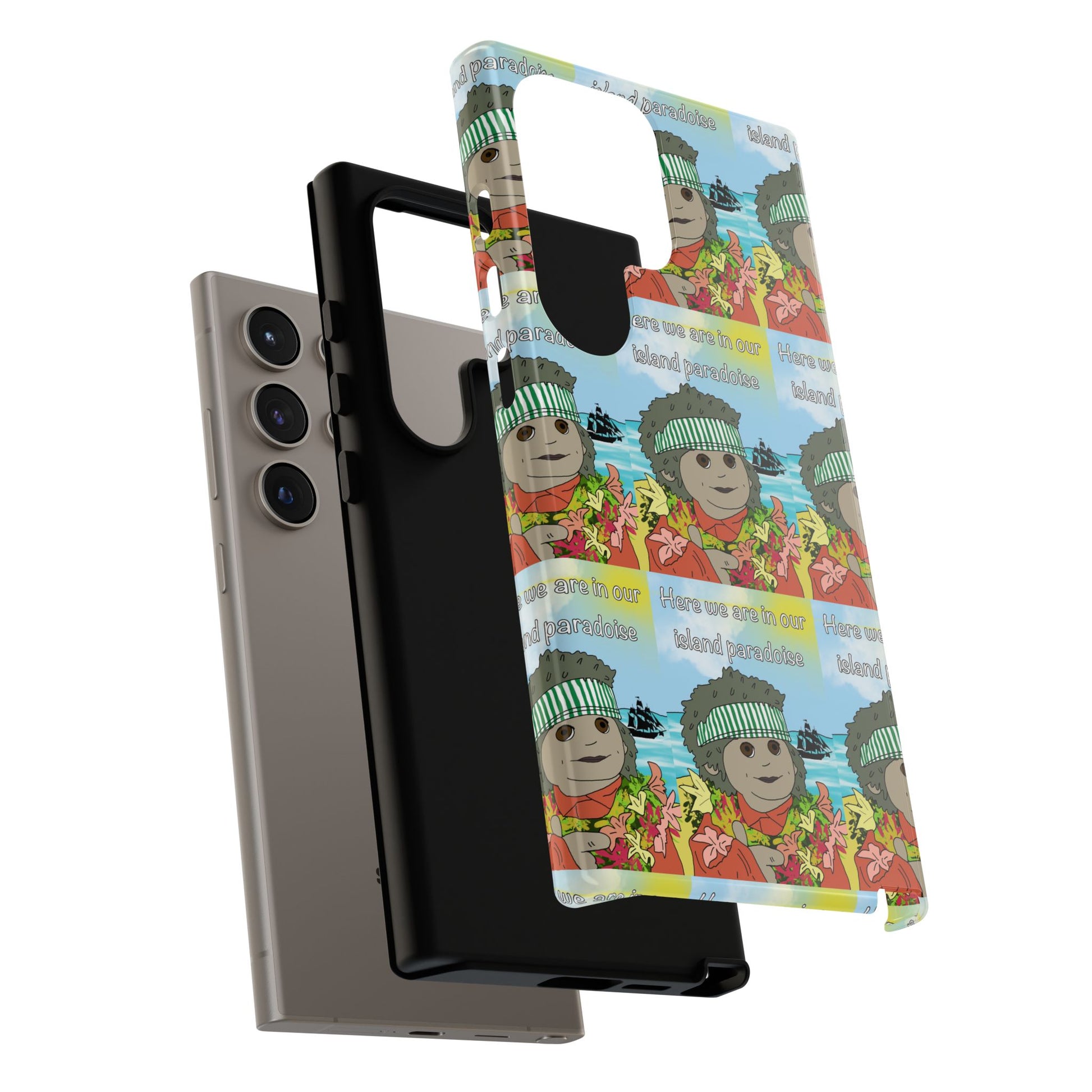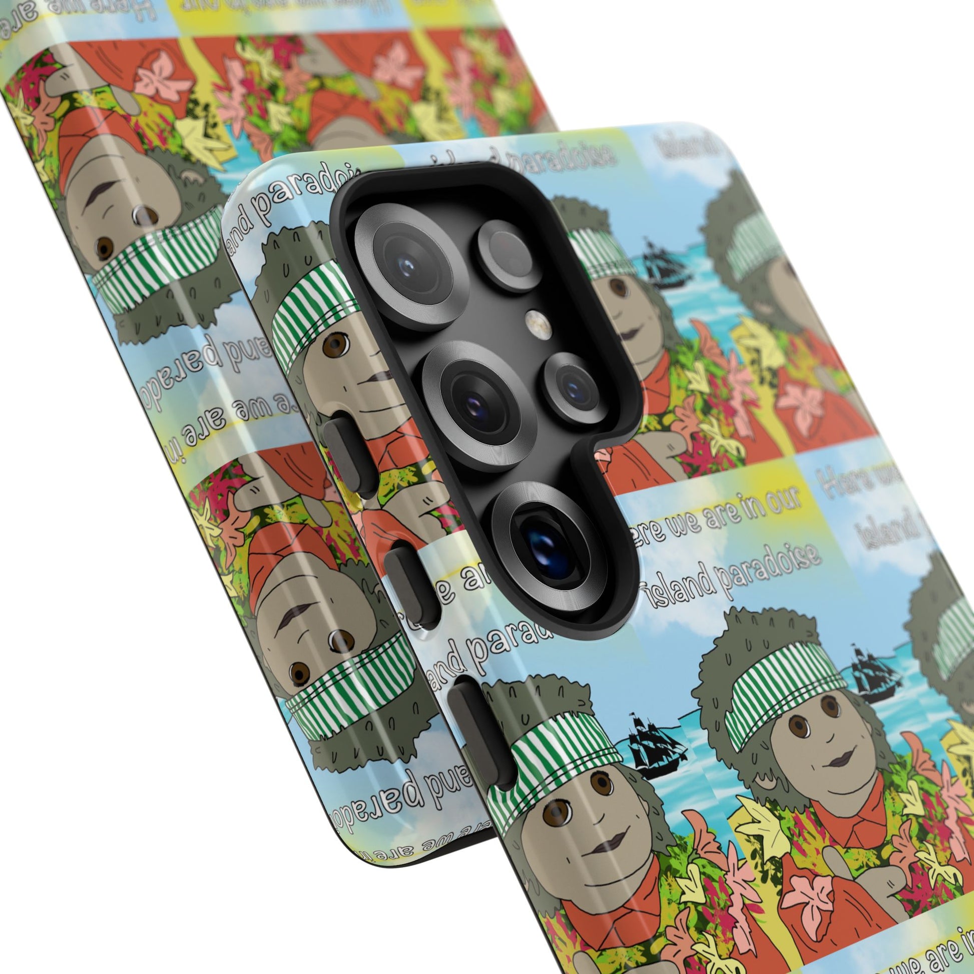 This rugged protective phone case brings playful island vibes to everyday carry. The full-wrap print shows a cheerful character in a knit cap among tropical flowers and ocean scenes — a little escape whenever you pull your phone from your pocket. Built as a dual-layer, impact-resistant shell with a soft TPU liner, the case absorbs shocks while keeping camera and ports accessible. UV-resistant inks keep colors bright outdoors and the glossy or matte finish options let you choose a subtle sheen or smooth, low-glare look. It fits into an active, travel-minded lifestyle: beach days, commutes, or quick weekend getaways feel lighter when your gear carries a sunny, nostalgic scene.