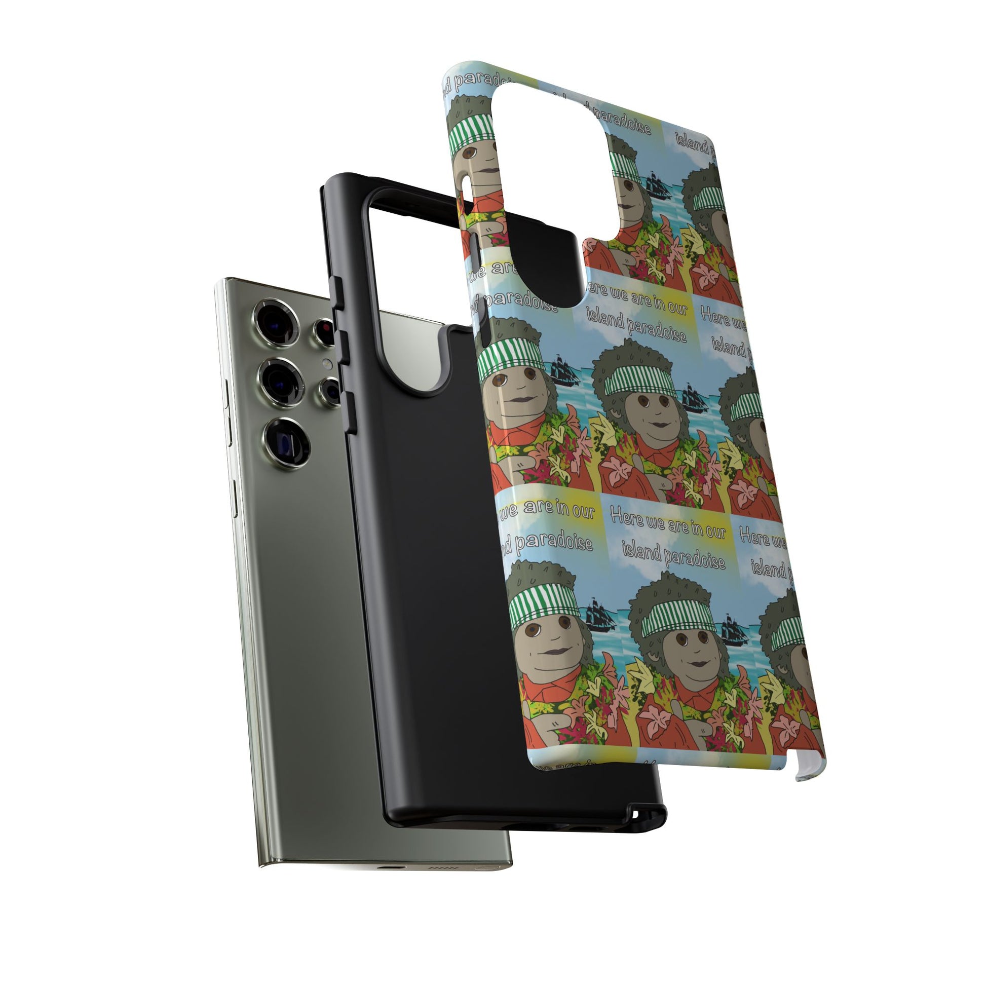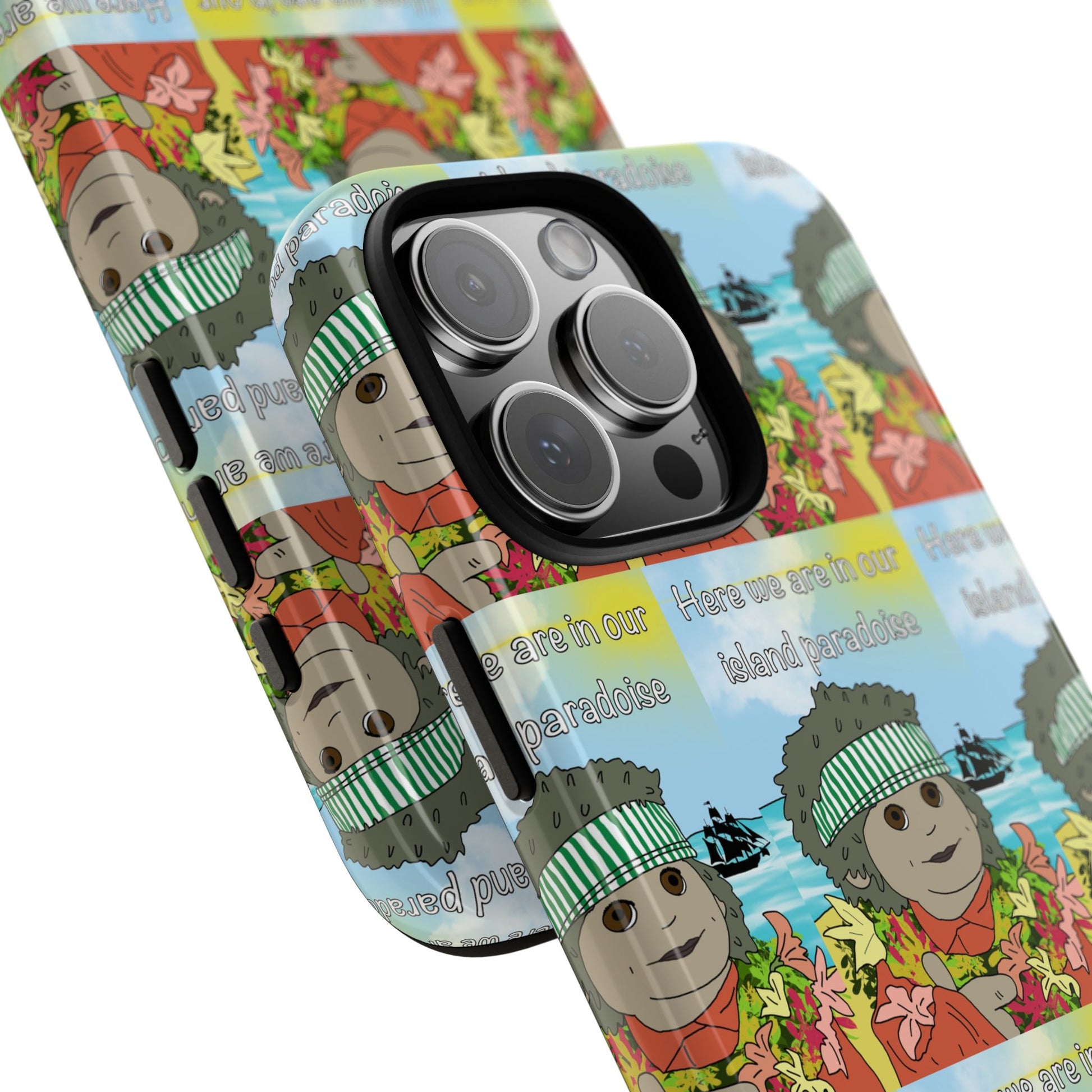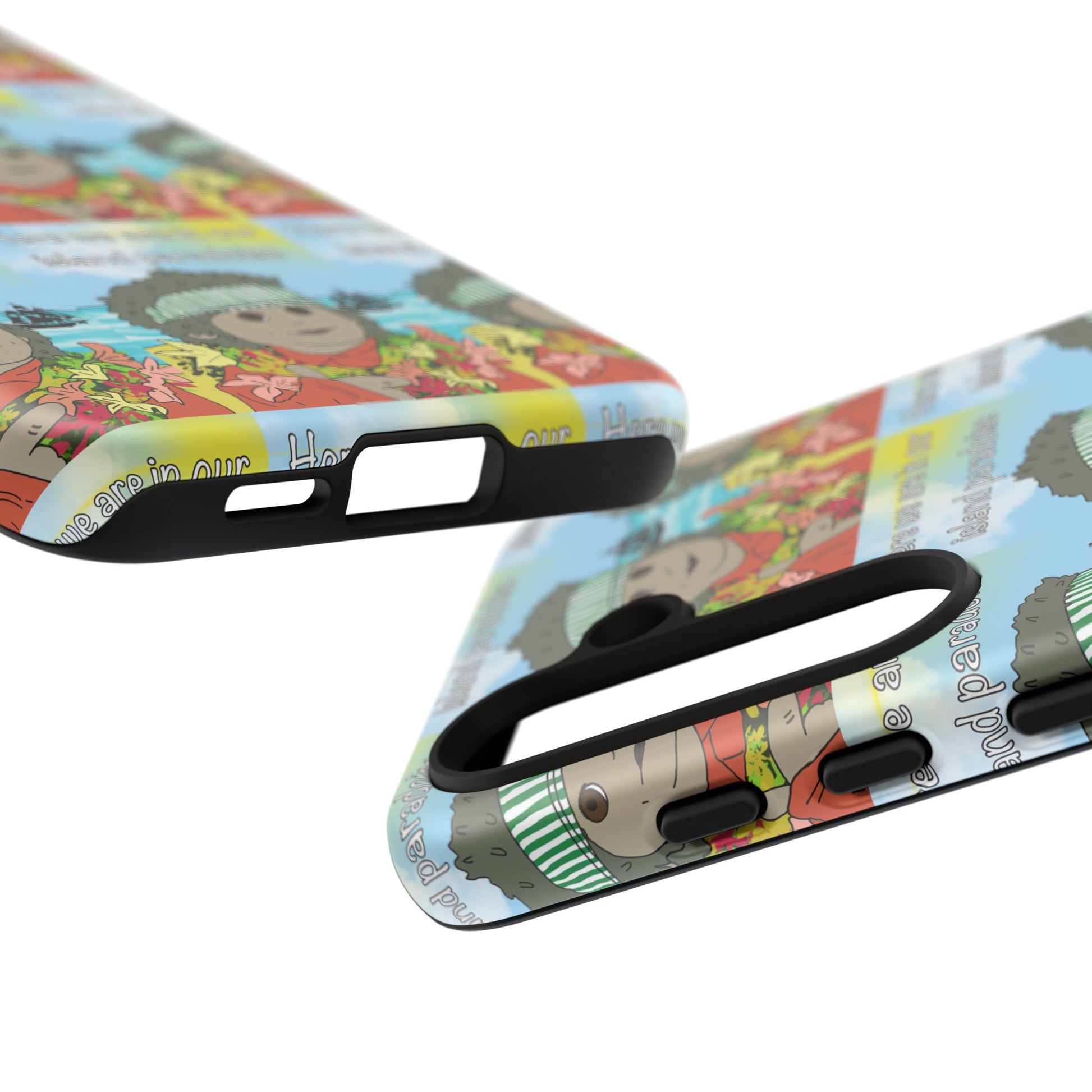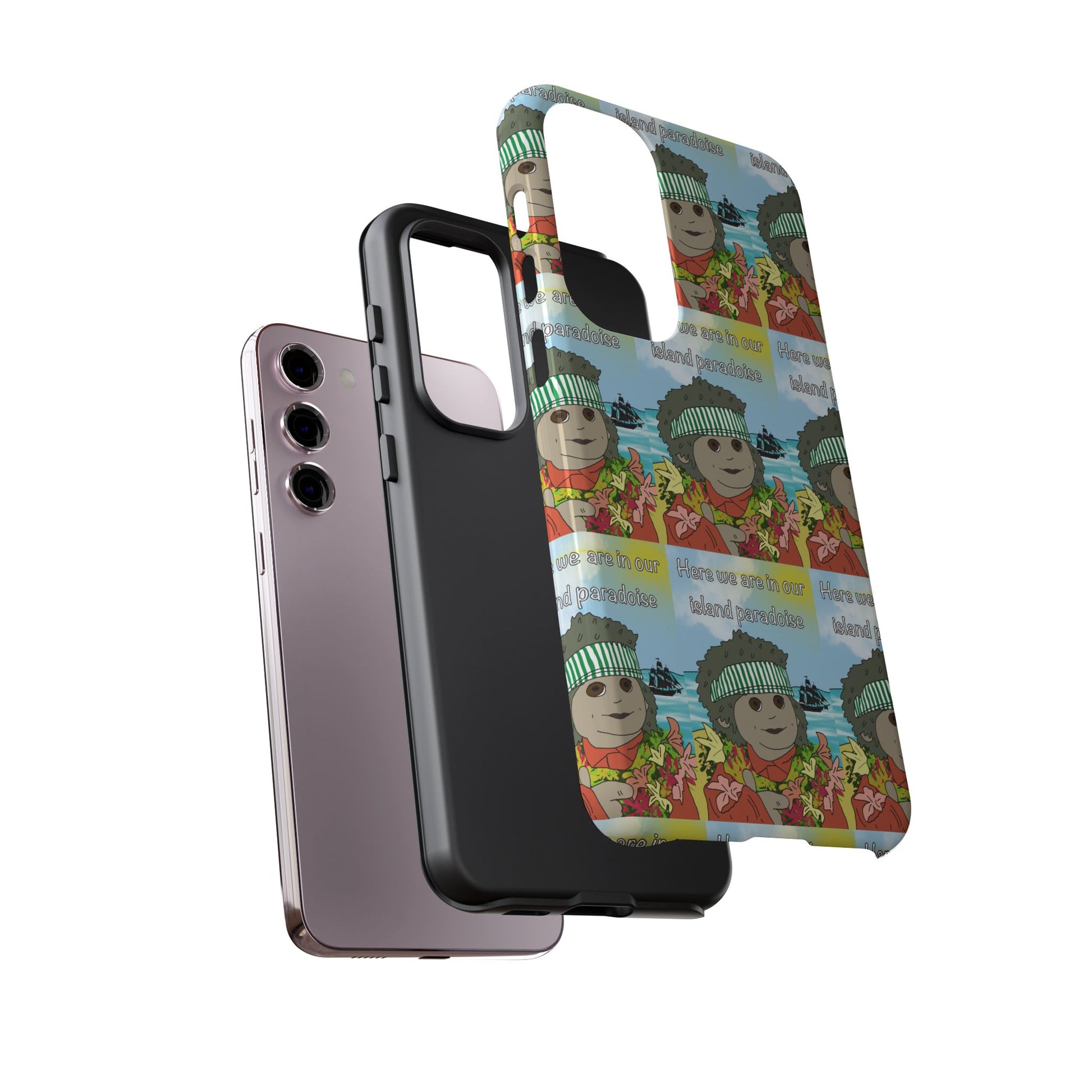 This rugged protective phone case brings playful island vibes to everyday carry. The full-wrap print shows a cheerful character in a knit cap among tropical flowers and ocean scenes — a little escape whenever you pull your phone from your pocket. Built as a dual-layer, impact-resistant shell with a soft TPU liner, the case absorbs shocks while keeping camera and ports accessible. UV-resistant inks keep colors bright outdoors and the glossy or matte finish options let you choose a subtle sheen or smooth, low-glare look. It fits into an active, travel-minded lifestyle: beach days, commutes, or quick weekend getaways feel lighter when your gear carries a sunny, nostalgic scene.