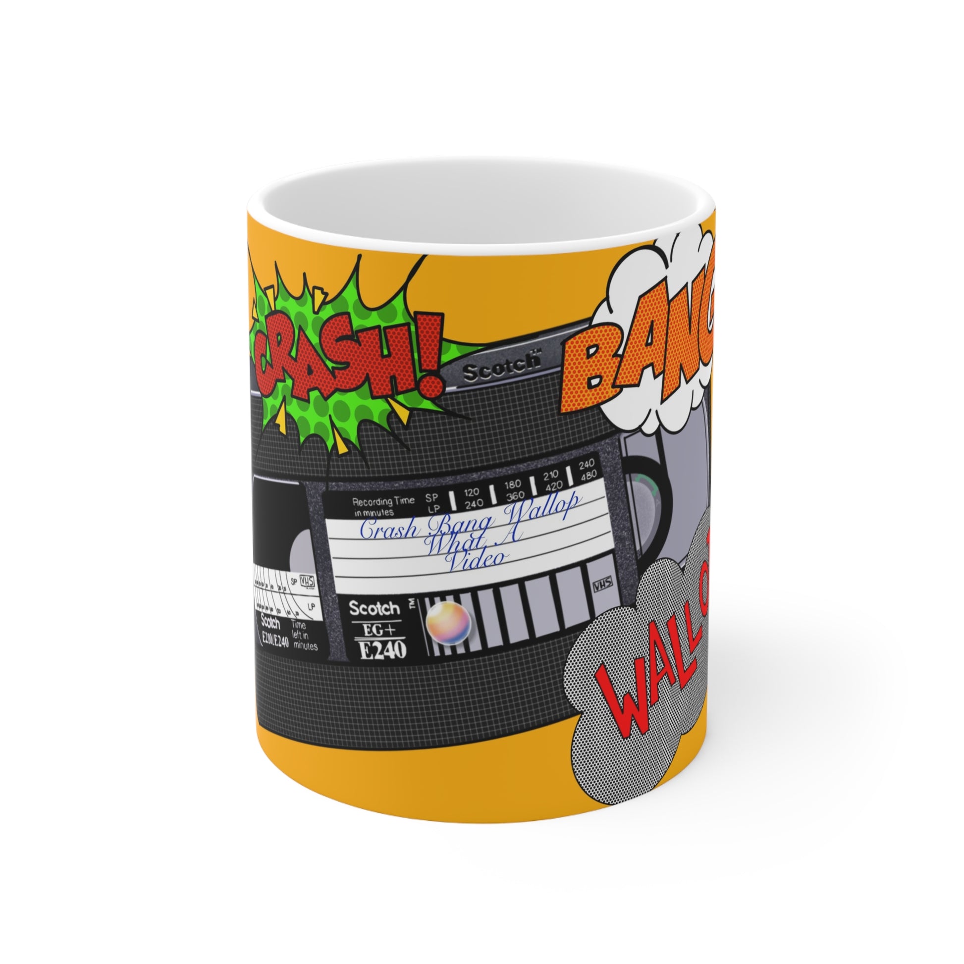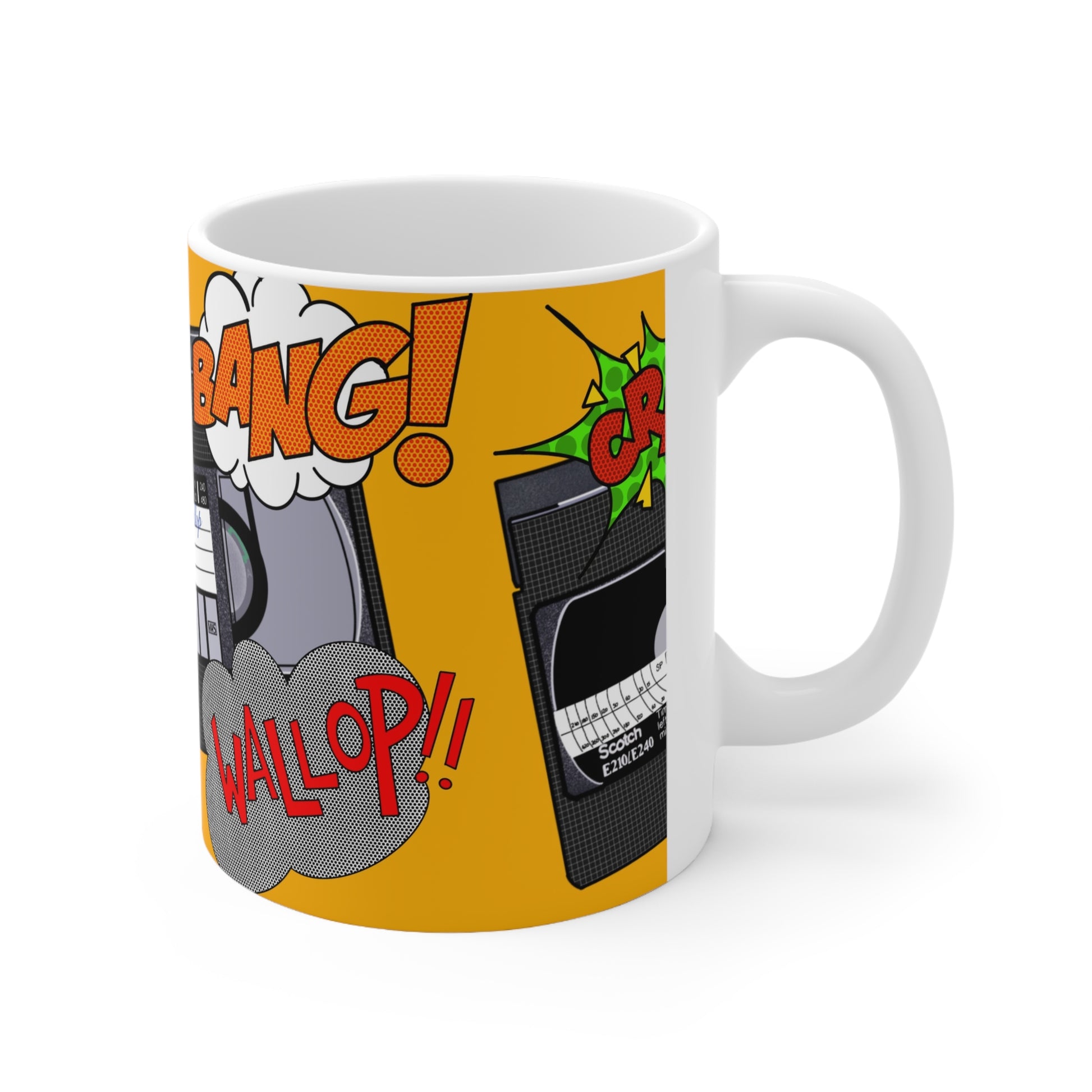 Bright, retro energy in a morning mug. This glossy ceramic cup wraps a pop-art collage of cassette tapes, comic-style sound effects (CRASH!, BANG!, WALLOP!), and vivid oranges and greens that snap awake like a familiar drum fill. Hold it in the C-shaped handle and feel a slice of analog nostalgia meet modern convenience — the kind of cup that turns a slow kitchen into a tiny stage for memories and playlists. Dishwasher- and microwave-safe with a durable ORCA coating, it keeps the colors punchy through daily use. Sized for either a short, strong pour or a generous pour-over, it’s made for people who collect sound, stories, and bold color in their everyday routine.