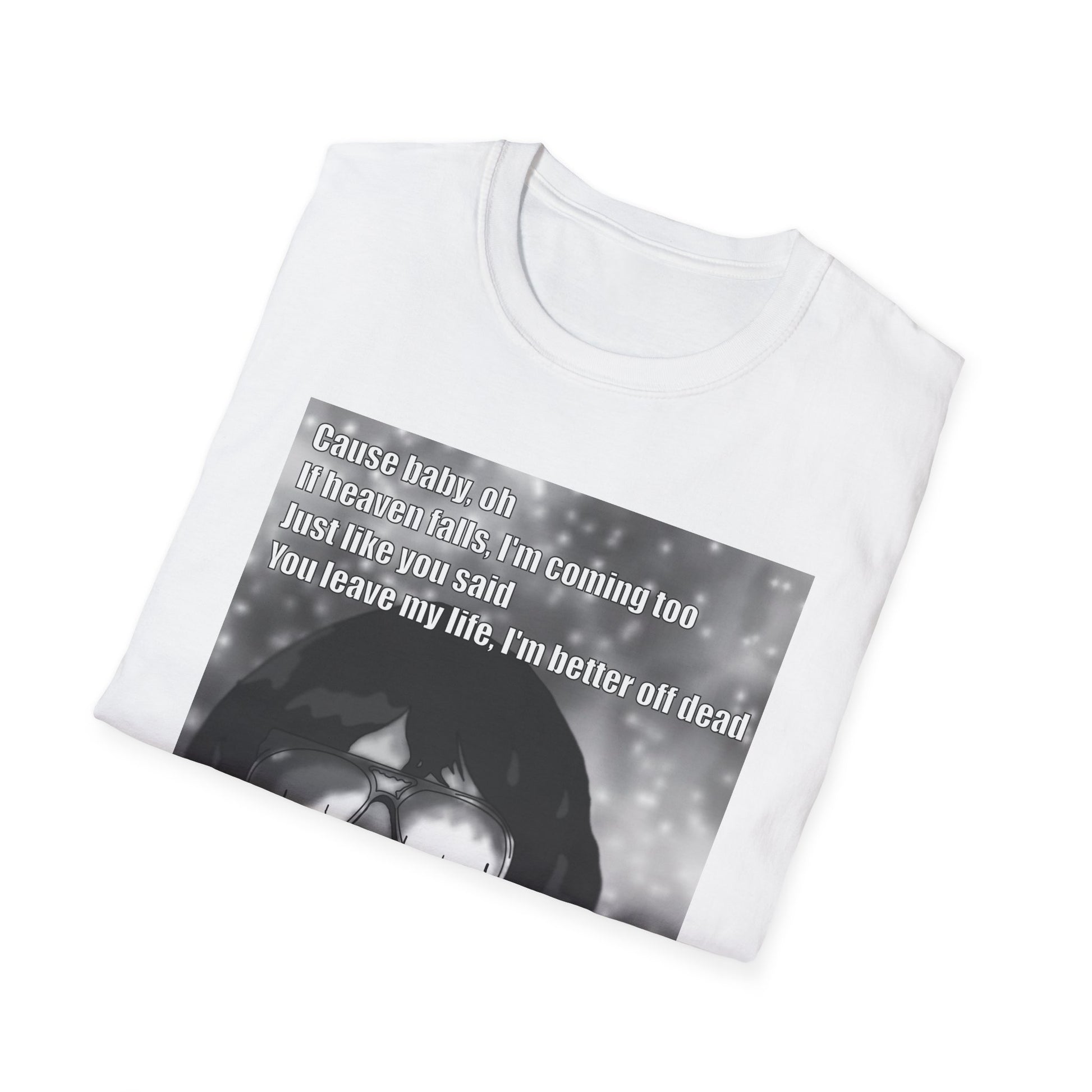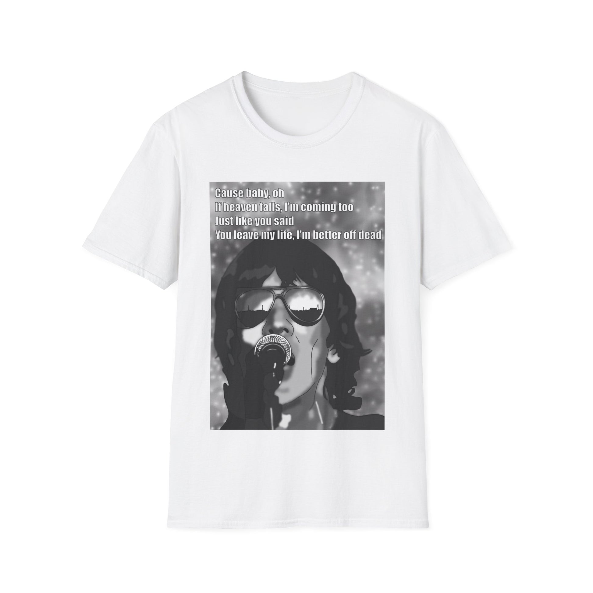 A soft, lightweight tee printed with a raw black-and-white portrait of a singer mid-performance. The design feels like a snapshot from a late-night gig — grainy, honest, and a little nostalgic — with faint lyric text woven into the image. Wear it to signal you’re the kind of person who lives for vinyl crackle, late shows, and the hum of a crowded room. The shirt drapes easily, breathes in warm weather, and layers smoothly under a worn denim jacket or a flannel for cooler nights. It’s for those who collect songs like souvenirs and want their clothing to carry that story without shouting.