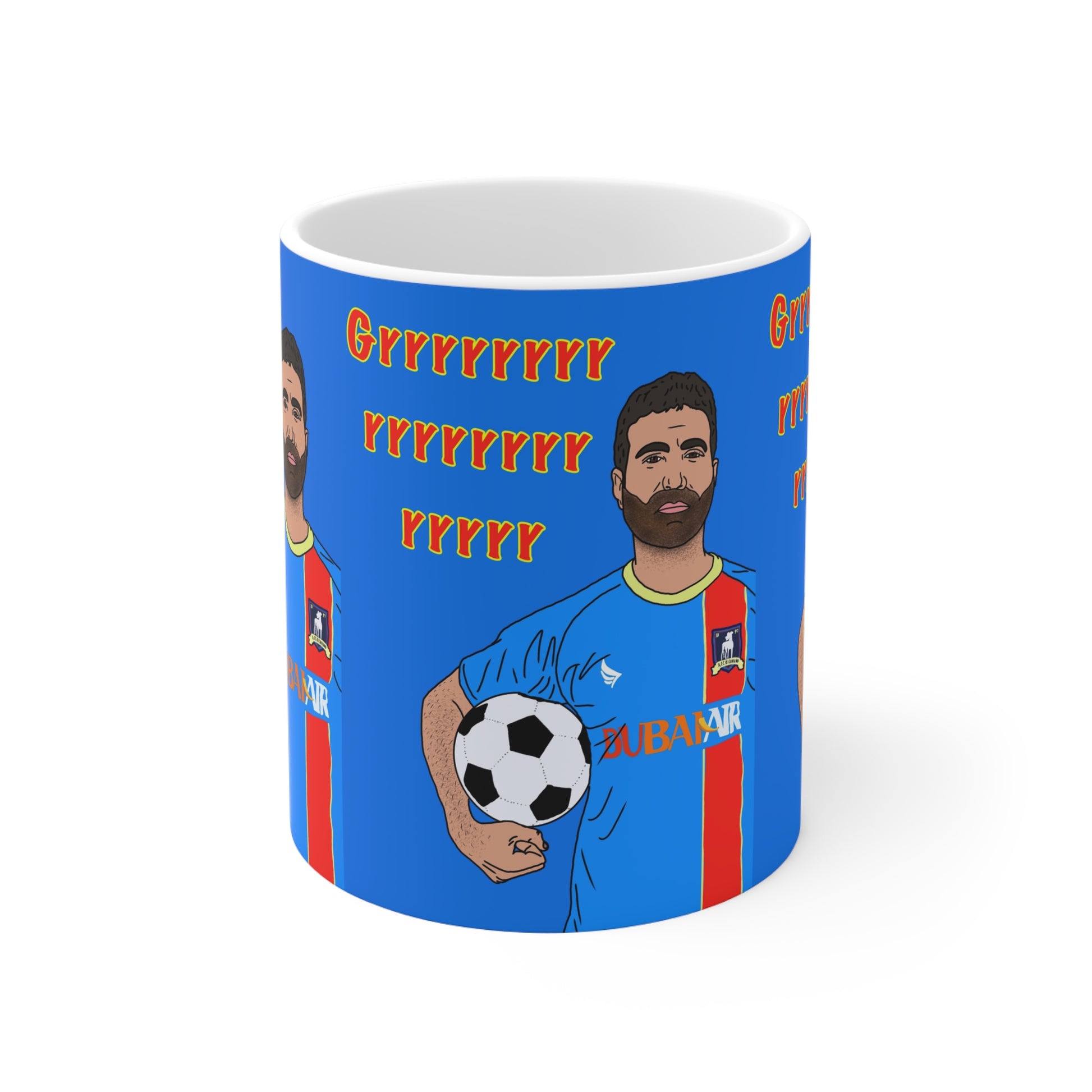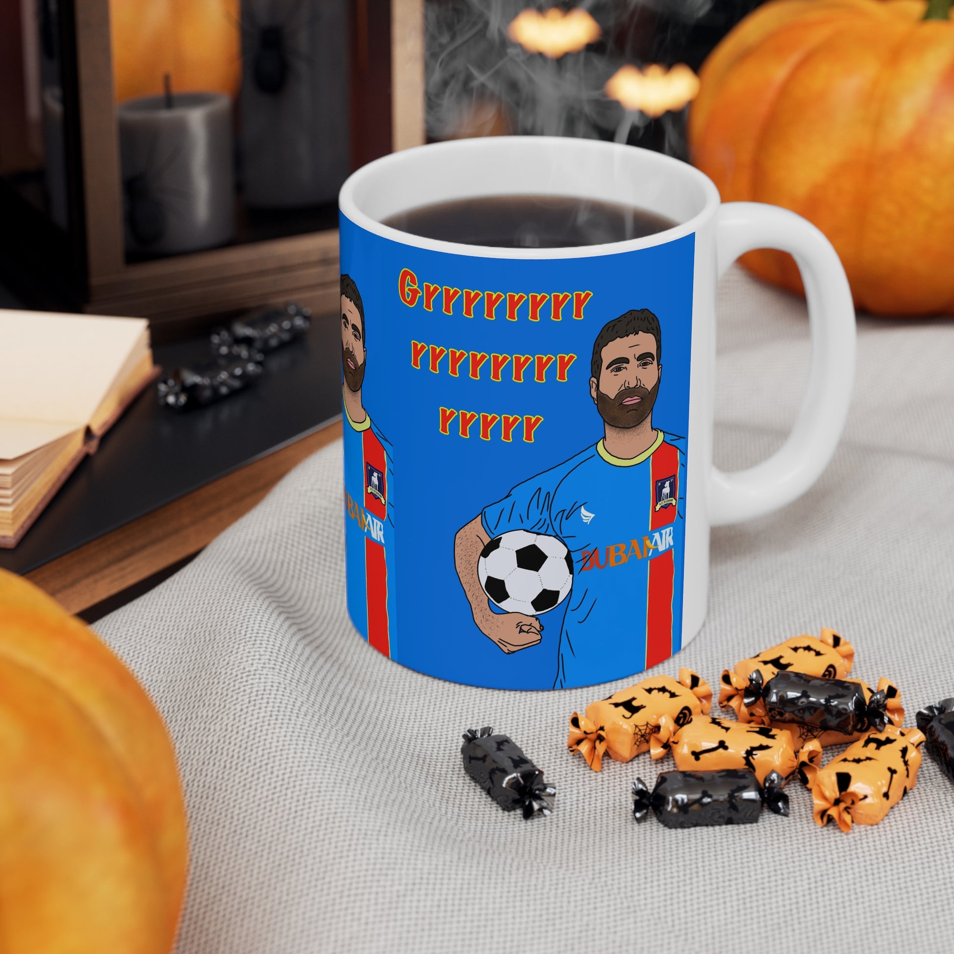 Ted Lasso Soccer Fan Mug — IllustratedRoy Kent with Ball, 'Grrrrrrrr' Graphic Coffee Cup