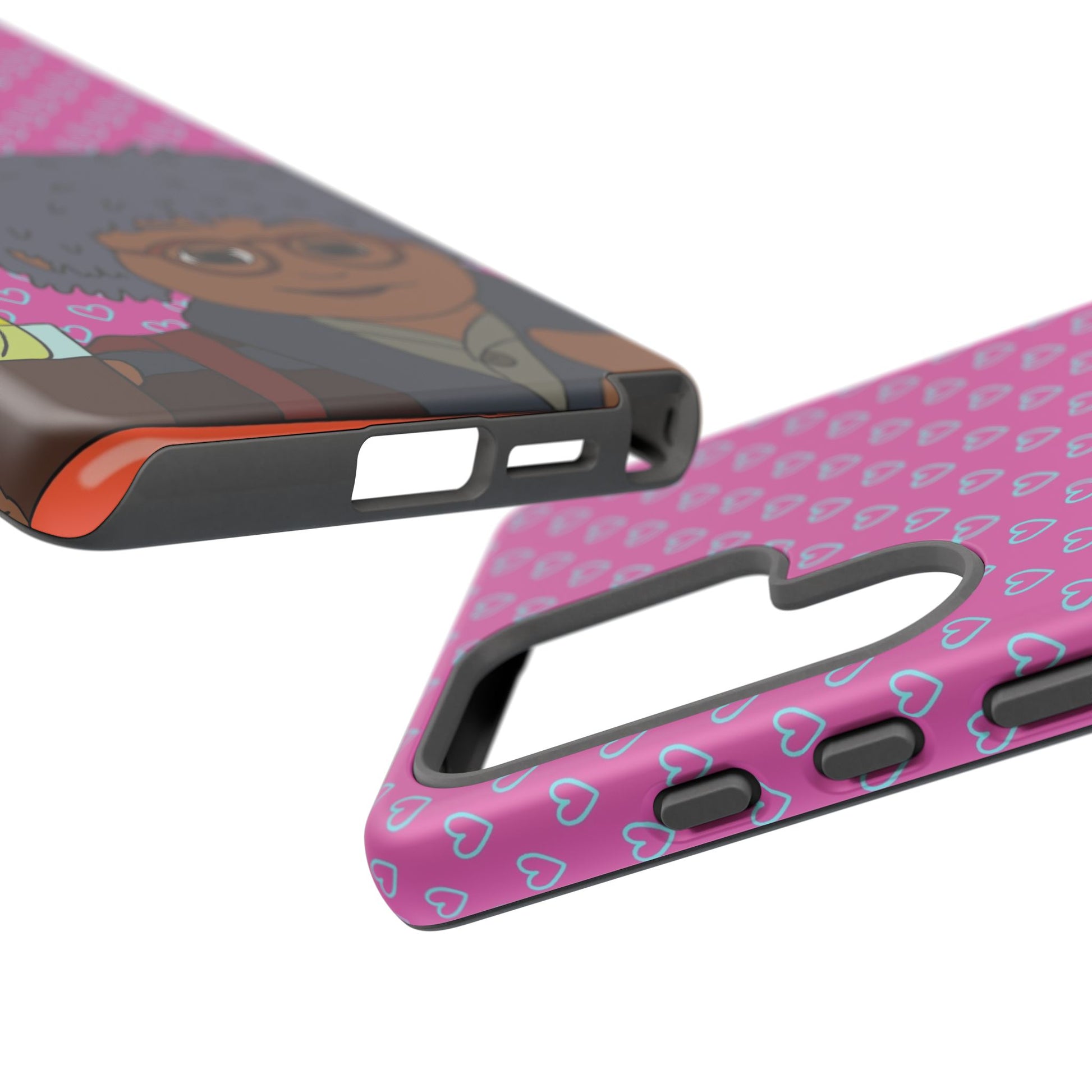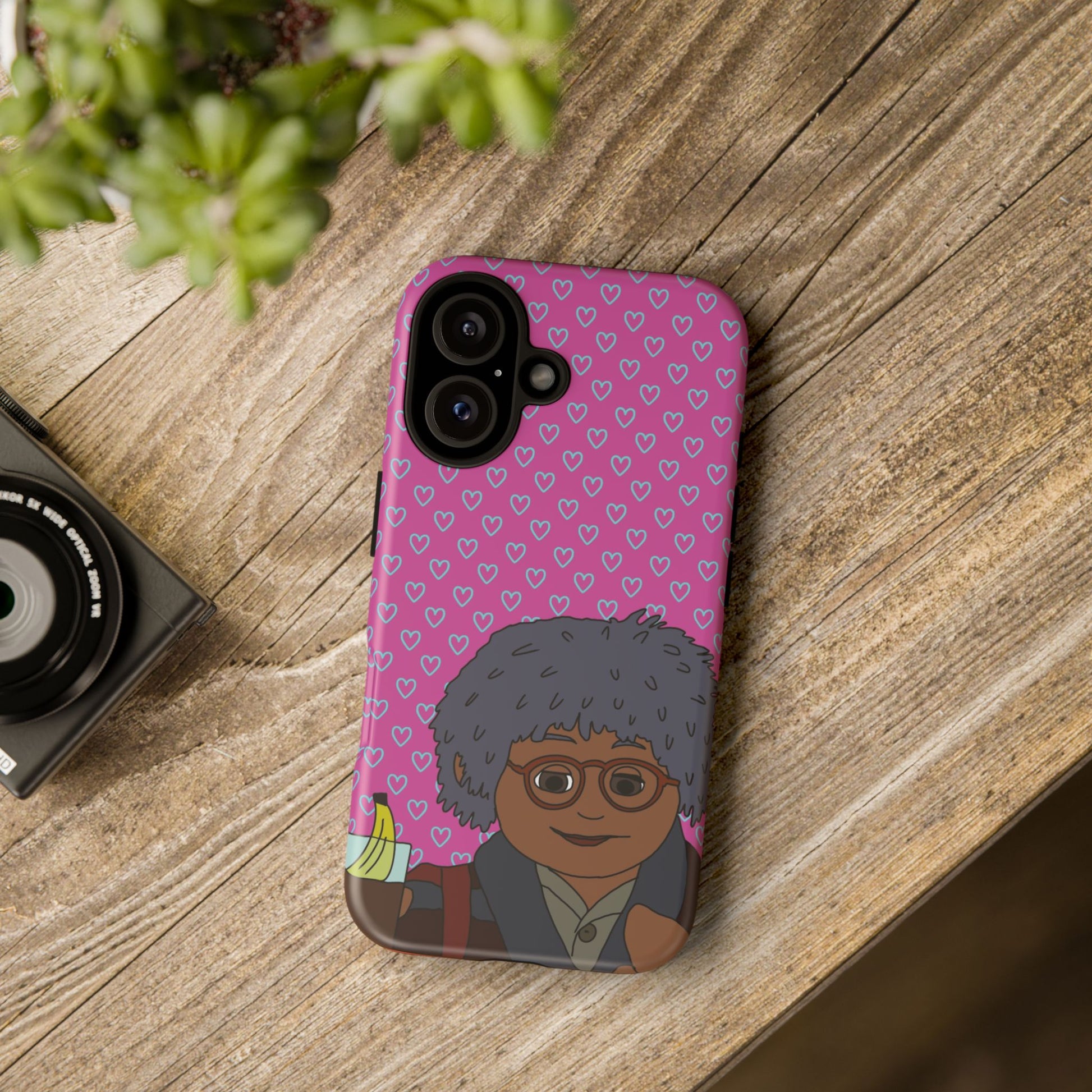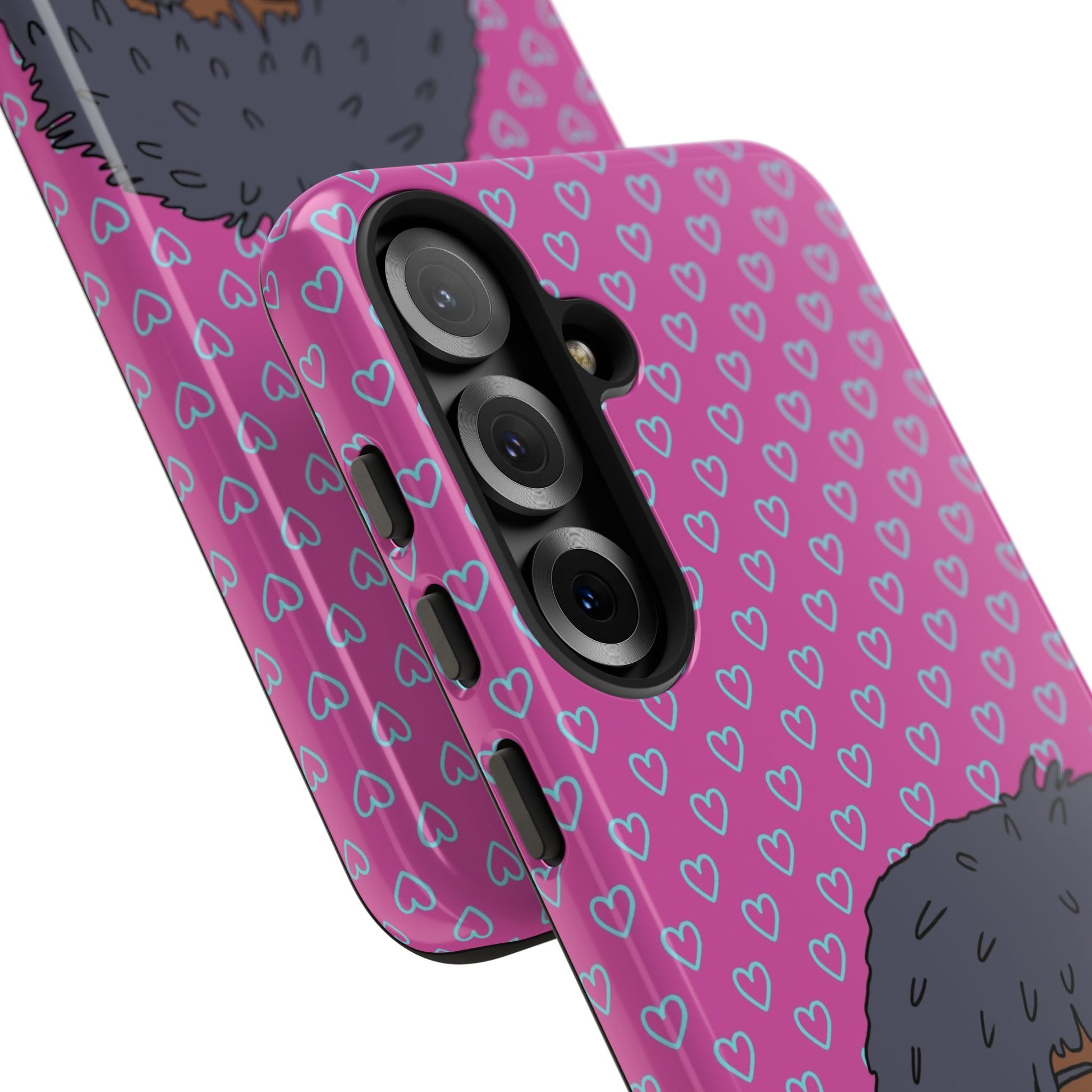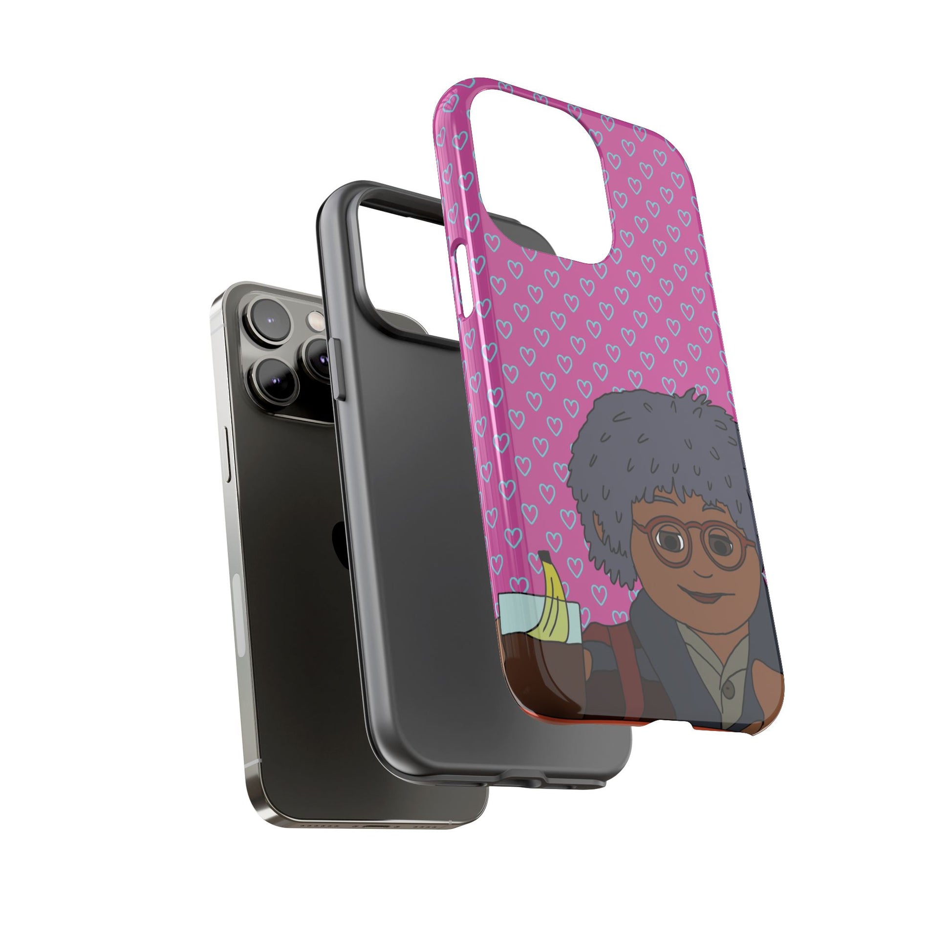This sturdy protective case brings playful warmth to everyday life. A bright pink field peppered with tiny hearts wraps the phone, while a cozy, soft-edged character peeks up from the bottom—glasses, gray hair, and a gentle smile that suggests slow mornings, strong coffee, and quiet humor. The dual-layer build cushions against drops; the silicone liner and impact-resistant shell keep the edges intact while the glossy or matte finish preserves the cheerful art. Slip it on, and your phone becomes an instant reminder to carry a little comfort and personality through busy days and long commutes.