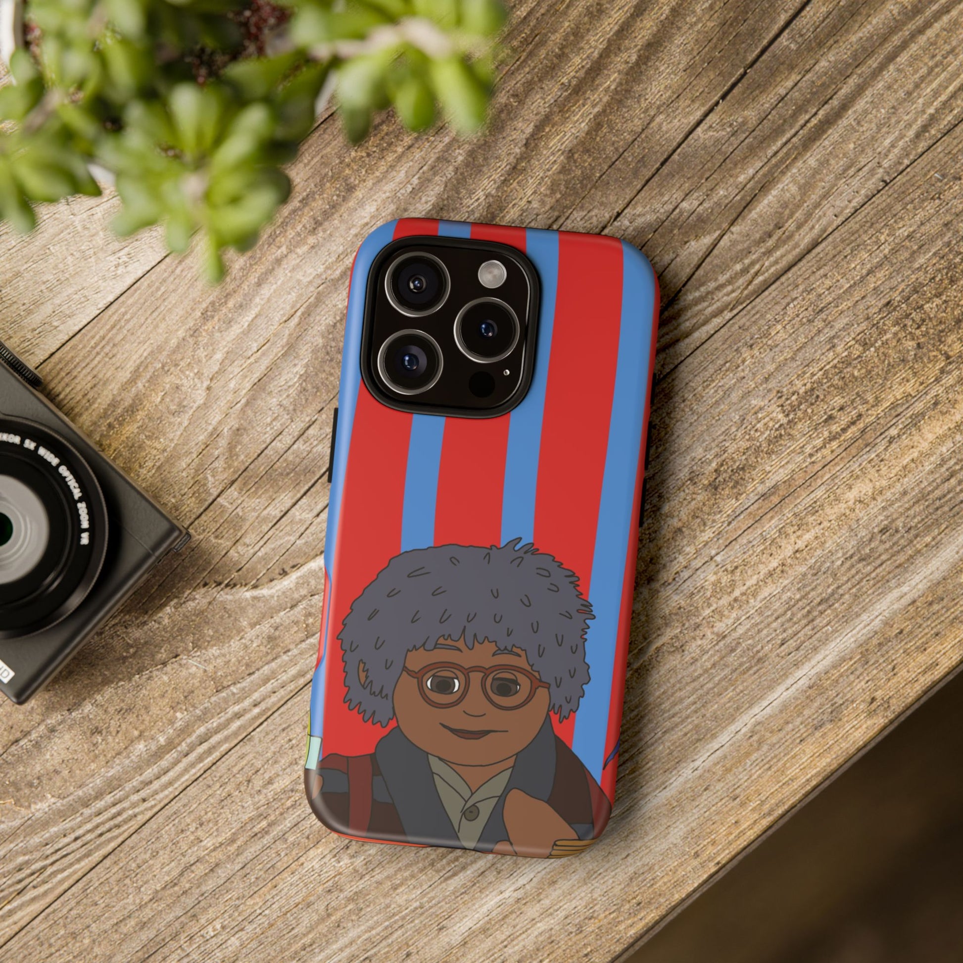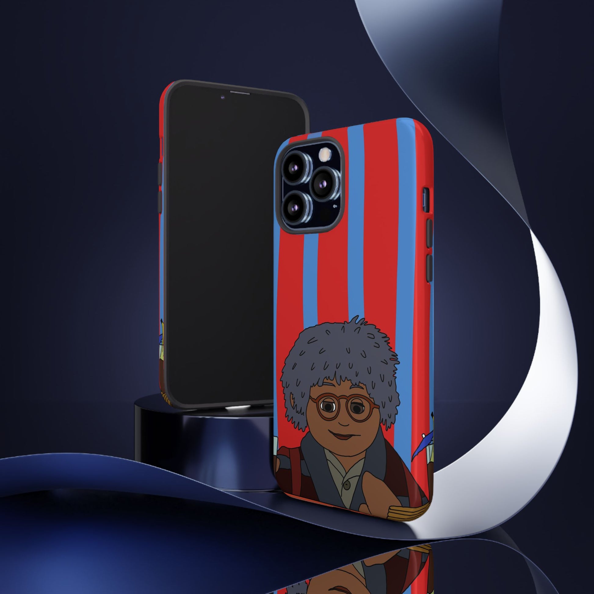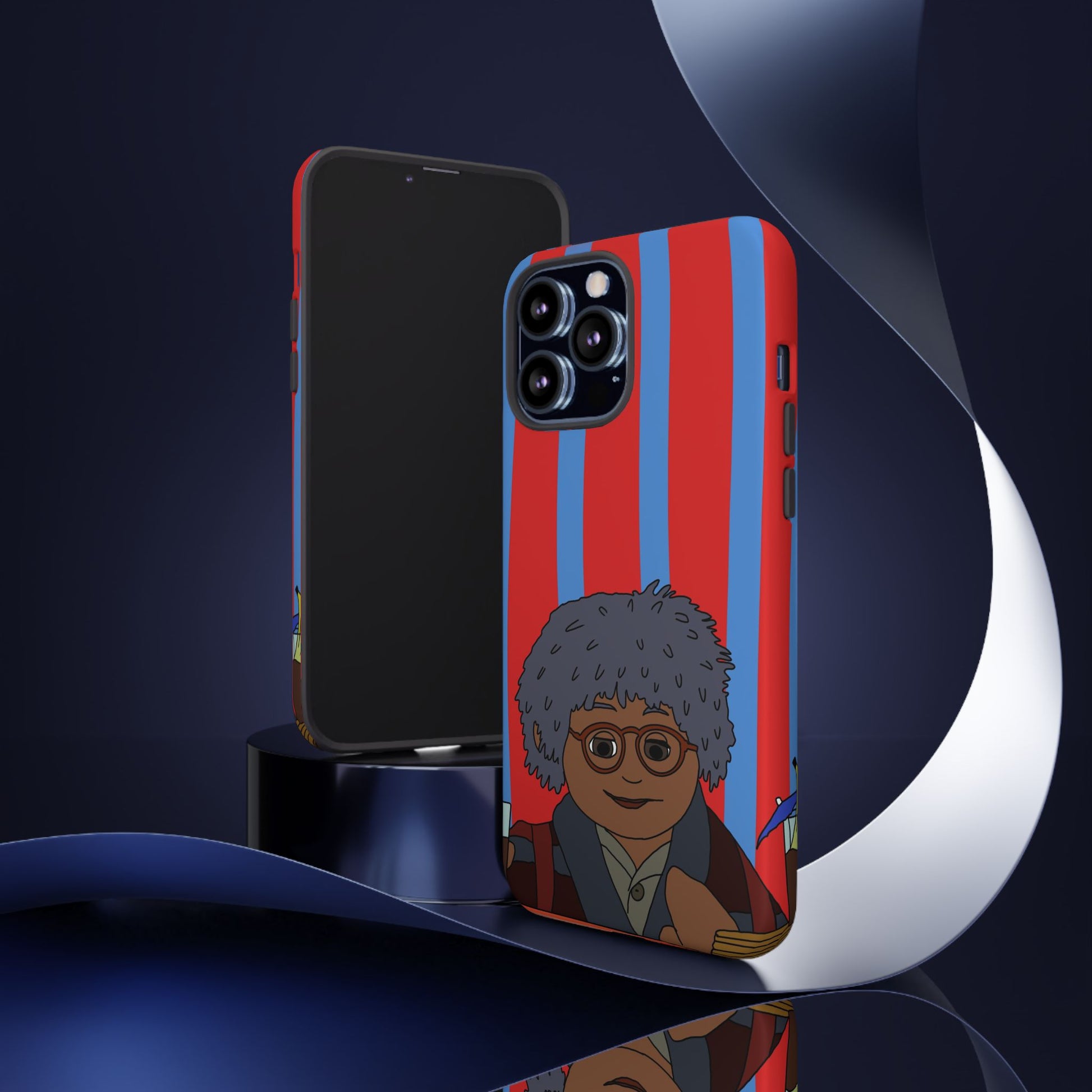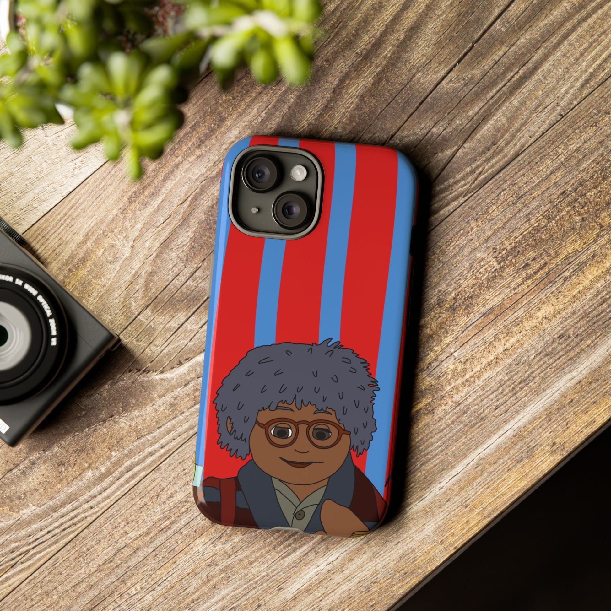 This protective phone case brings playful color and character to everyday life while keeping devices safe. The bold red-and-blue stripe background frames a warm, cartoon-style character—glasses, gray curly hair, and a welcoming smile—that gives the case a friendly, storybook vibe. Built as a dual-layer shell with a rigid polycarbonate exterior and a cushioned TPU silicone liner, the case absorbs shocks and resists drops without adding bulk. A glossy or matte finish keeps the artwork vivid, while UV protection helps maintain long-term color integrity. Thoughtful cutouts keep ports open and the case supports wireless charging for convenience. It’s a durable, cheerful cover for adults who want personality and protection in one.