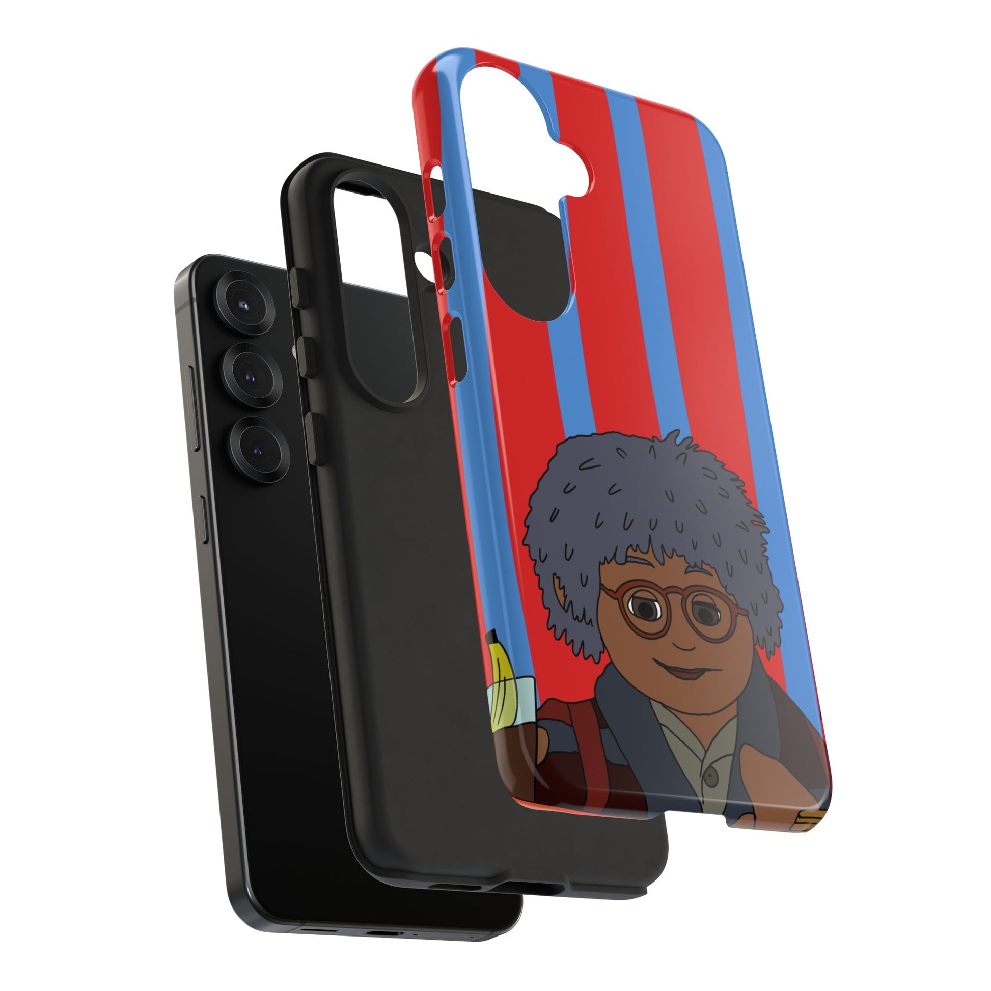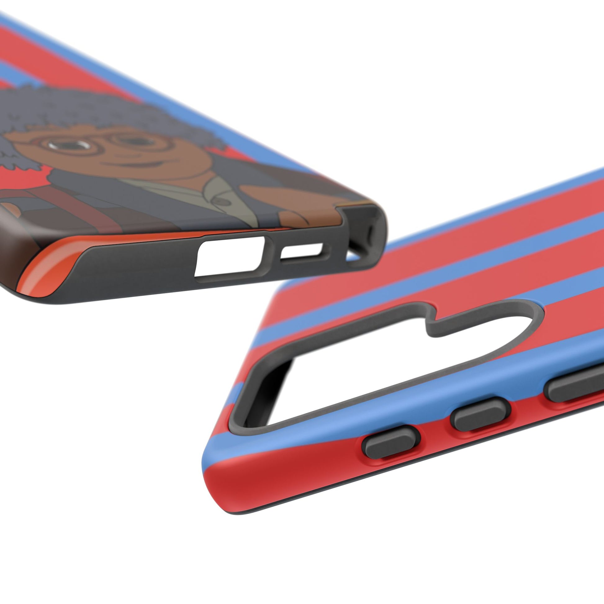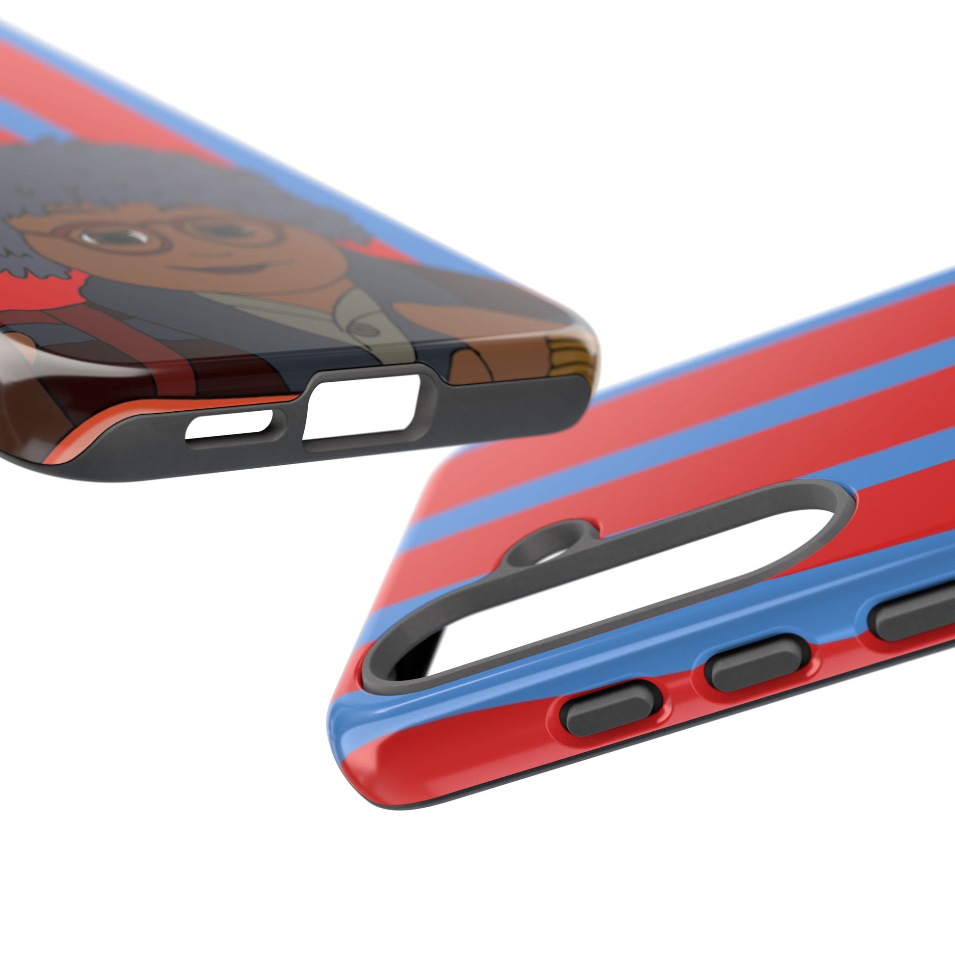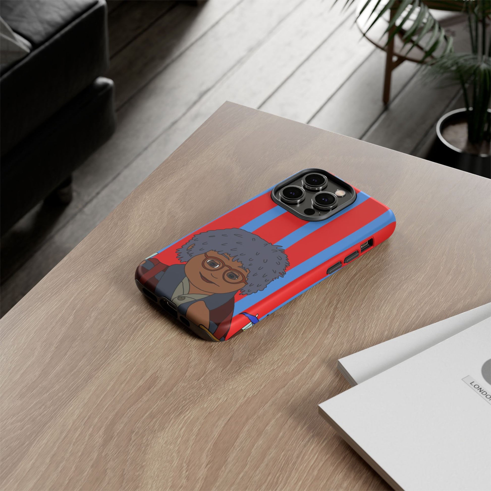 This protective phone case brings playful color and character to everyday life while keeping devices safe. The bold red-and-blue stripe background frames a warm, cartoon-style character—glasses, gray curly hair, and a welcoming smile—that gives the case a friendly, storybook vibe. Built as a dual-layer shell with a rigid polycarbonate exterior and a cushioned TPU silicone liner, the case absorbs shocks and resists drops without adding bulk. A glossy or matte finish keeps the artwork vivid, while UV protection helps maintain long-term color integrity. Thoughtful cutouts keep ports open and the case supports wireless charging for convenience. It’s a durable, cheerful cover for adults who want personality and protection in one.