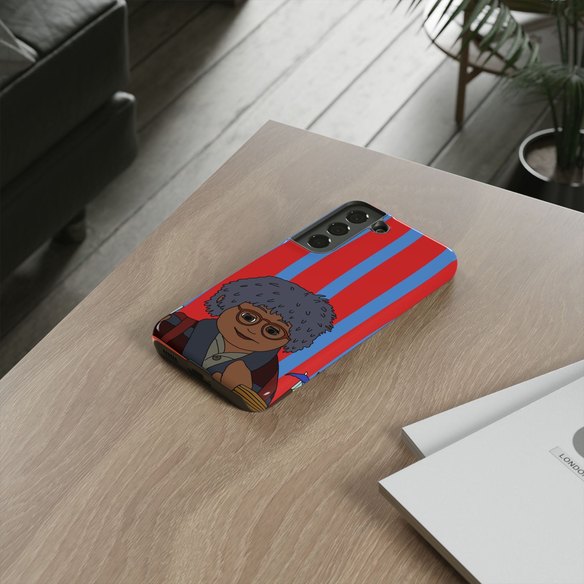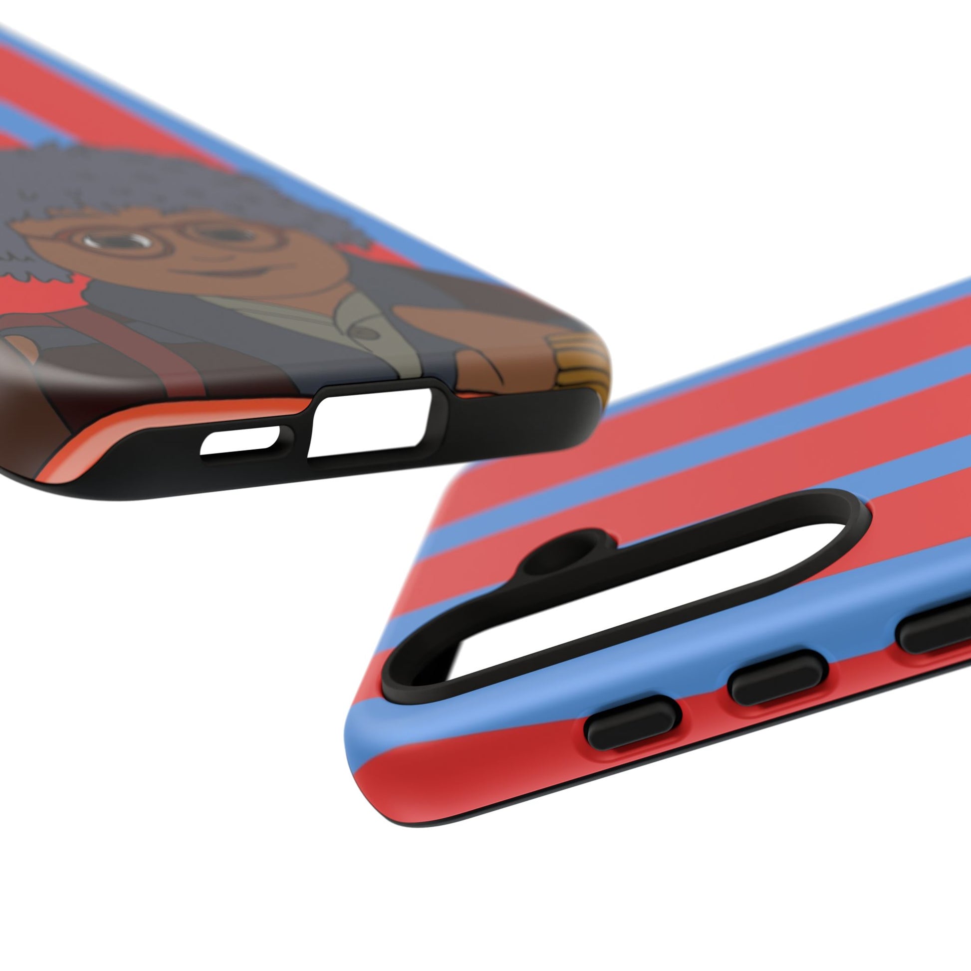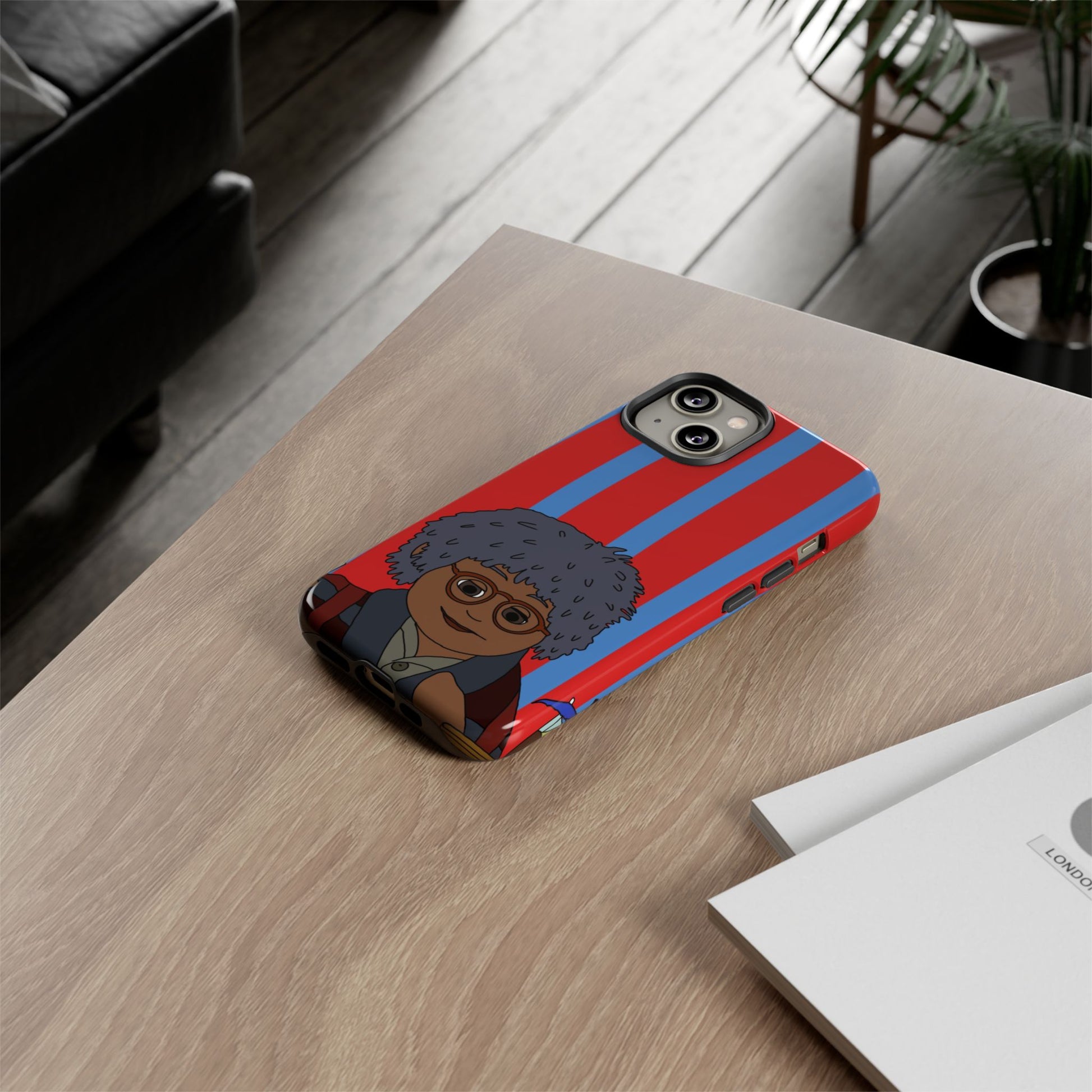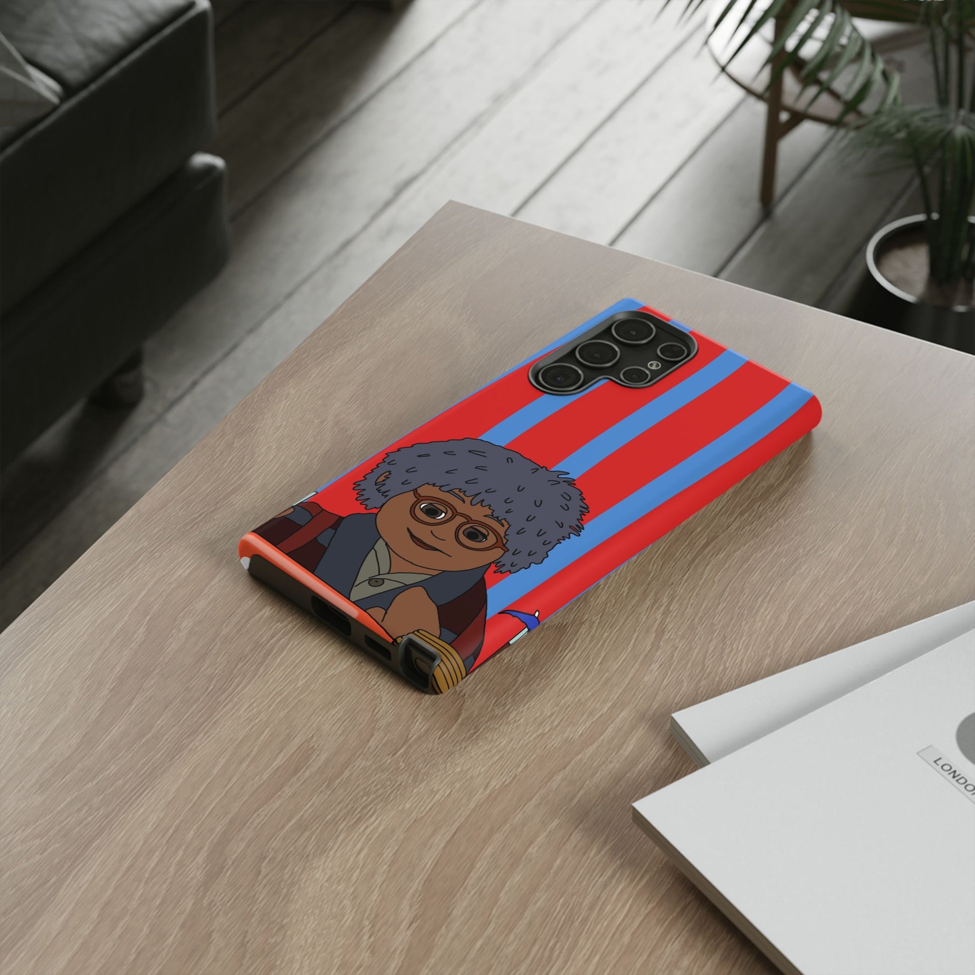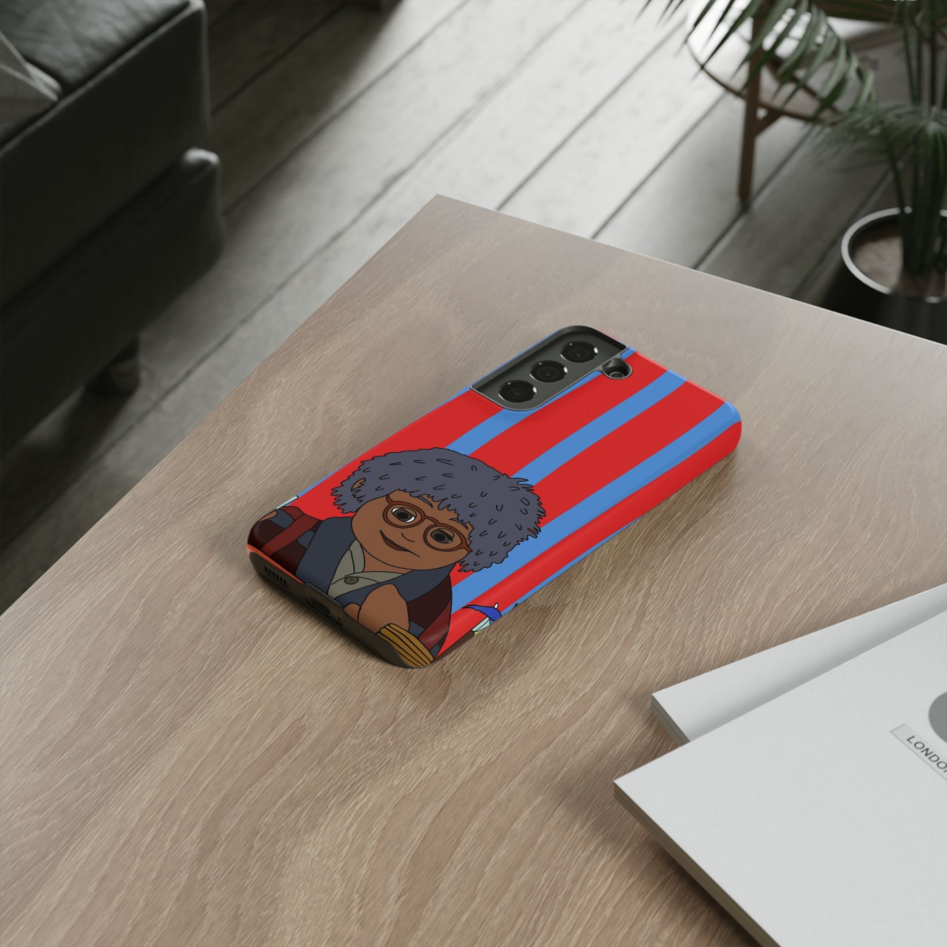 This protective phone case brings playful color and character to everyday life while keeping devices safe. The bold red-and-blue stripe background frames a warm, cartoon-style character—glasses, gray curly hair, and a welcoming smile—that gives the case a friendly, storybook vibe. Built as a dual-layer shell with a rigid polycarbonate exterior and a cushioned TPU silicone liner, the case absorbs shocks and resists drops without adding bulk. A glossy or matte finish keeps the artwork vivid, while UV protection helps maintain long-term color integrity. Thoughtful cutouts keep ports open and the case supports wireless charging for convenience. It’s a durable, cheerful cover for adults who want personality and protection in one.