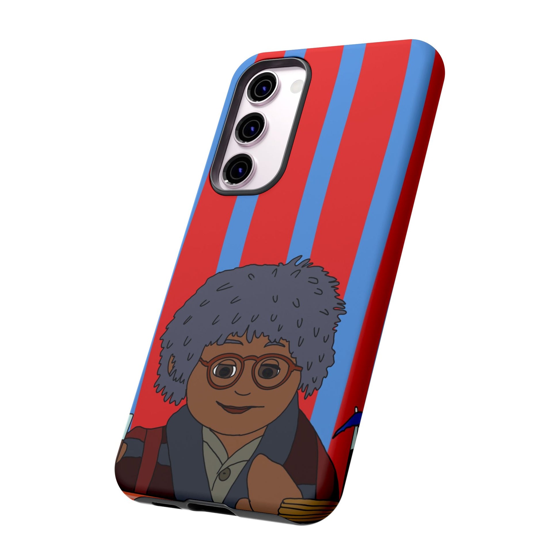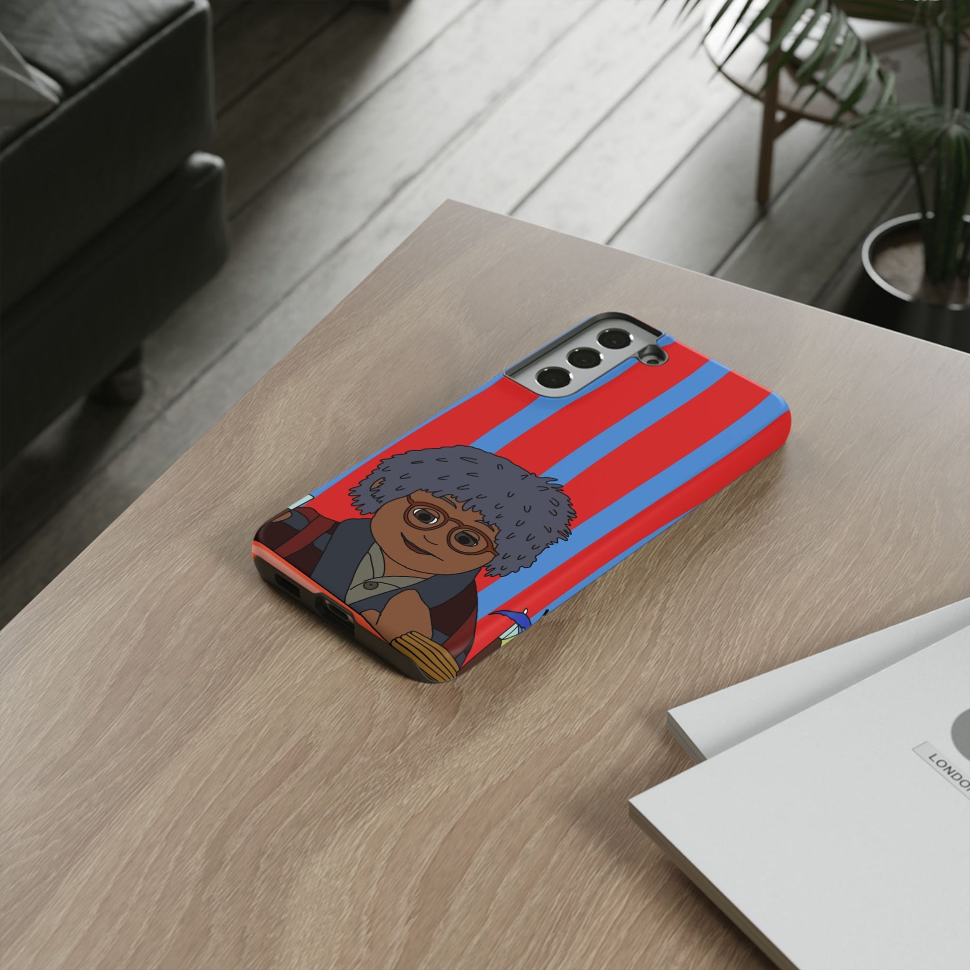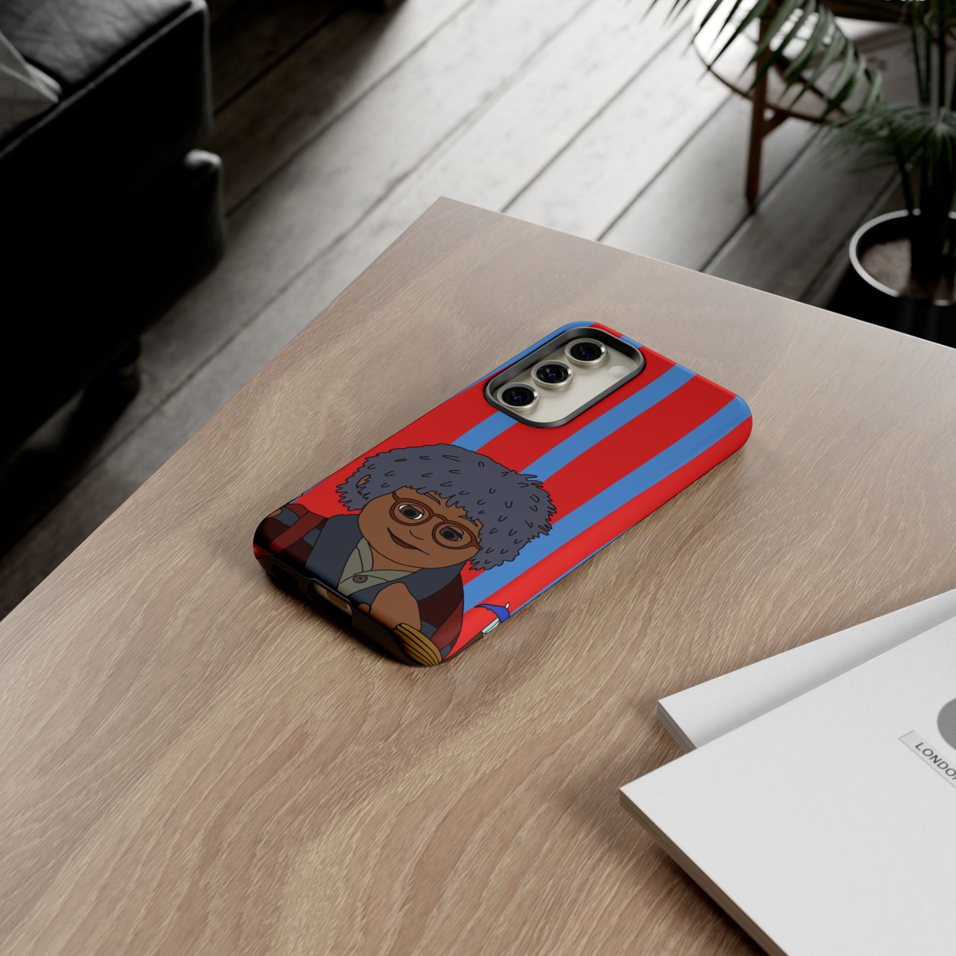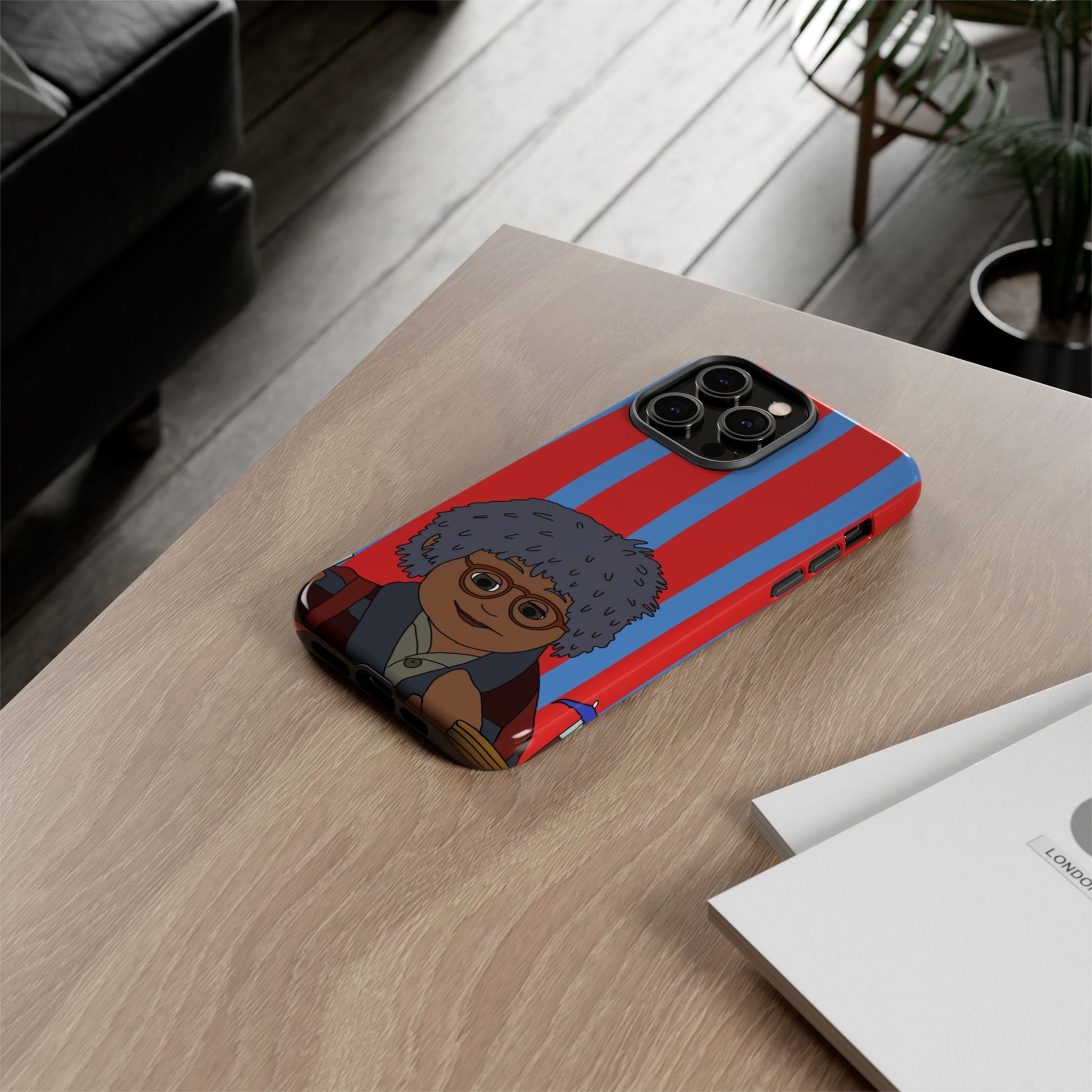This protective phone case brings playful color and character to everyday life while keeping devices safe. The bold red-and-blue stripe background frames a warm, cartoon-style character—glasses, gray curly hair, and a welcoming smile—that gives the case a friendly, storybook vibe. Built as a dual-layer shell with a rigid polycarbonate exterior and a cushioned TPU silicone liner, the case absorbs shocks and resists drops without adding bulk. A glossy or matte finish keeps the artwork vivid, while UV protection helps maintain long-term color integrity. Thoughtful cutouts keep ports open and the case supports wireless charging for convenience. It’s a durable, cheerful cover for adults who want personality and protection in one.