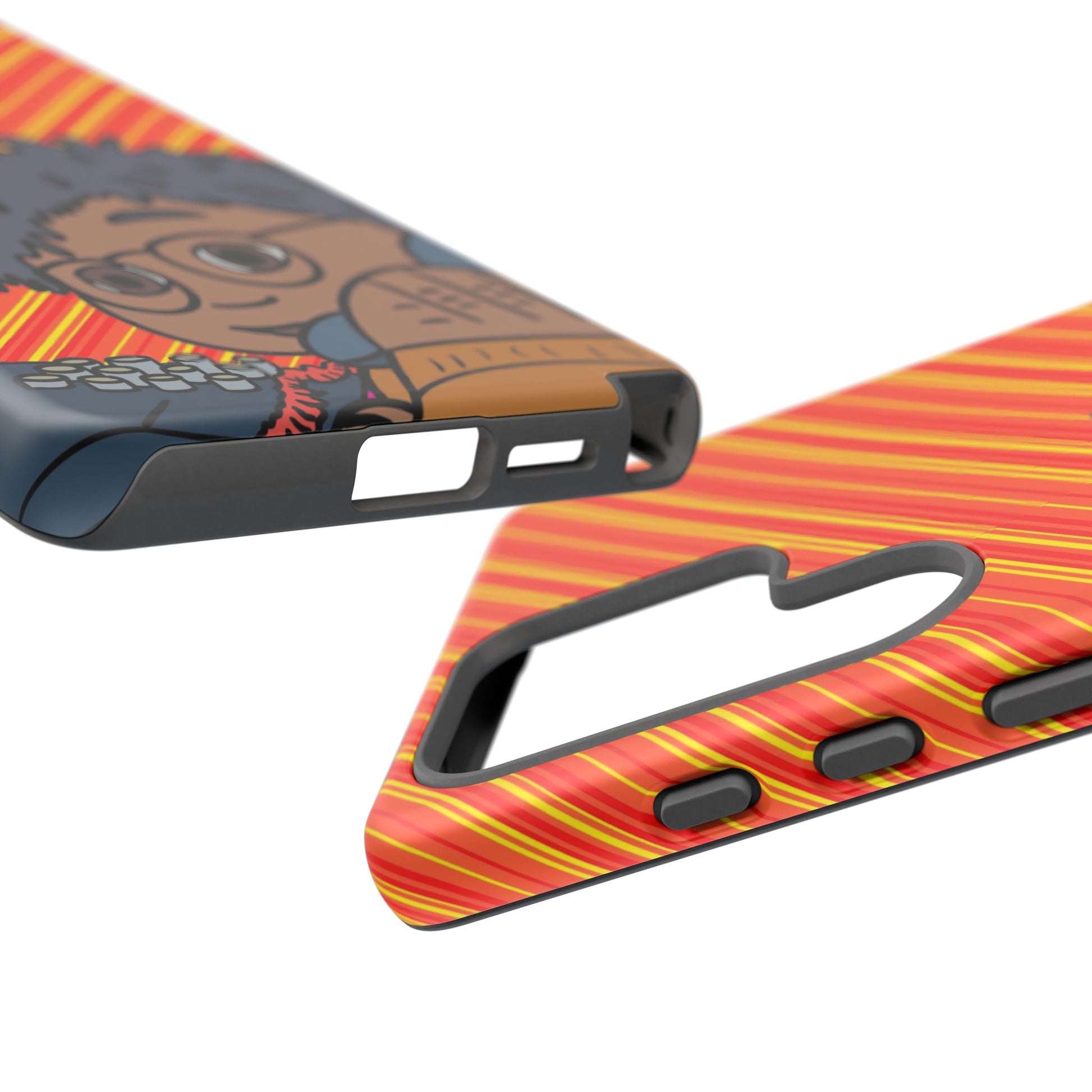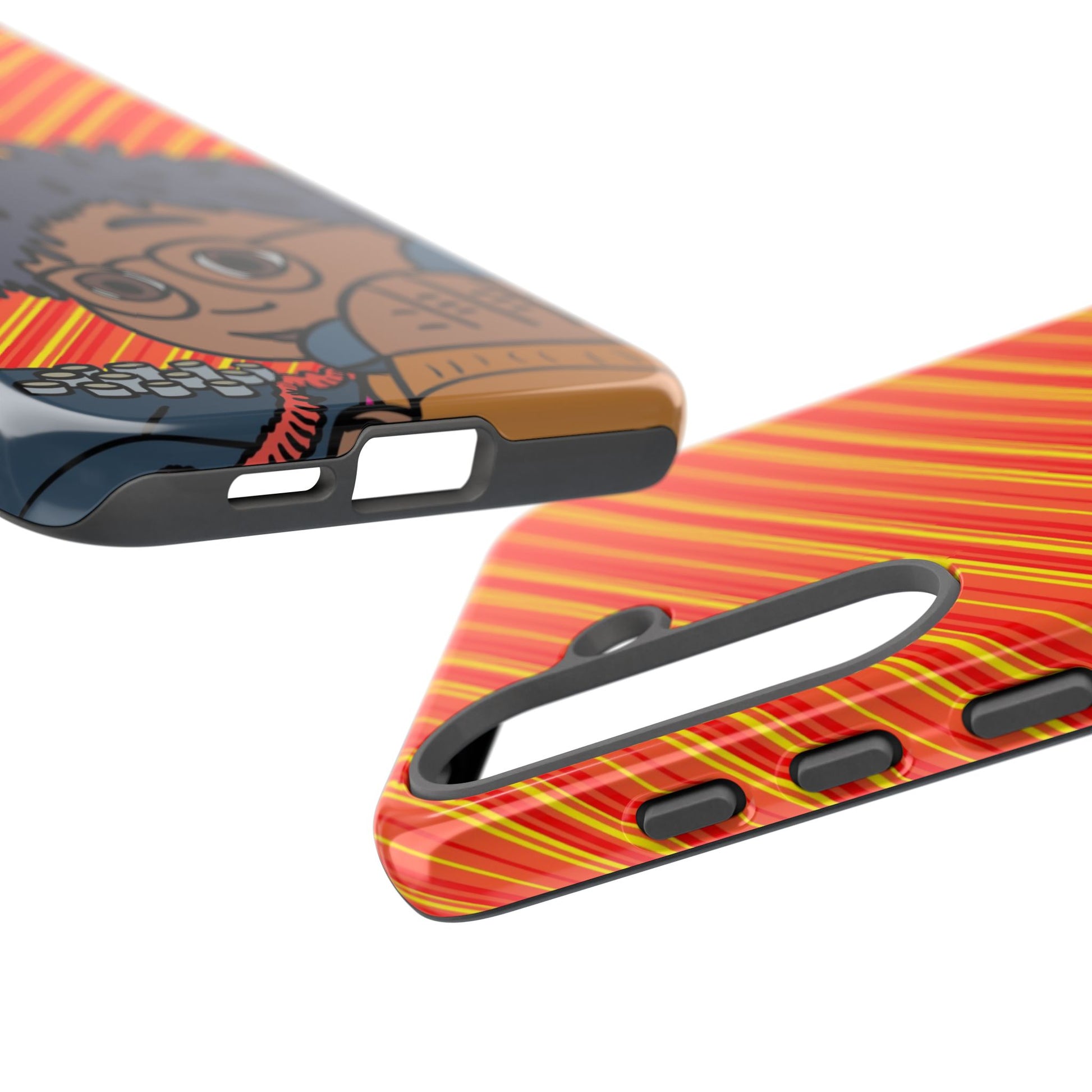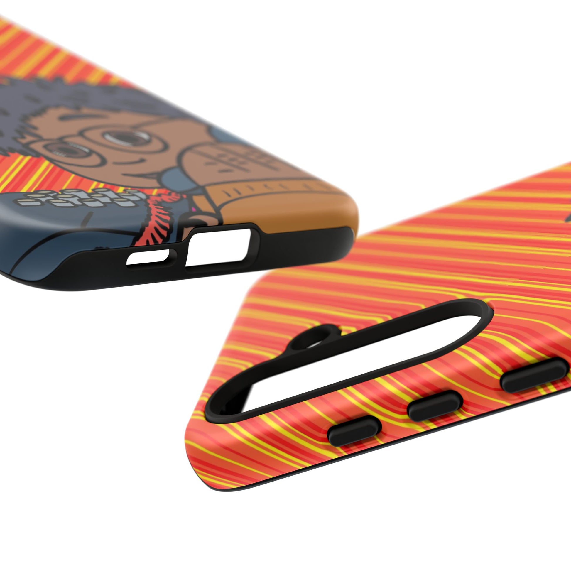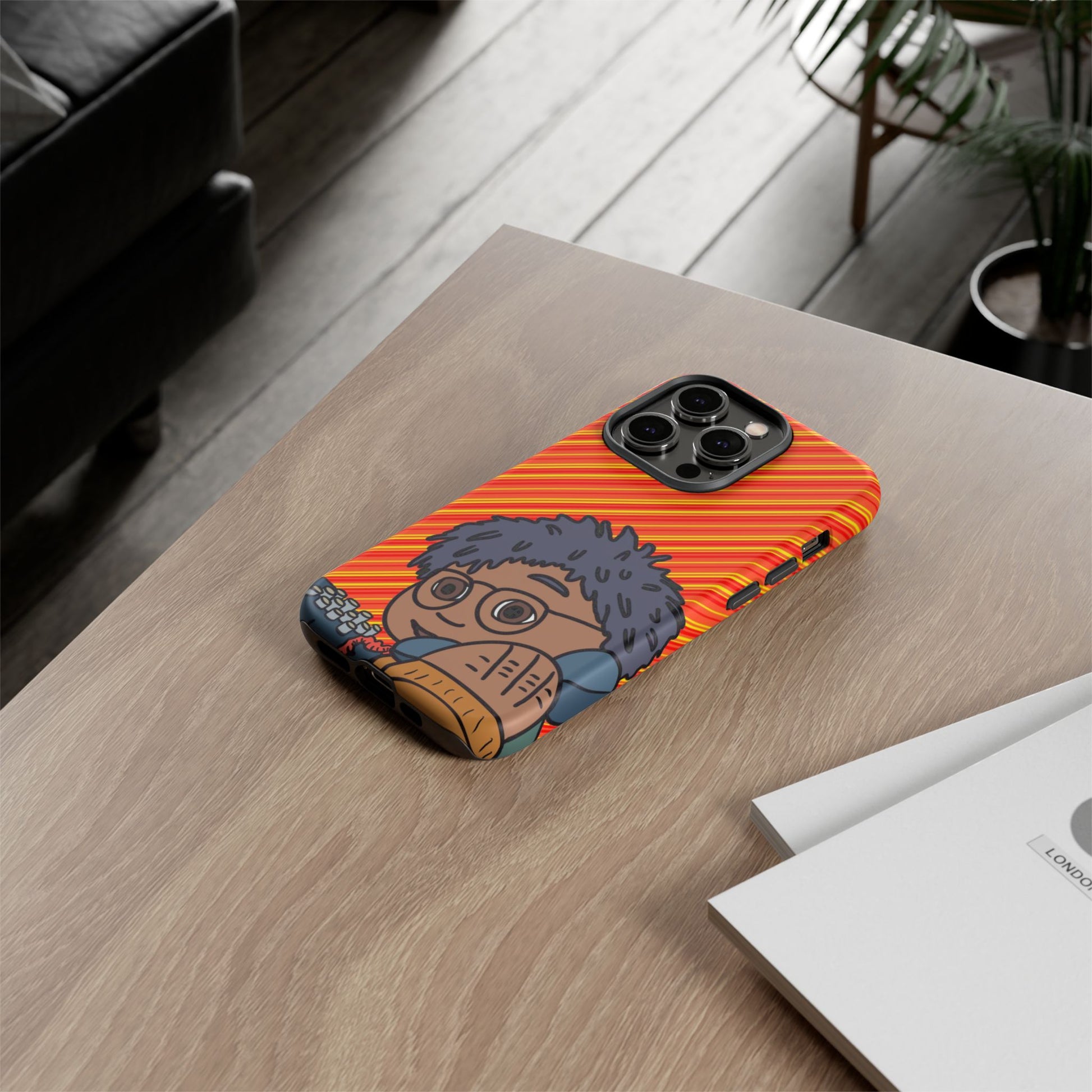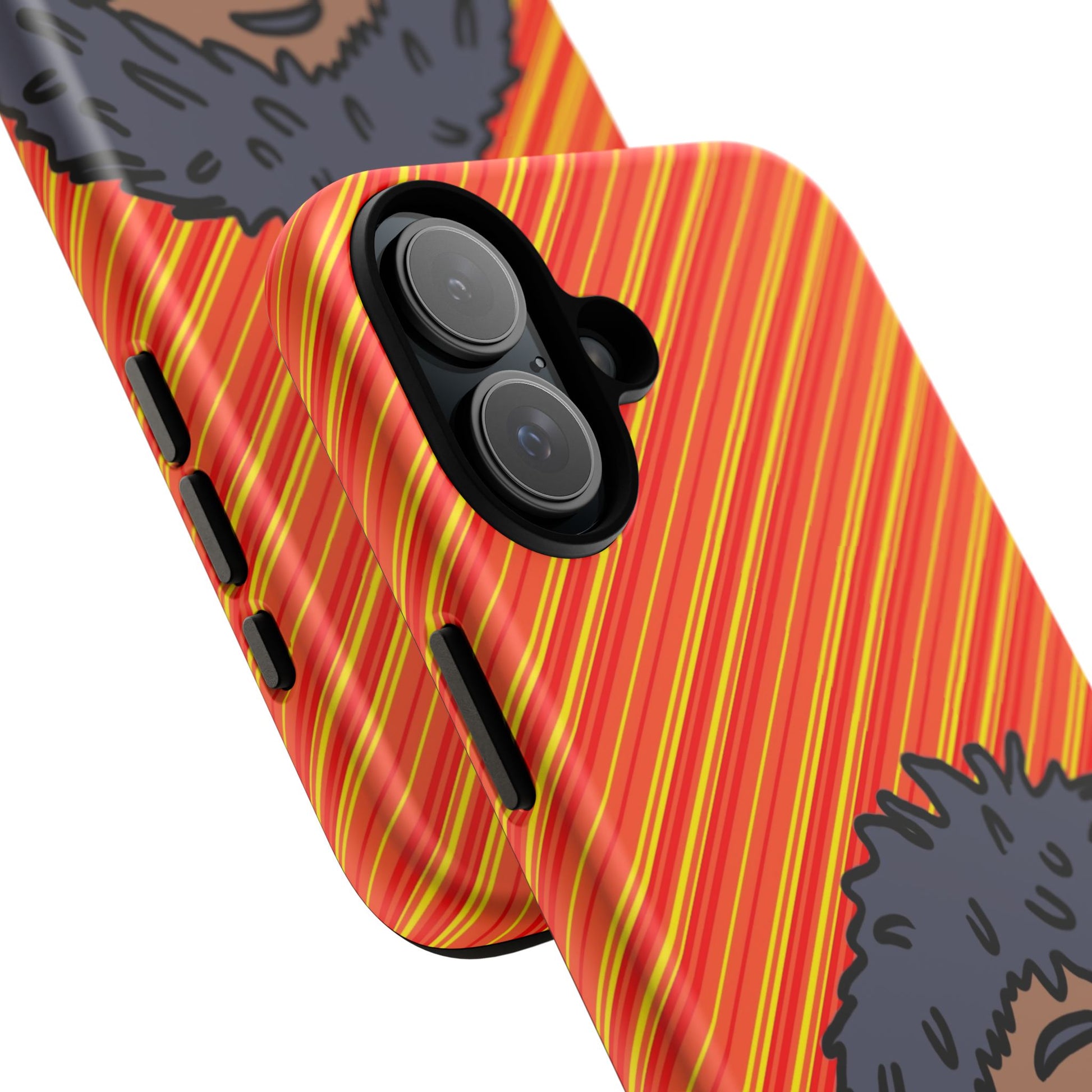 Bright, playful phone protection with personality. This dual-layer tough case wraps your device in a glossy (or matte) printed shell and a shock-absorbing TPU liner. The artwork—warm diagonal stripes and a cozy character sketch—brings a cheerful, slightly retro vibe that stands out without shouting. Built for everyday life: clear port access, wireless charging compatible, and engineered to resist drops and scuffs. UV-protected print keeps colors vivid through outdoor wear; just avoid prolonged contact with strong alcohols, creams, or direct heat to preserve the finish. A pragmatic, colorful guard that feels like a little warm companion in your pocket.