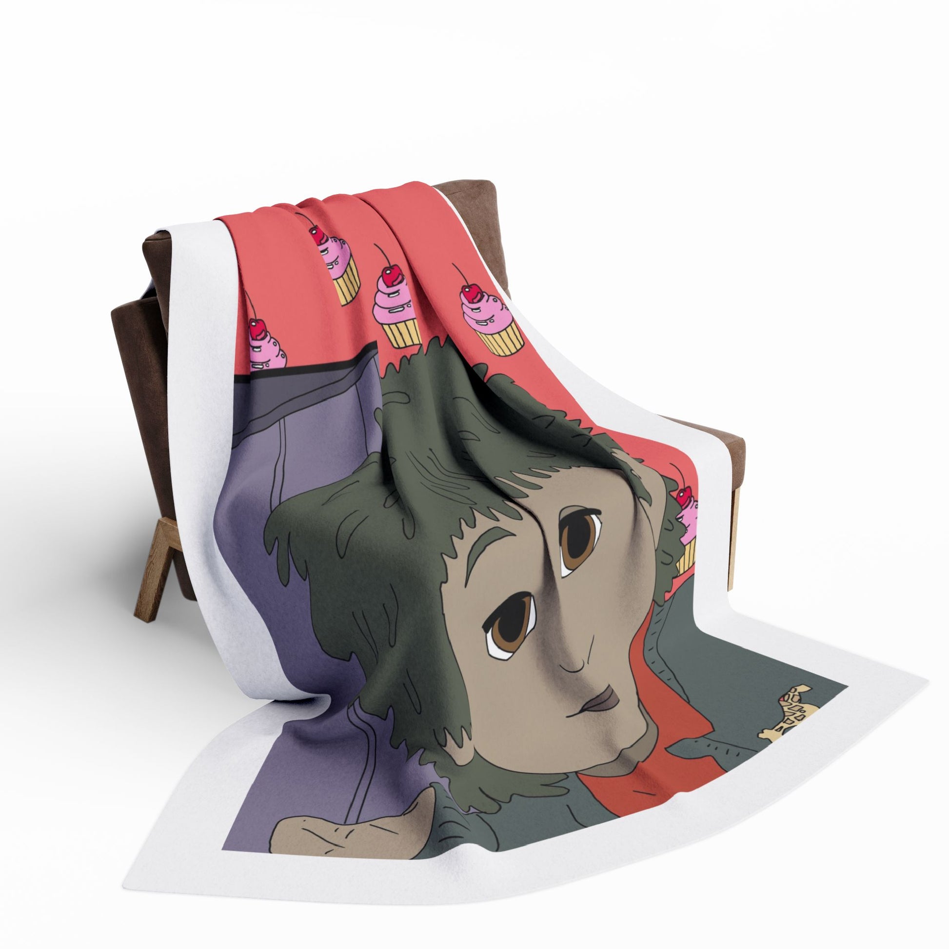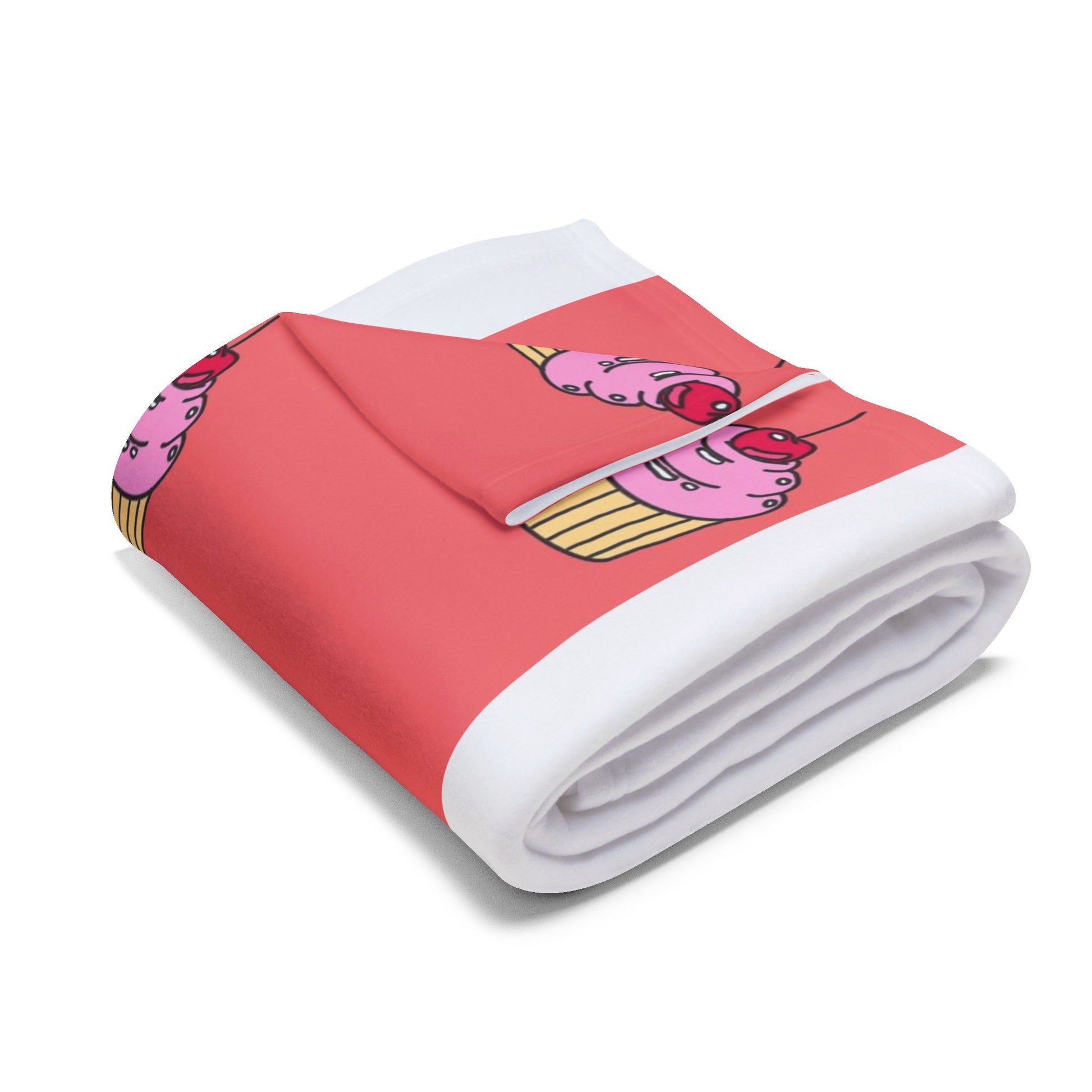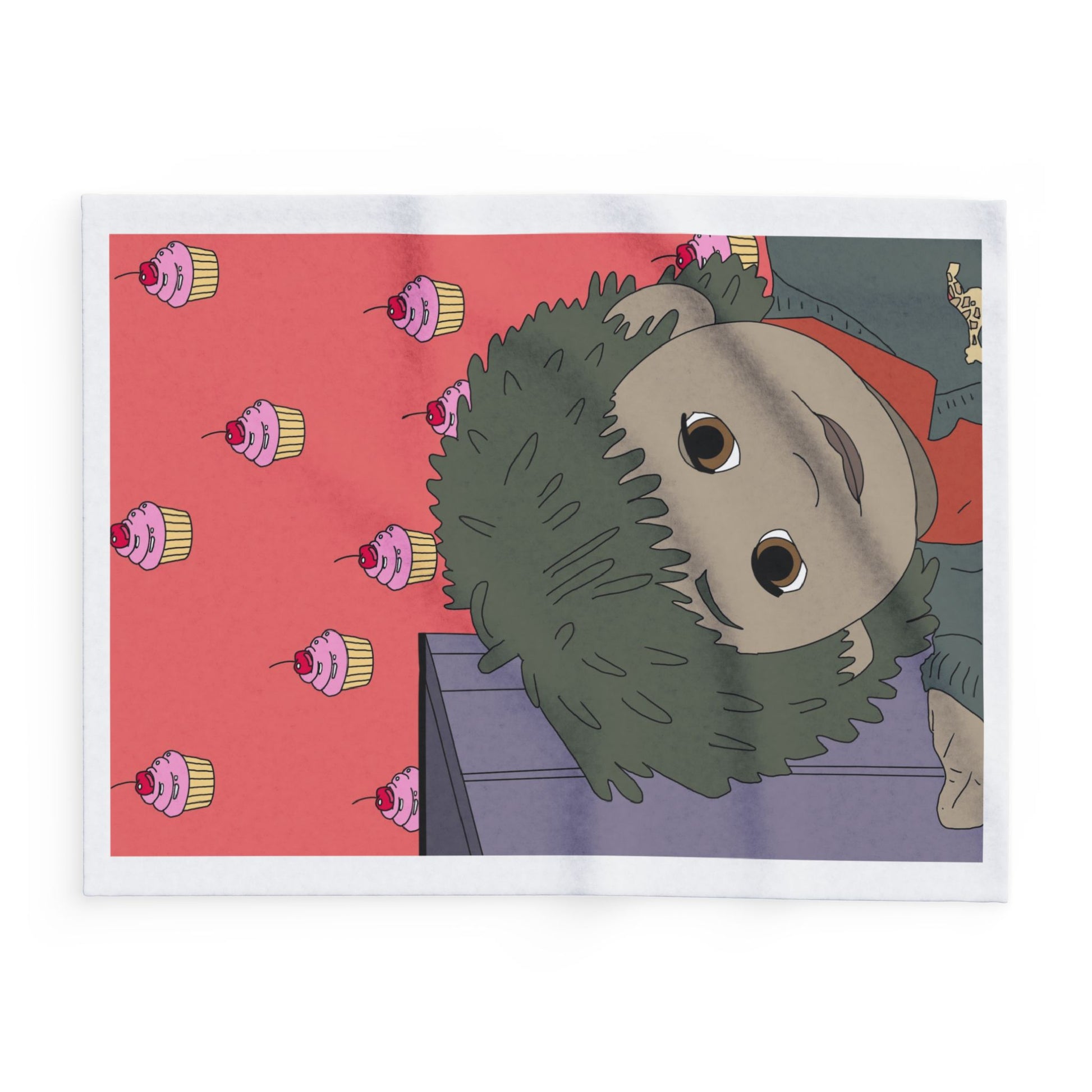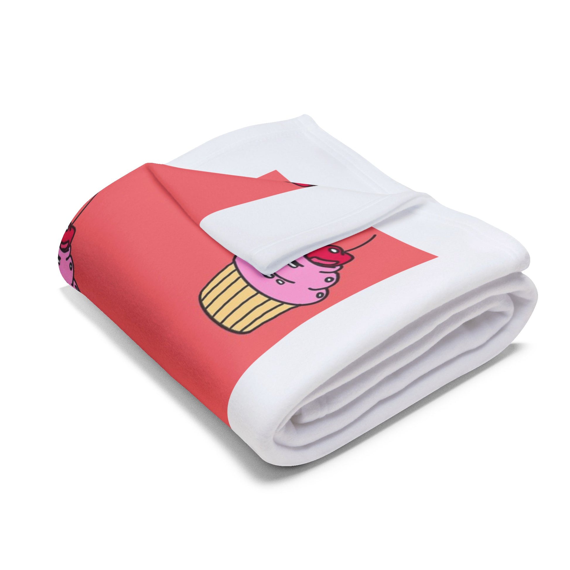 Bring a little warm, whimsical calm to quiet nights with this plush fleece blanket. Soft, thick polyester fleece cradles you as you sink into cozy stillness. The design shows a gentle, wide-eyed character against a playful pink cupcake background — a strange, comforting mix of nostalgia and cheeky charm. Drape it over a couch during a movie night, wrap up with it for late-night sketching or journaling, or let it add a cozy pop of personality to a studio corner. The vivid print stays bright through everyday use, and the hemmed edges keep the blanket looking neat and lived-in for seasons to come. This blanket feels like an easy companion for those who love quirky art, quiet evenings, and a touch of handmade-style warmth.