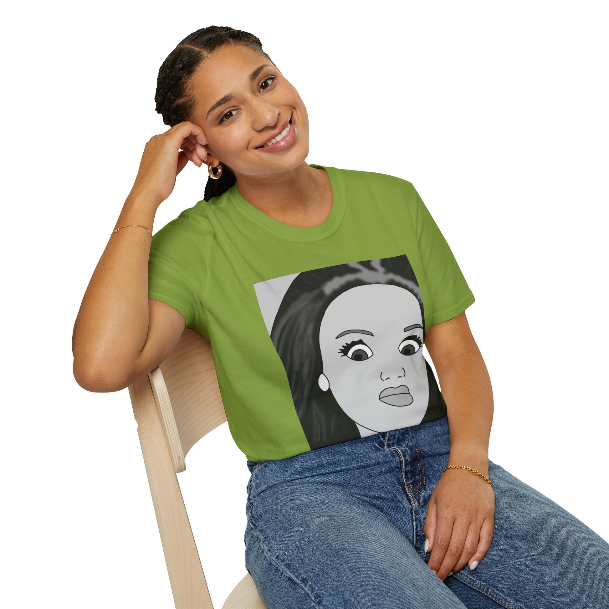 A lightweight, breathable tee that carries attitude in every stitch. The clean, high-contrast illustration centers a bold, expressive face—eyes wide, lips poised—so the shirt reads like a wearable pop-art moment. The classic crew neckline and regular fit keep the silhouette casual and easy to layer. Wear it to make a quiet statement at coffee shop mornings, late-night gallery runs, or city walks when you want something that feels both playful and composed. The soft ring-spun cotton drapes comfortably and the tubular knit keeps the body lines smooth, letting the artwork stay front and center.