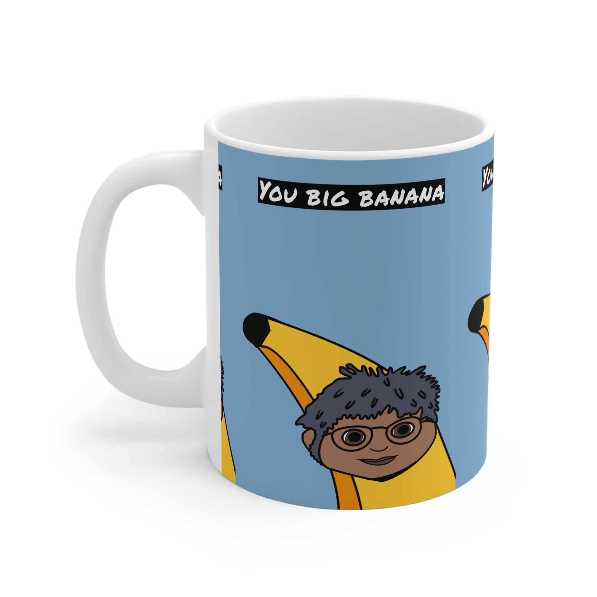 This cheerful white ceramic mug wraps a playful illustration around your morning routine. A smiling character wearing a banana costume and a hand-lettered caption (“YOU BIG BANANA”) sit on a soft sky-blue background, bringing warmth and a wink of humor to slow breakfasts and busy desk breaks. The crisp, vibrant print holds up wash after wash thanks to an AAA+ ORCA coating, and the classic C-handle makes every sip comfortable. It slips smoothly into everyday rituals—coffee, tea, hot chocolate—and brightens moments shared with friends or family.